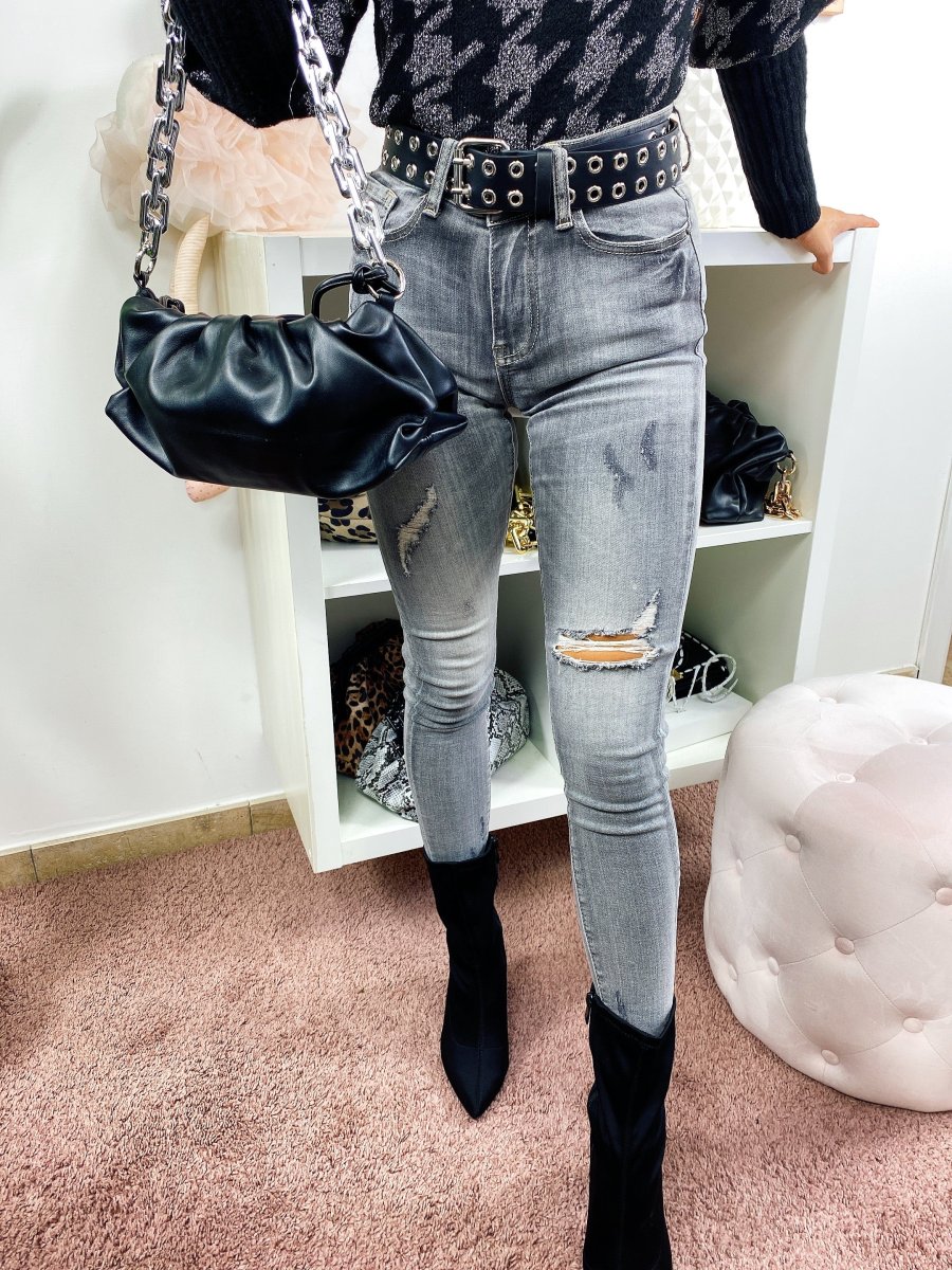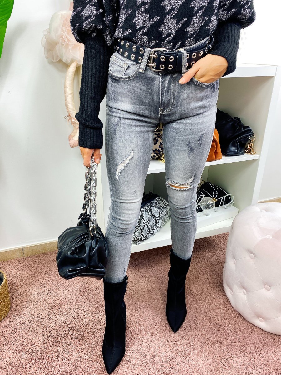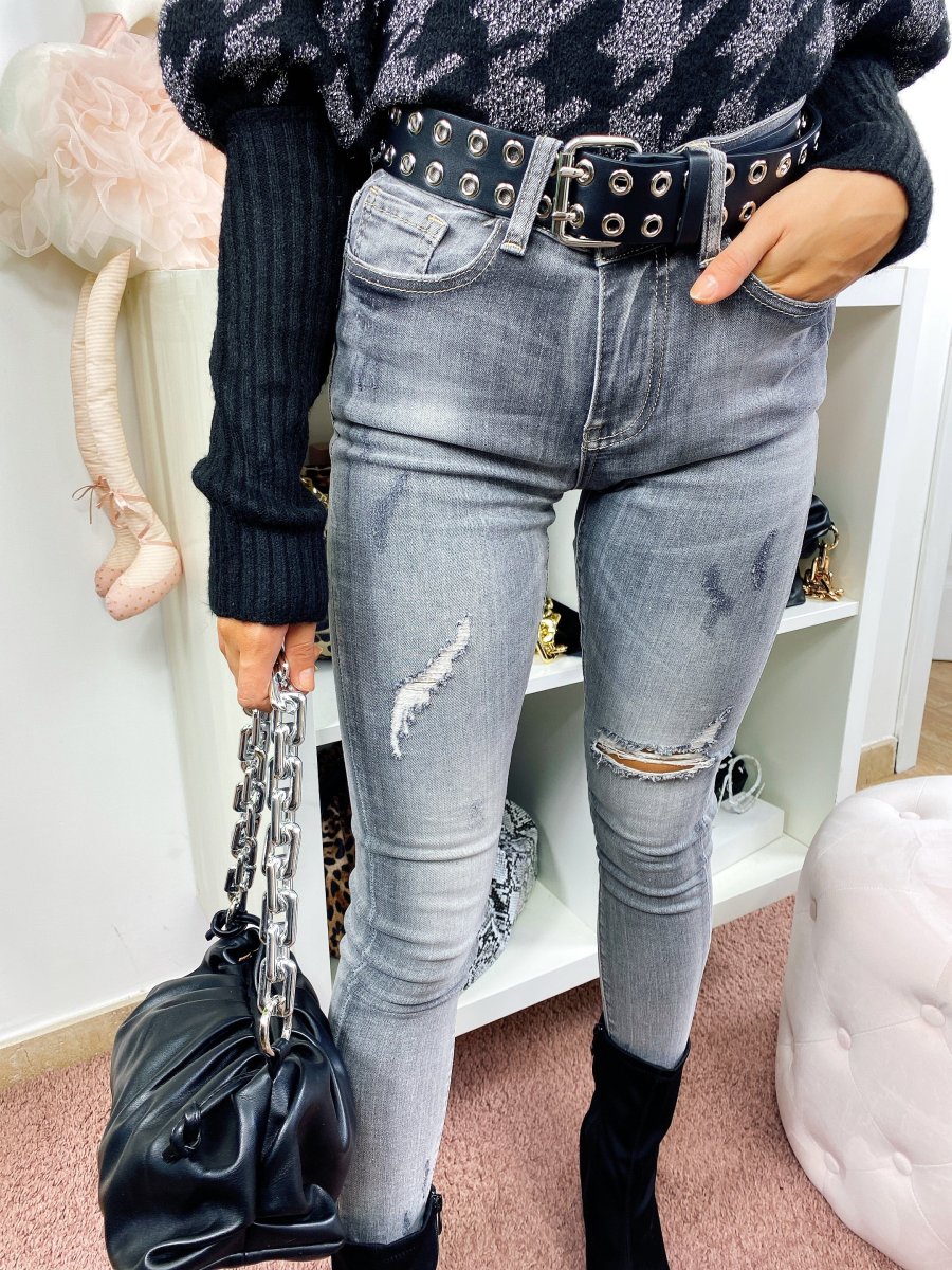 Jeans a vita regolare con strappini. Grigio sfumato