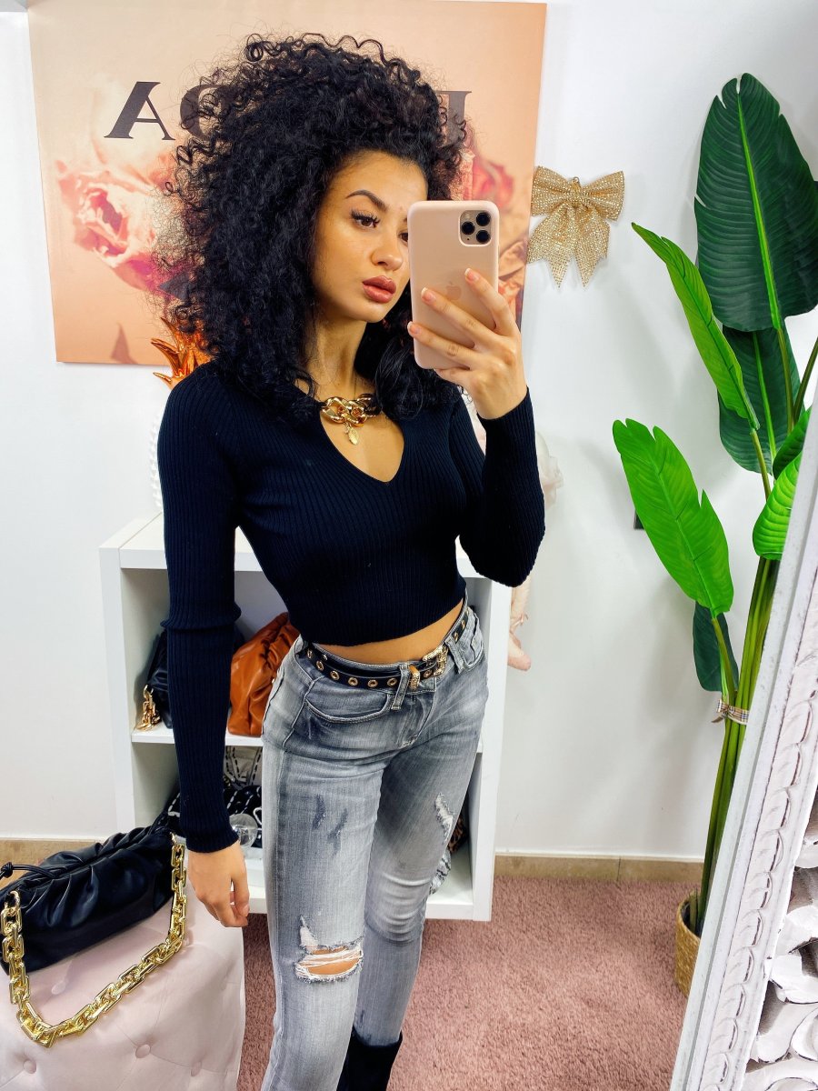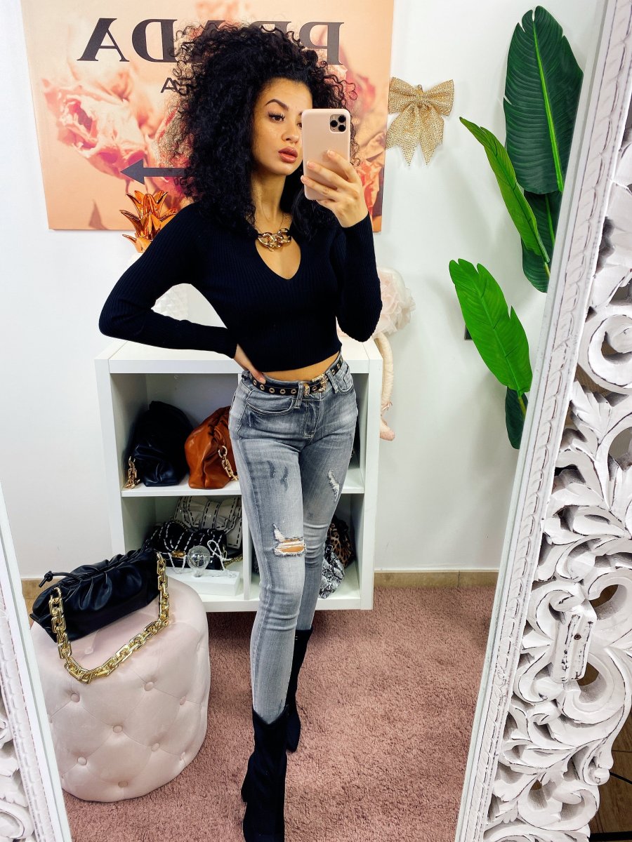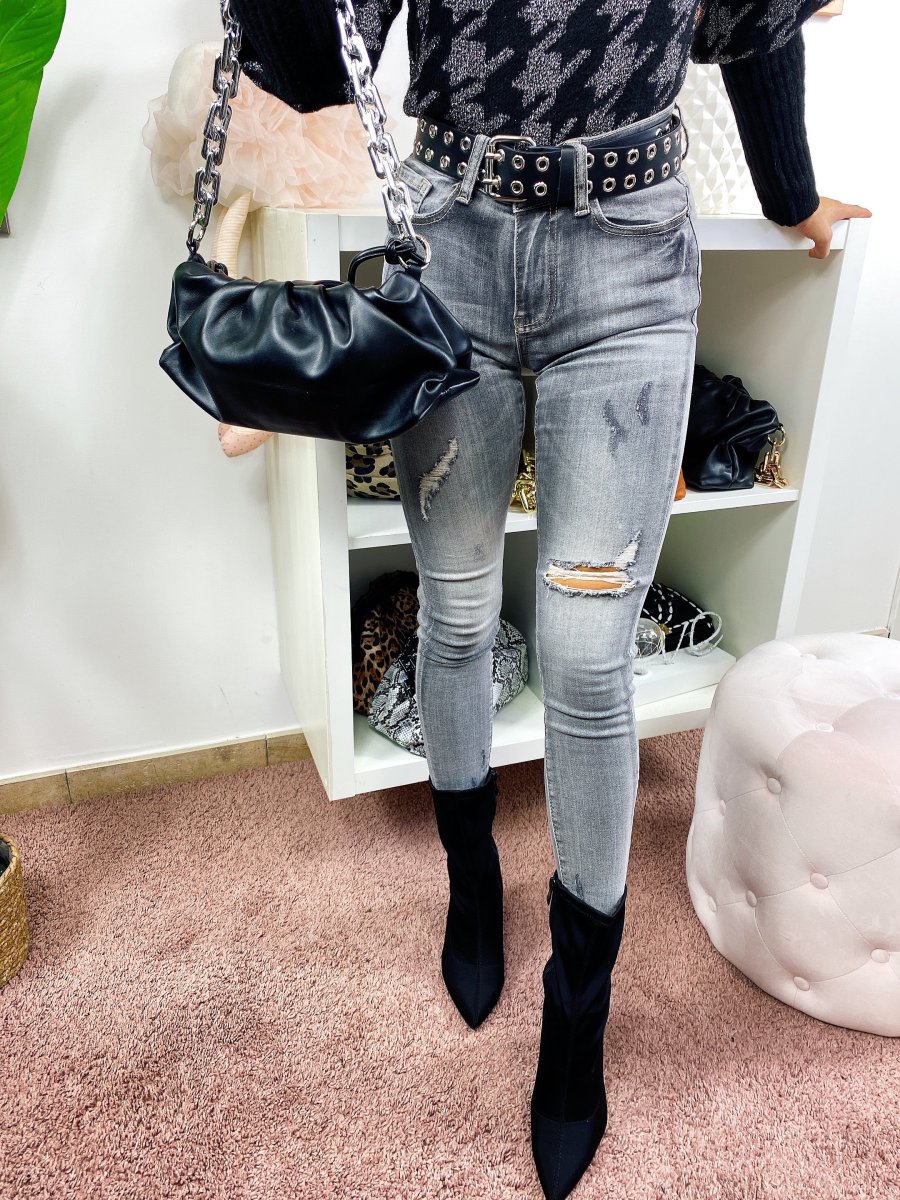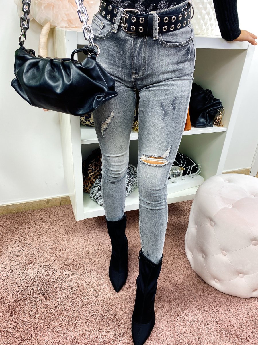 Jeans a vita regolare con strappini. Grigio sfumato