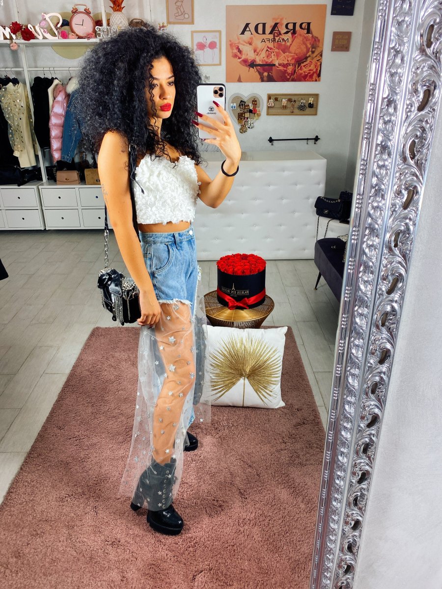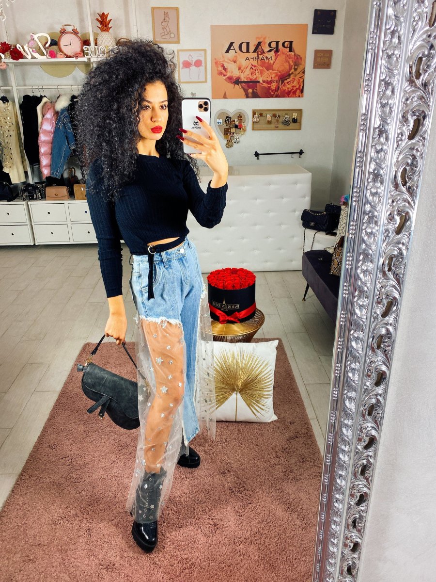 Jeans con trasparenze e Glitter e forma di stella, vesti da Vip vesti Ra Boutique