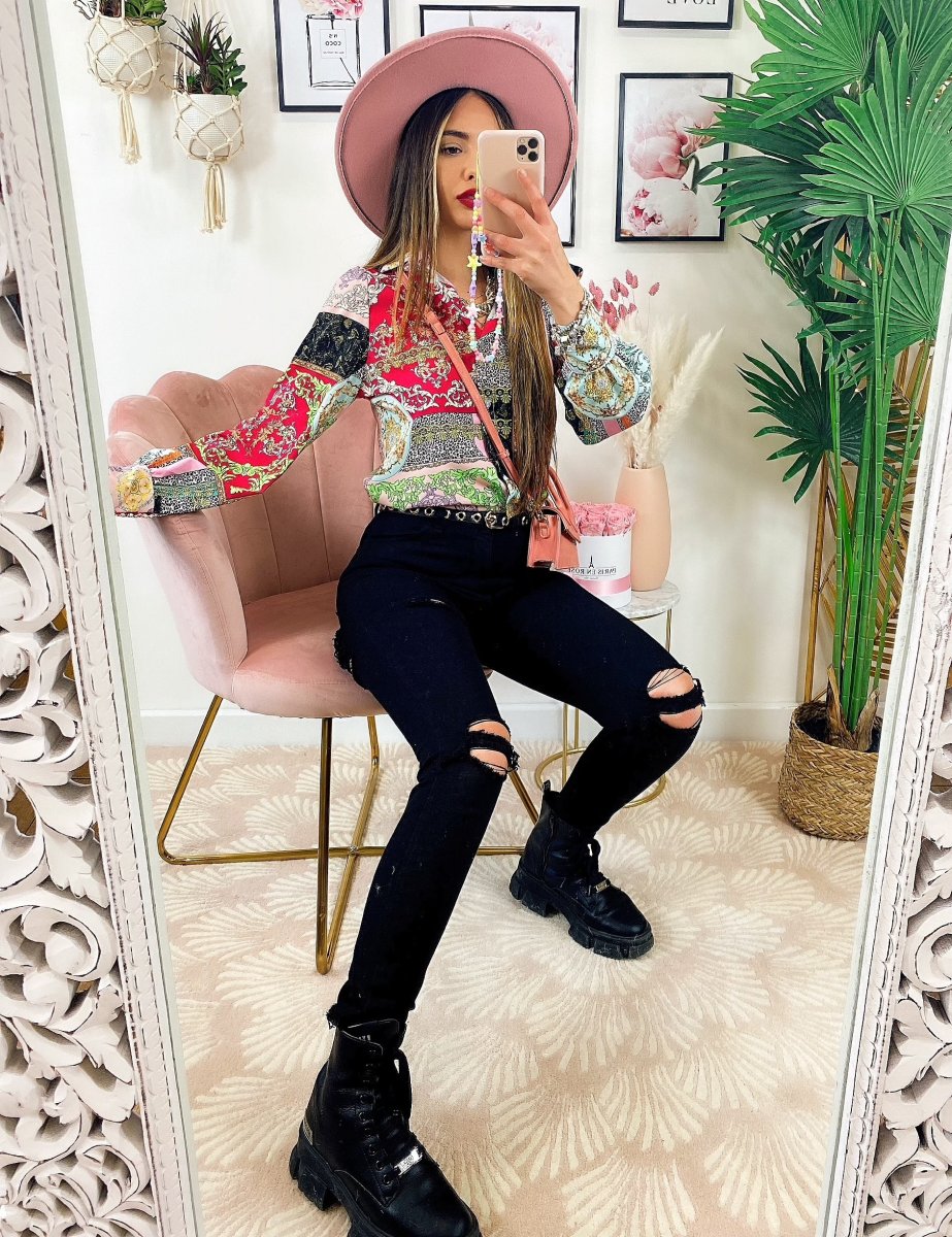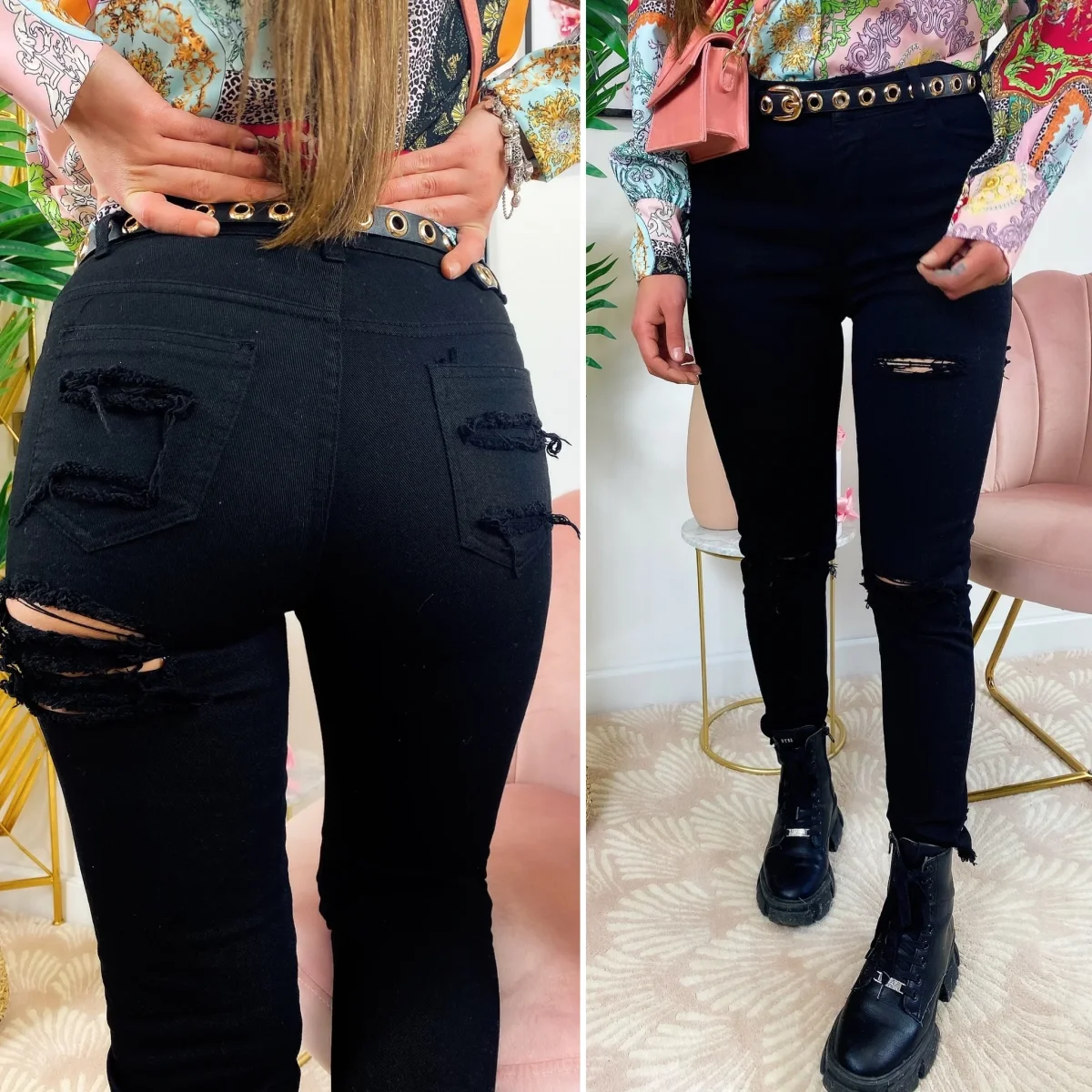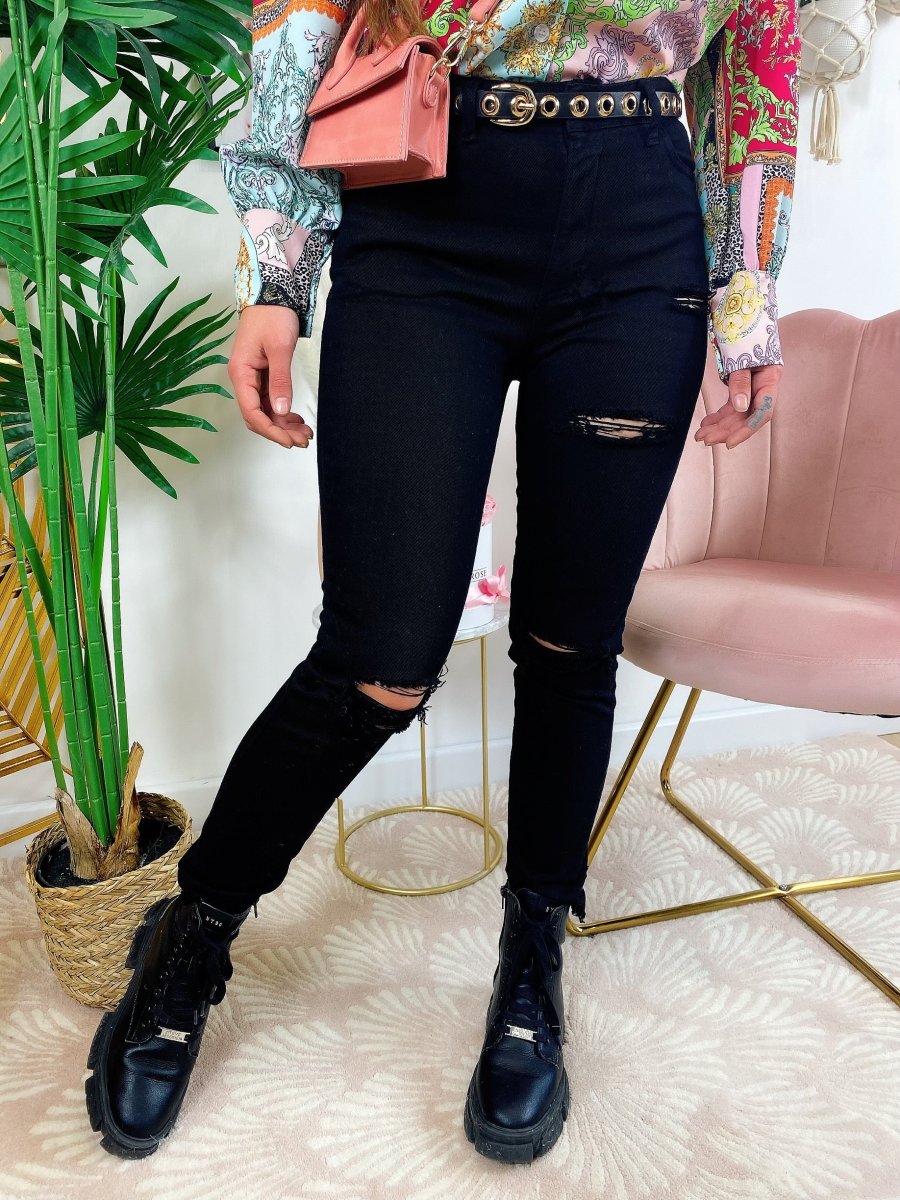 Jeans nero con strappo sul lato B, comodo e elasticizzato. Meglio prendere una taglia in più