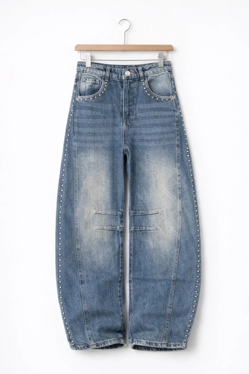 Il Rebel Stud Jeans è il denim che unisce carattere e stile in un unico capo. Modello balloon fit con gamba morbida e strutturata, valorizza la silhouette mantenendo comfort e tendenza.
