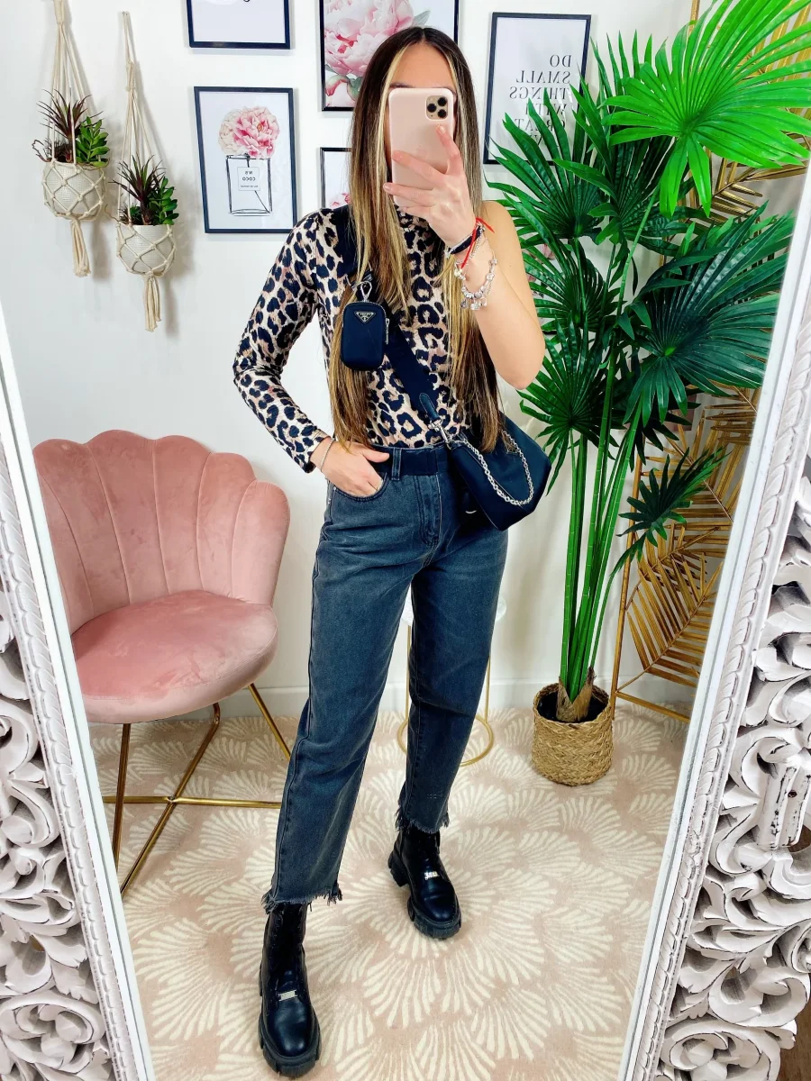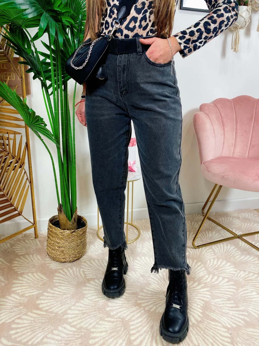 Jeans scuro con cintura sfrangiato , ottima qualità