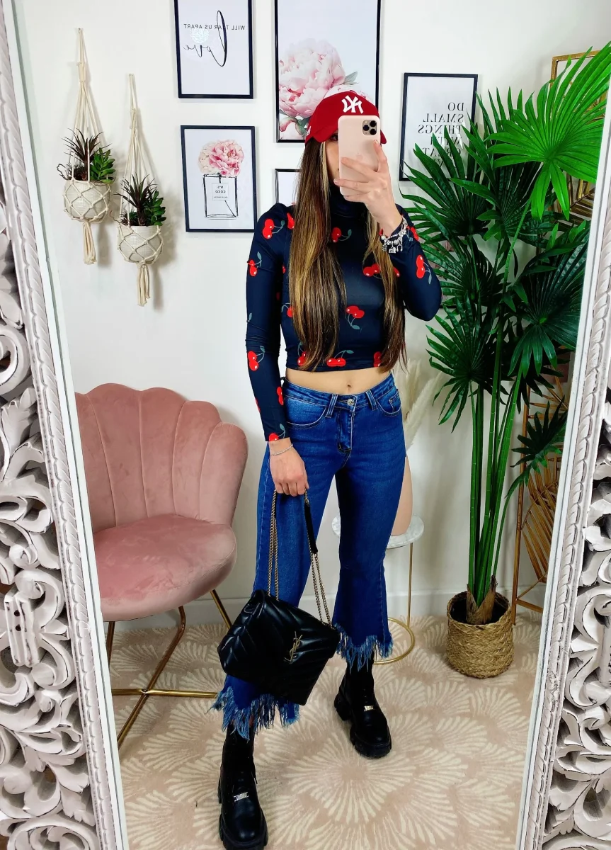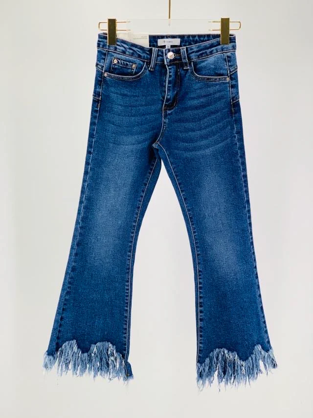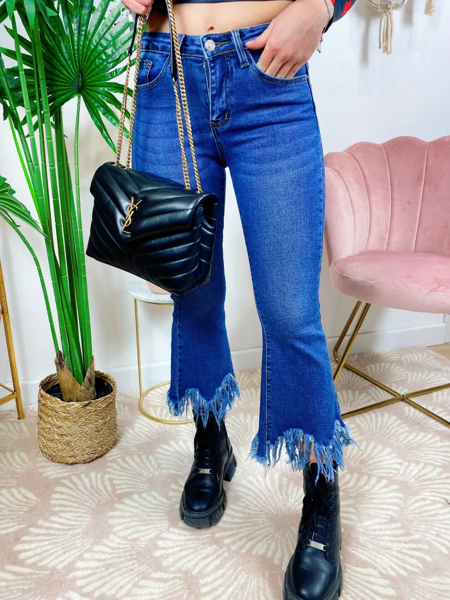 Jeans scuro con zampa larga sfrangiato, ottima qualità