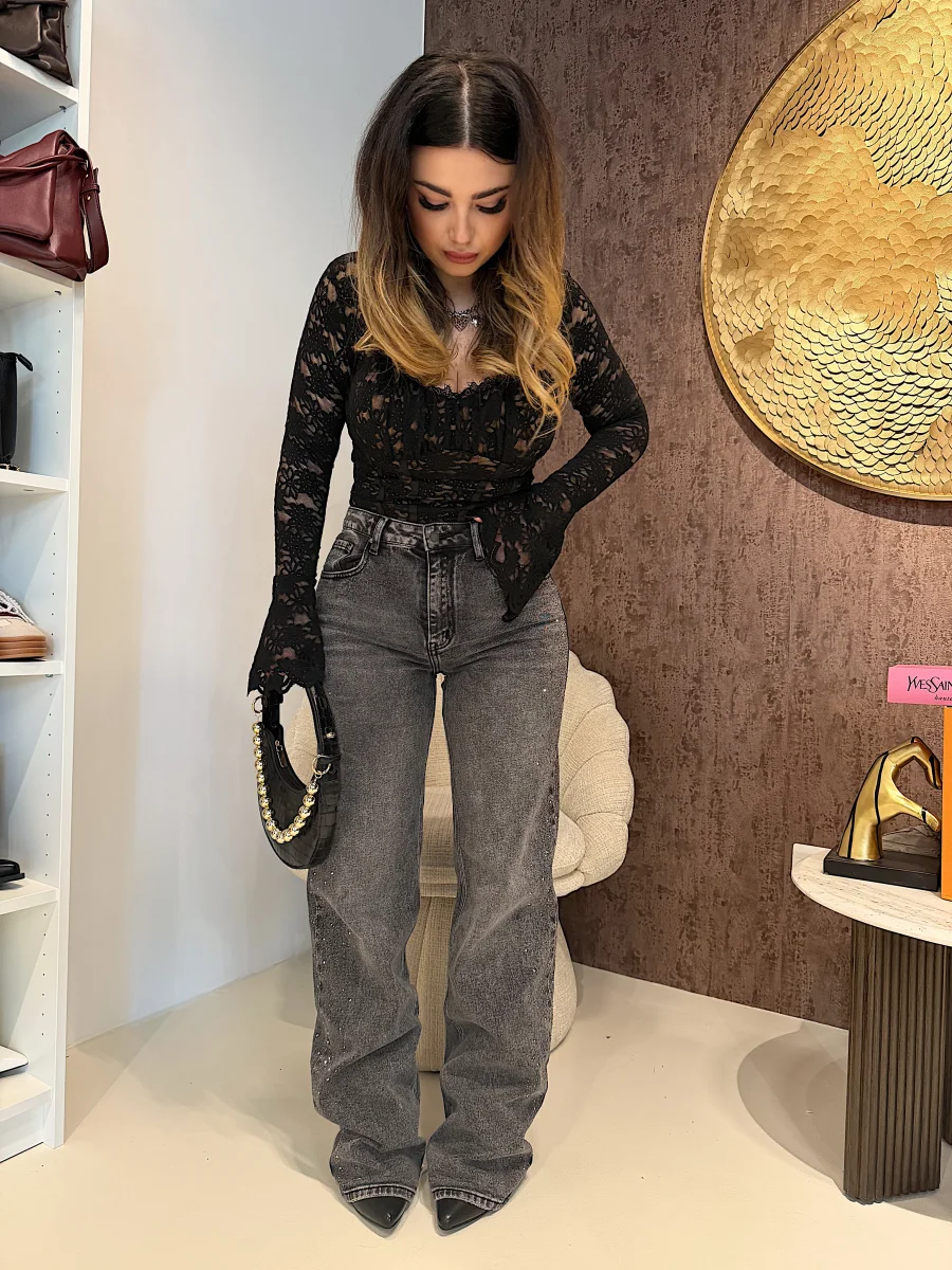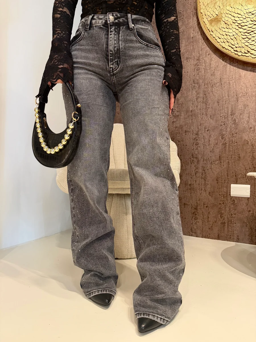 Jeans wide leg con brillantini