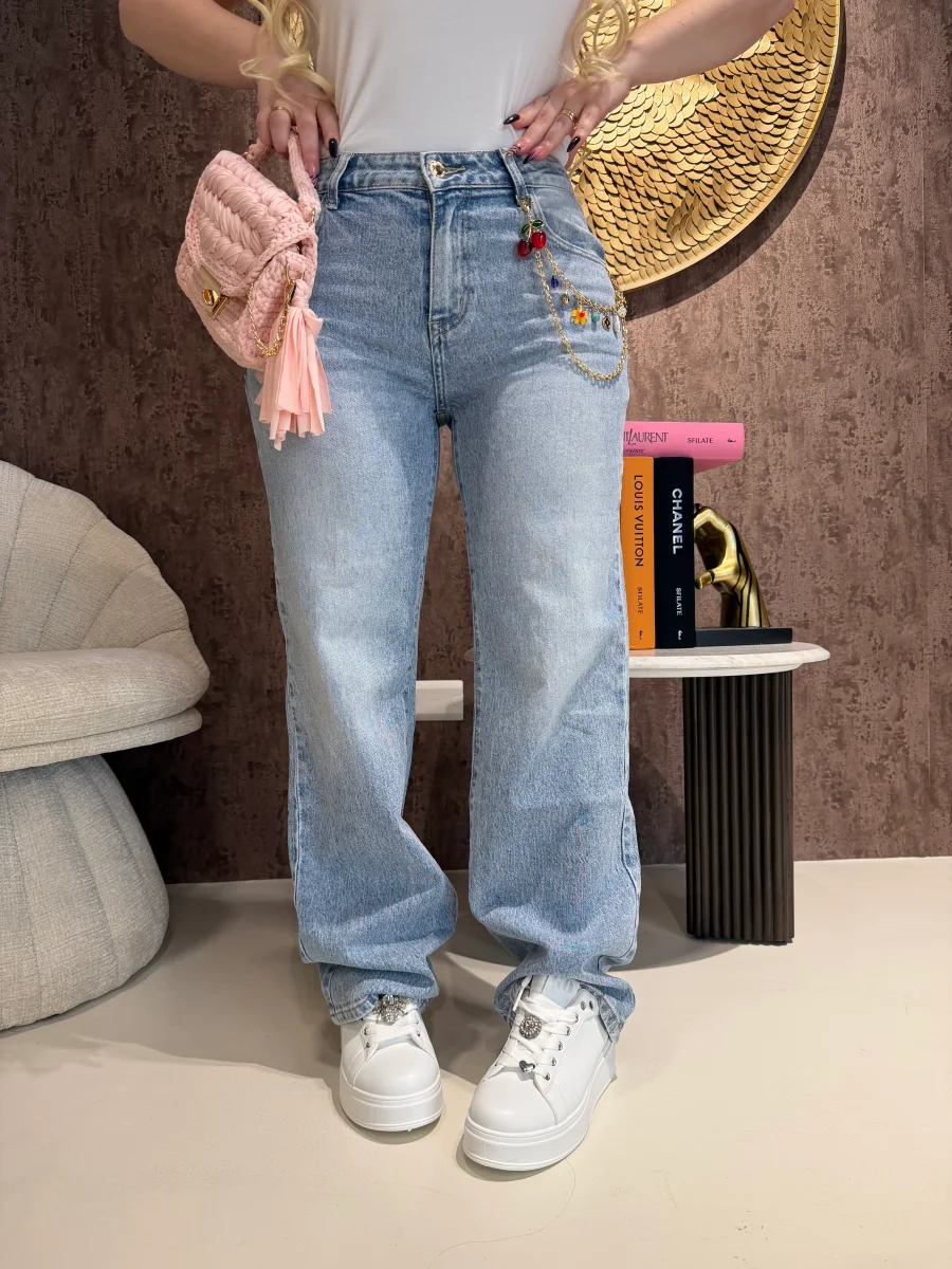 I jeans wide leg con catenina cherry offrono una vestibilità ampia e confortevole, grazie al design che facilita il movimento. Il dettaglio della catenina aggiunge un tocco distintivo, rendendo questo capo adatto a diverse occasioni. Realizzati con materiali di alta qualità, garantiscono durata e resistenza nel tempo.