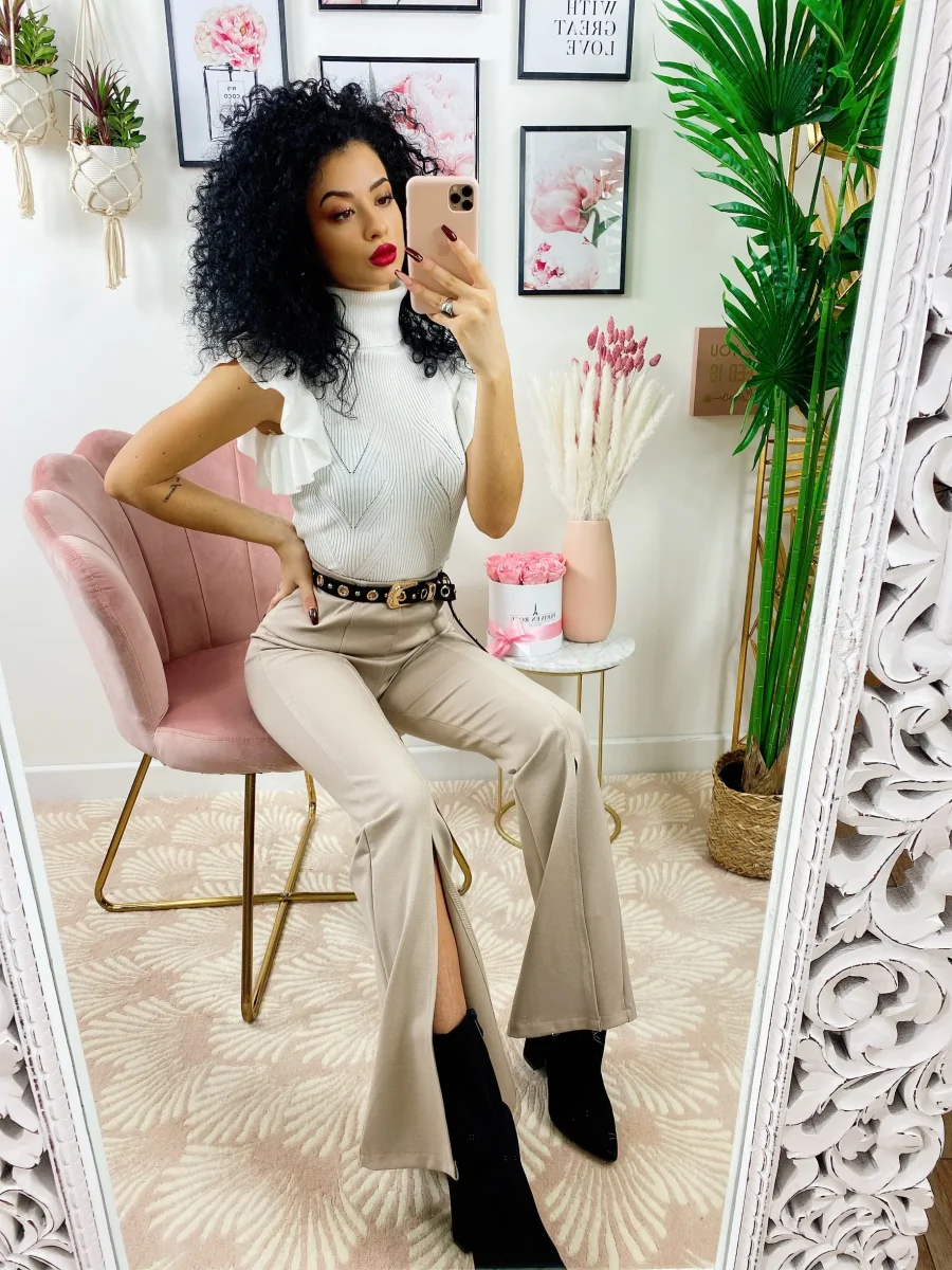 Pantaloni elasticizzati e comodi. Elastico in vita modello molto aderente sulle coscie. Spacco finale frontale