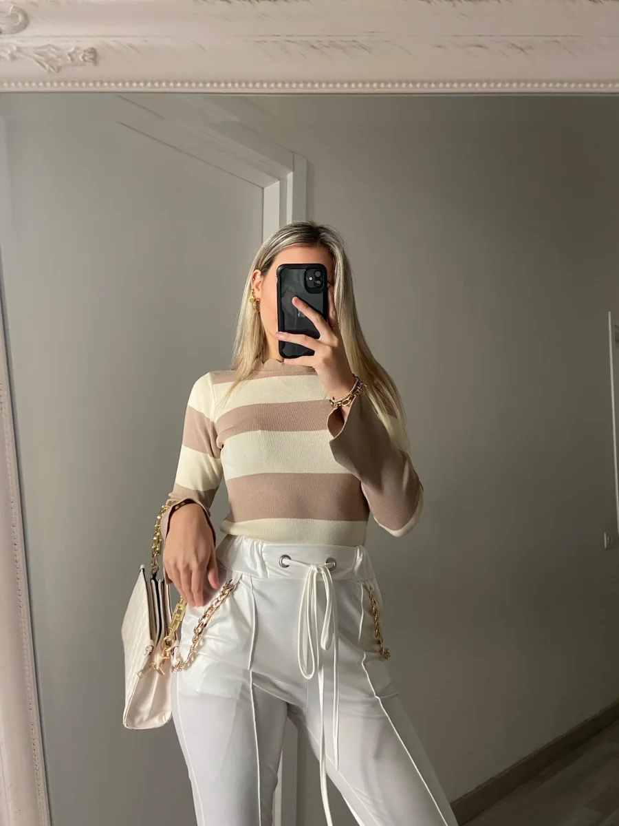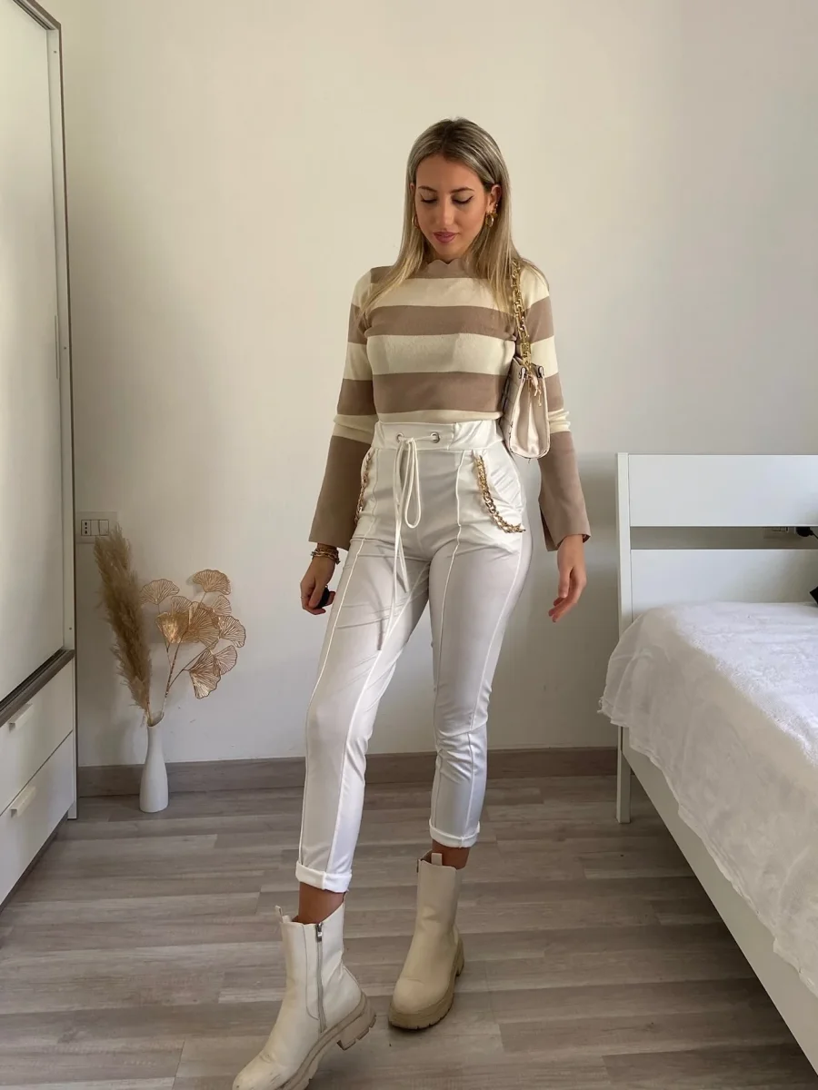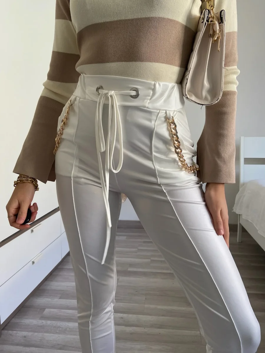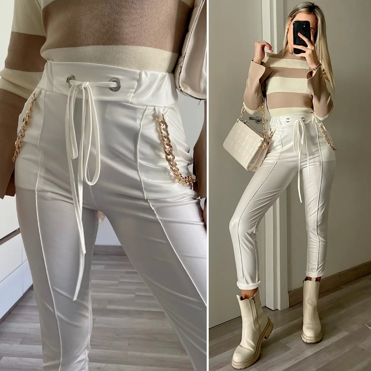 Leggins in eco-pelle con catene Laterali compreso di laccetto per stringerlo in vita.