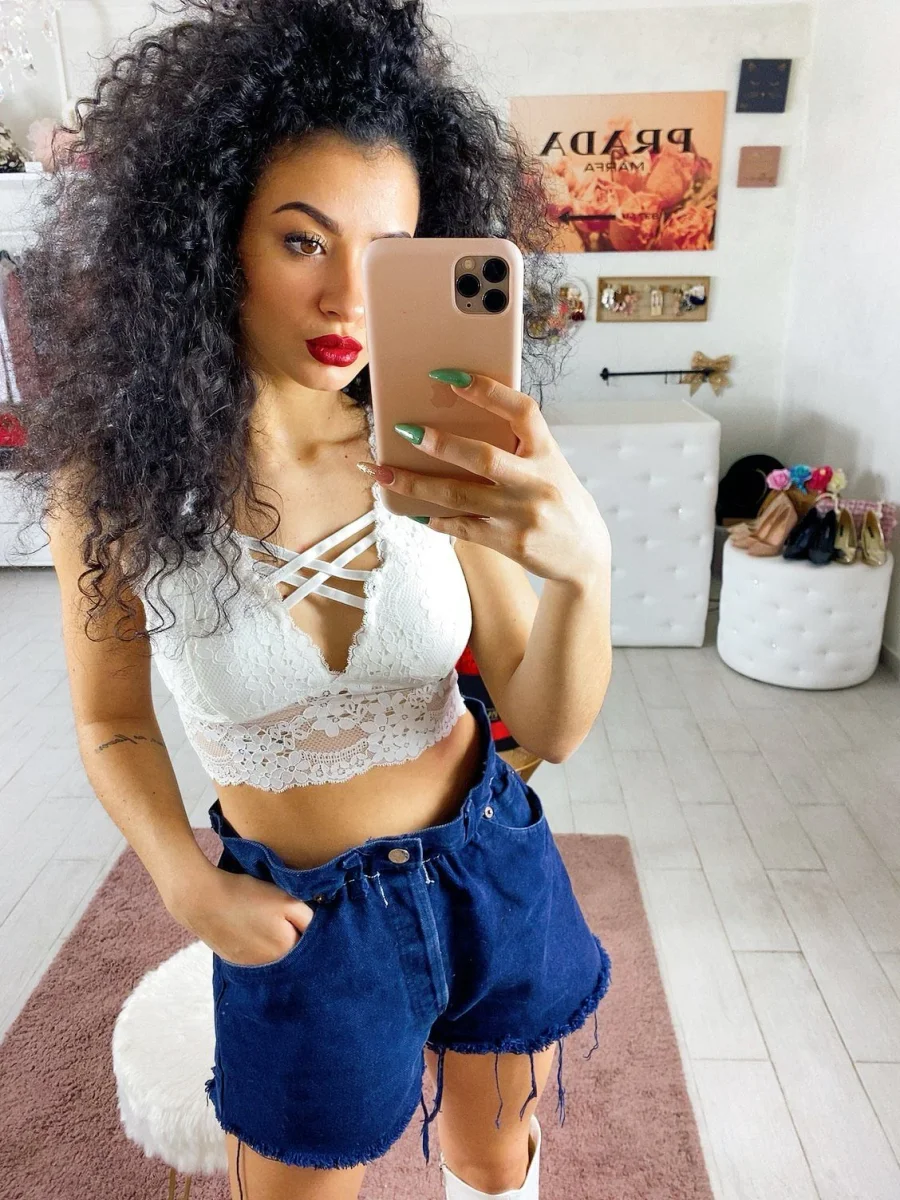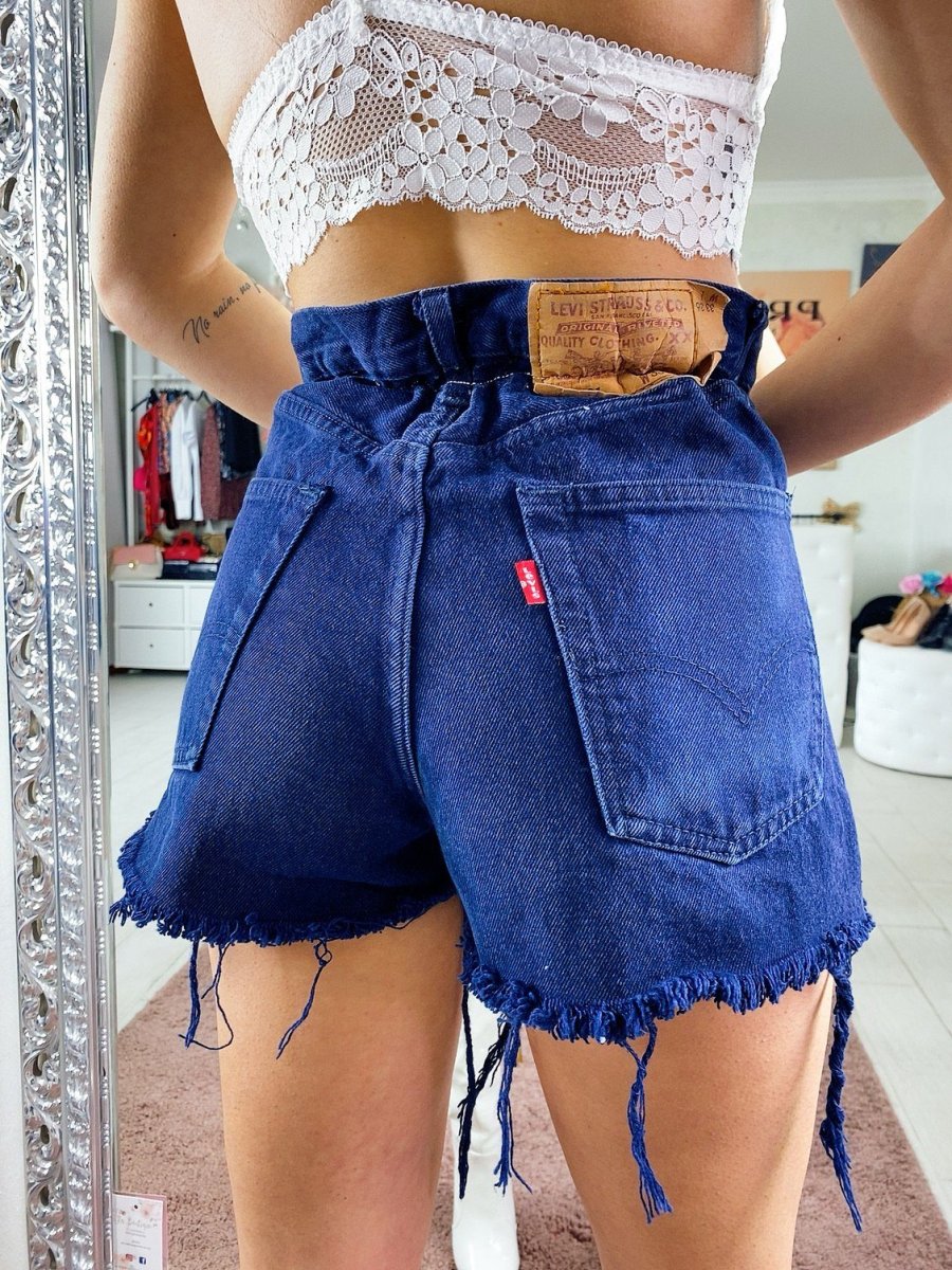 Short in jeans blu notte elasticizzato in vita. Chiusura con bottoncini argento.