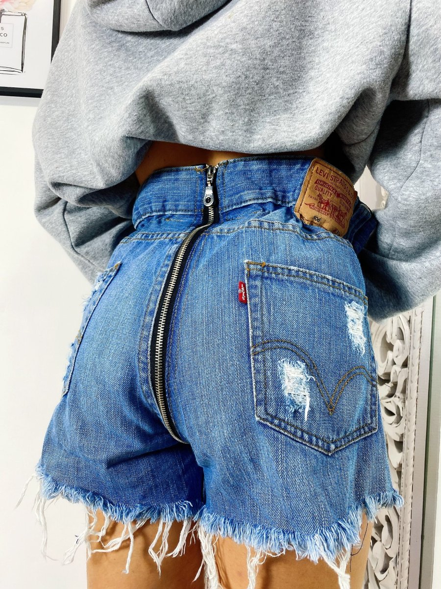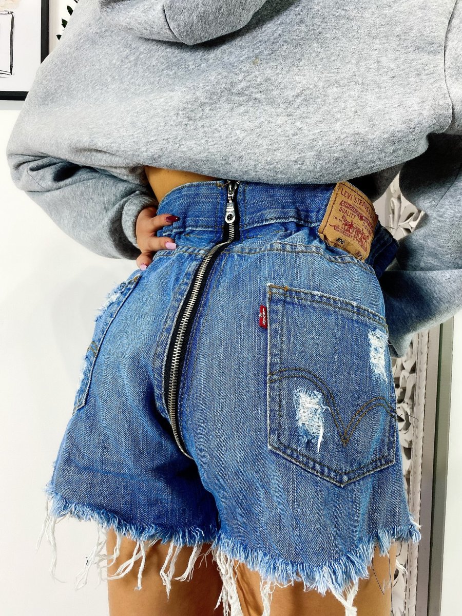 Short Vintage Levi’s alta qualità con strappi. Jeans vintage lavorati a mano Considerati pezzi unici poichè interamente Personalizzati. Lievi differenze rispetto alla foto ne denotano l’unicità e la sua completa lavorazione handmade.