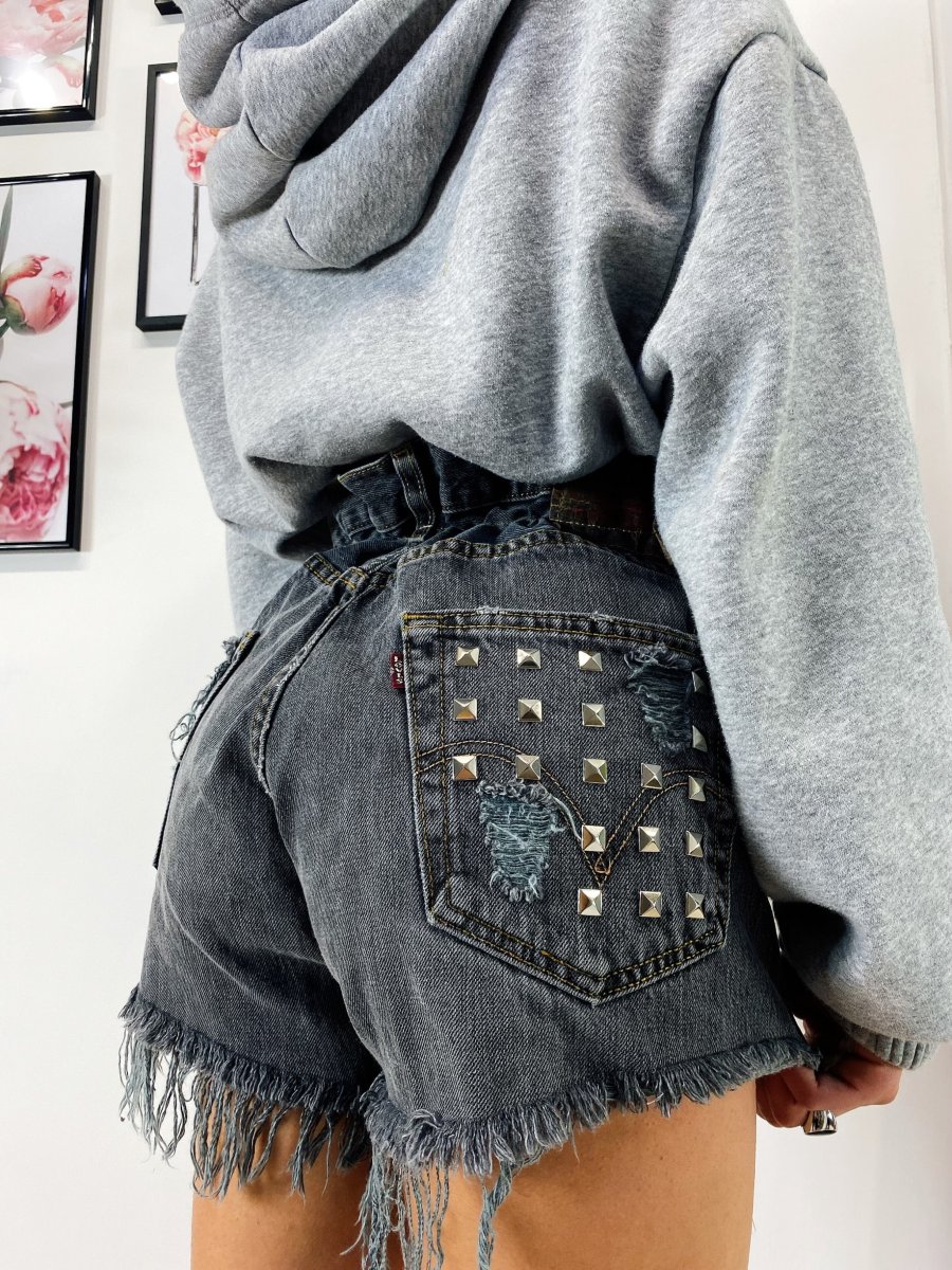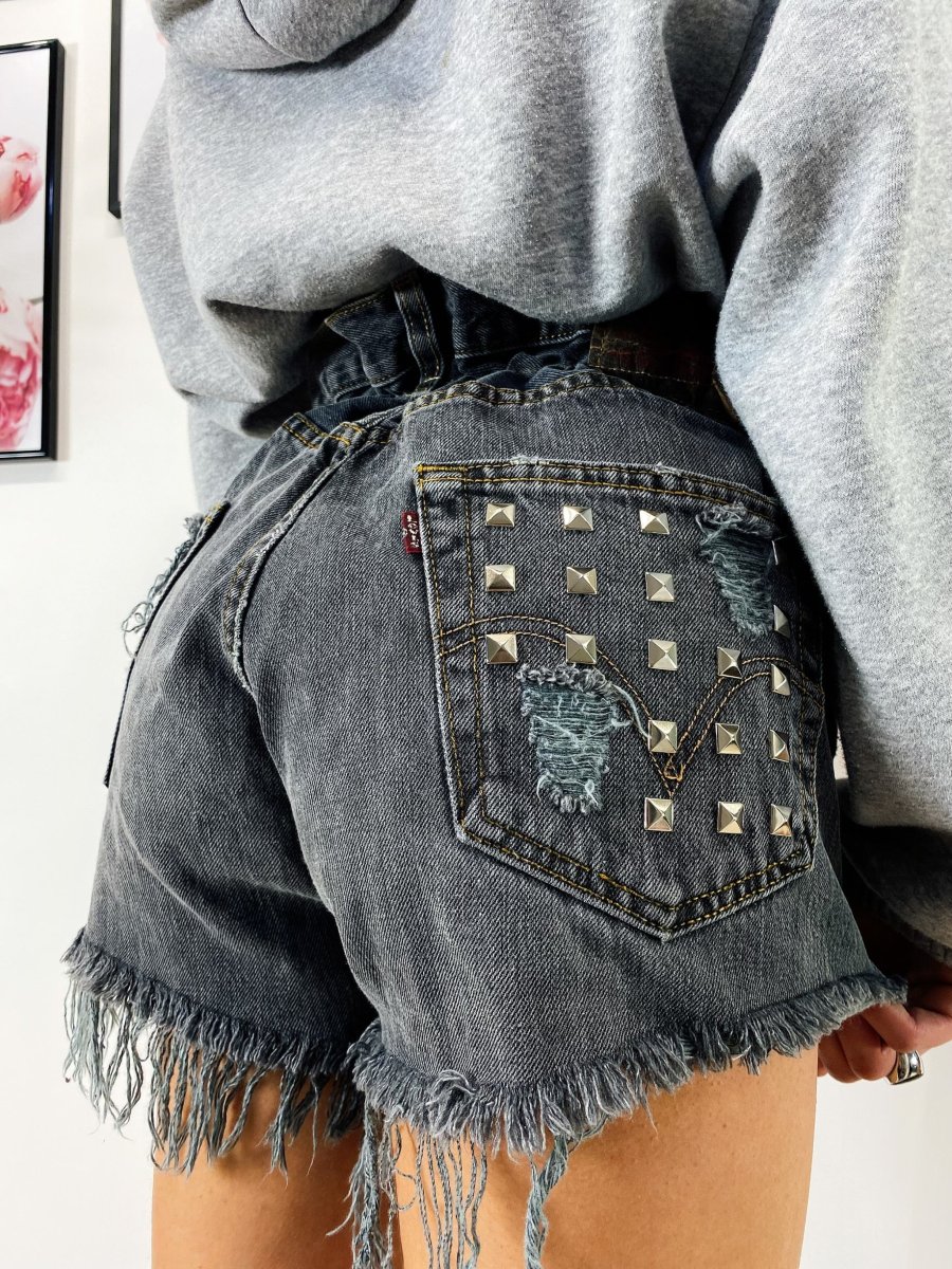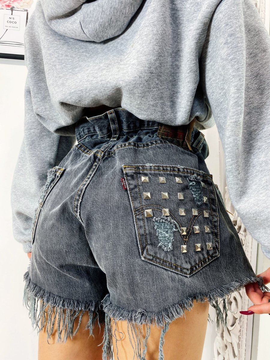 Short Vintage Levi’s alta qualità con strappi. Jeans vintage lavorati a mano Considerati pezzi unici poichè interamente Personalizzati. Lievi differenze rispetto alla foto ne denotano l’unicità e la sua completa lavorazione handmade.