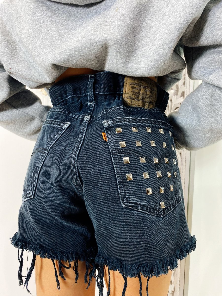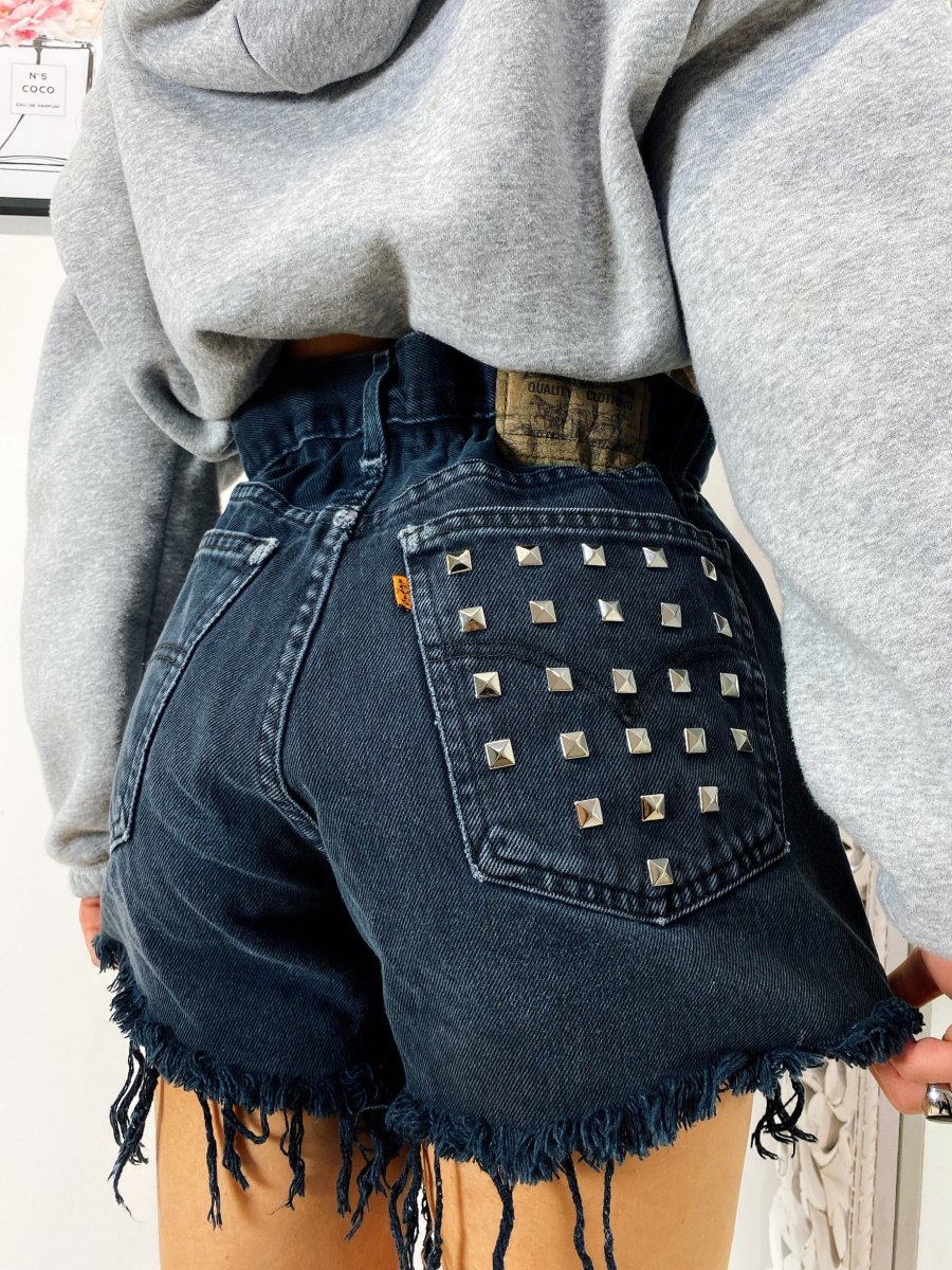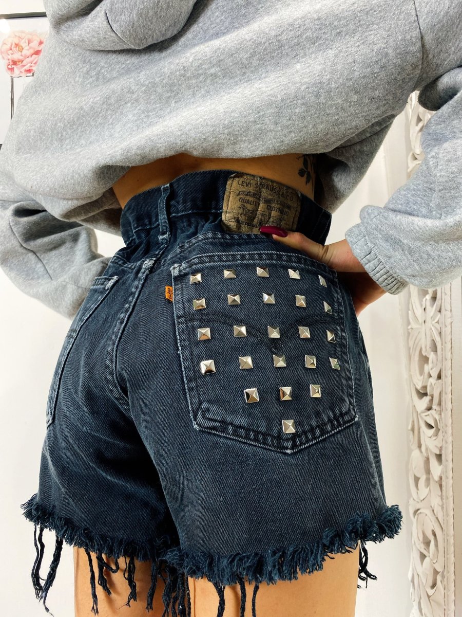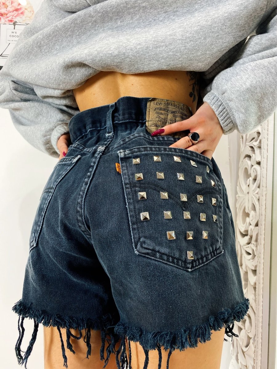 Short Vintage Levi’s alta qualità con strappi. Jeans vintage lavorati a mano Considerati pezzi unici poichè interamente Personalizzati. Lievi differenze rispetto alla foto ne denotano l’unicità e la sua completa lavorazione handmade.