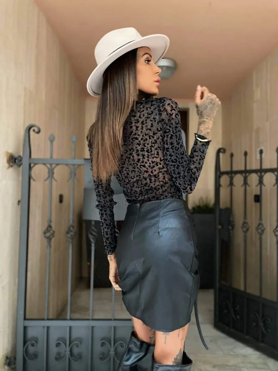 Maglia nera in trama maculata super sexy indossala con una bralette per un effetto più glamour