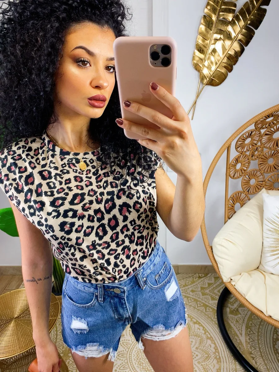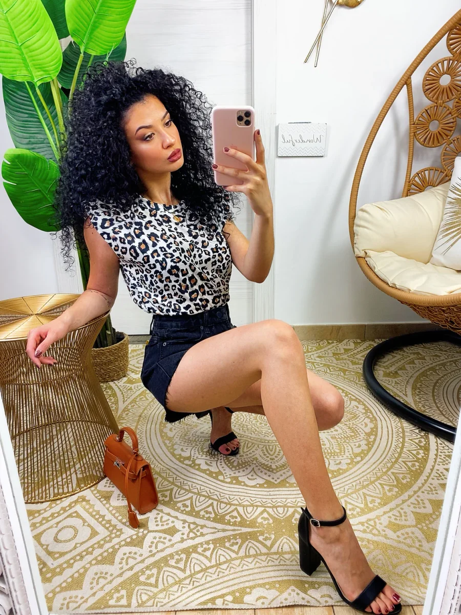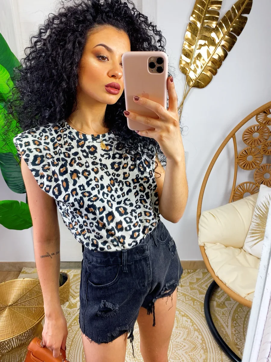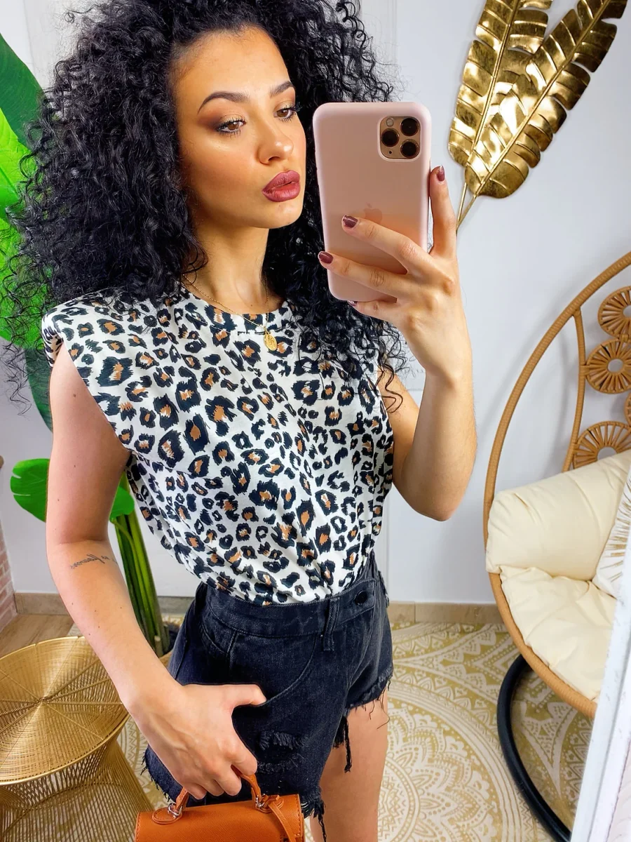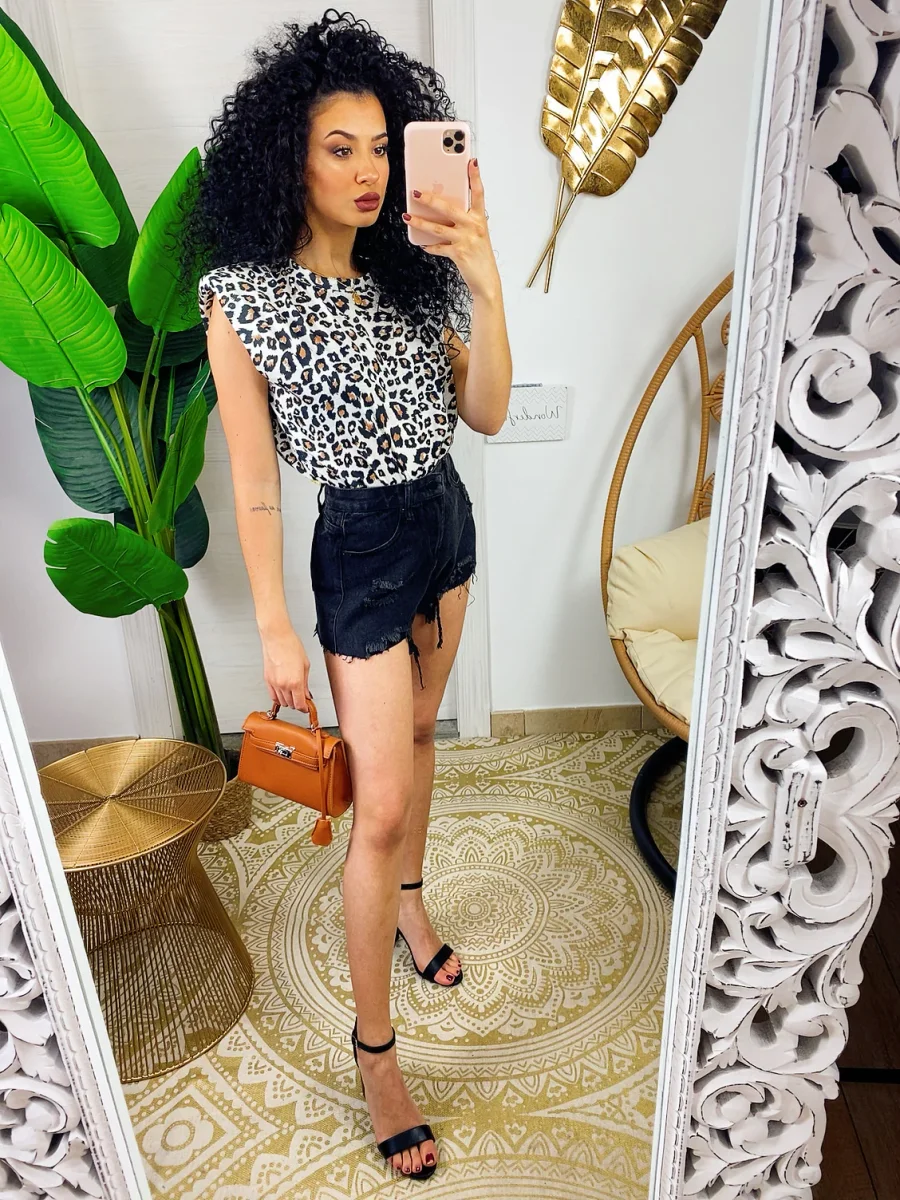 Maglia con spalline bombate trama maculata . Taglia unica vestibilità morbida