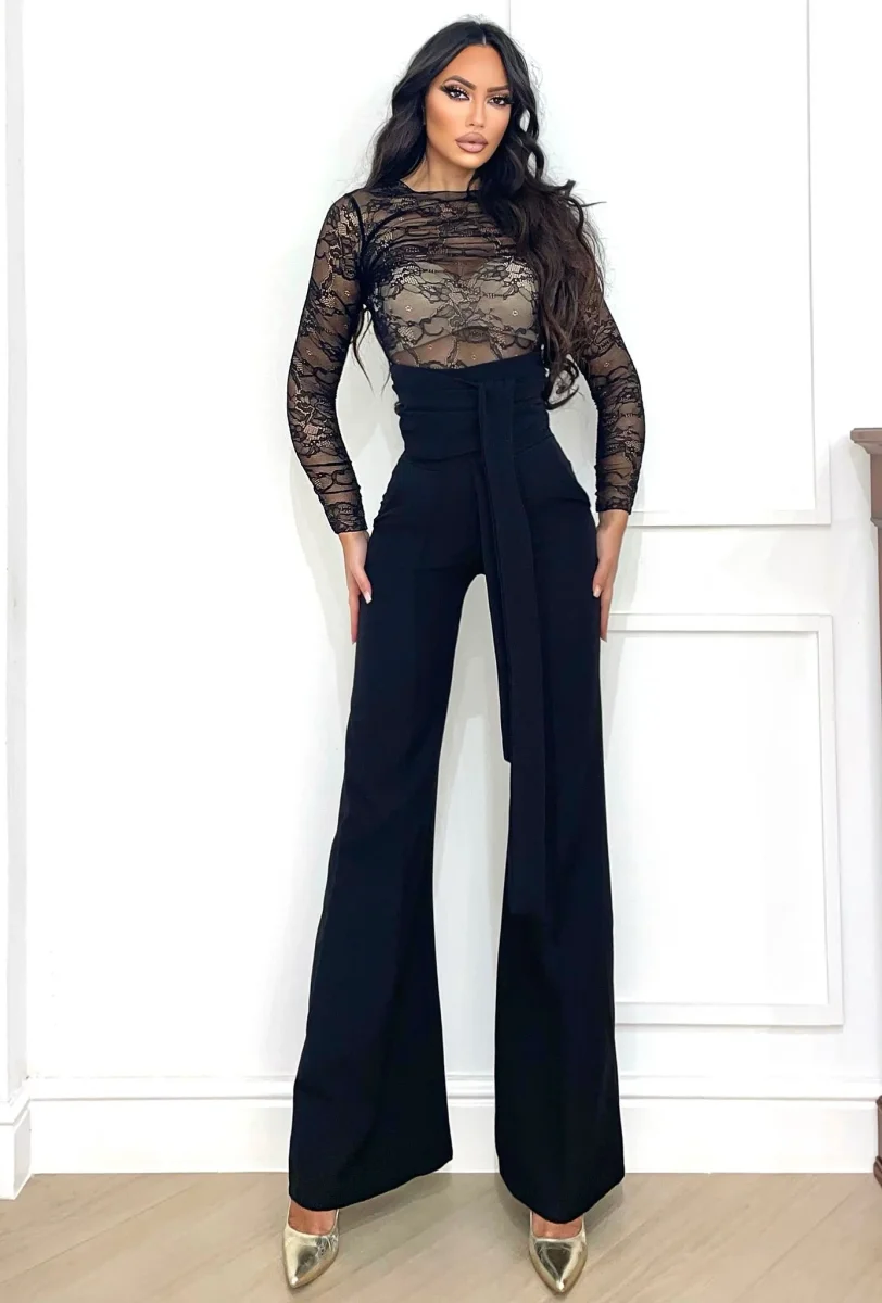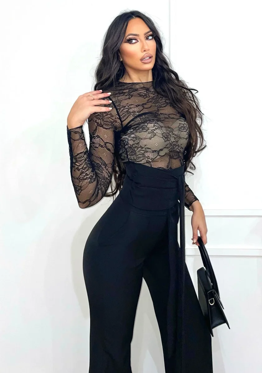 Maglia crop in pizzo nero aderente ma elasticizzata