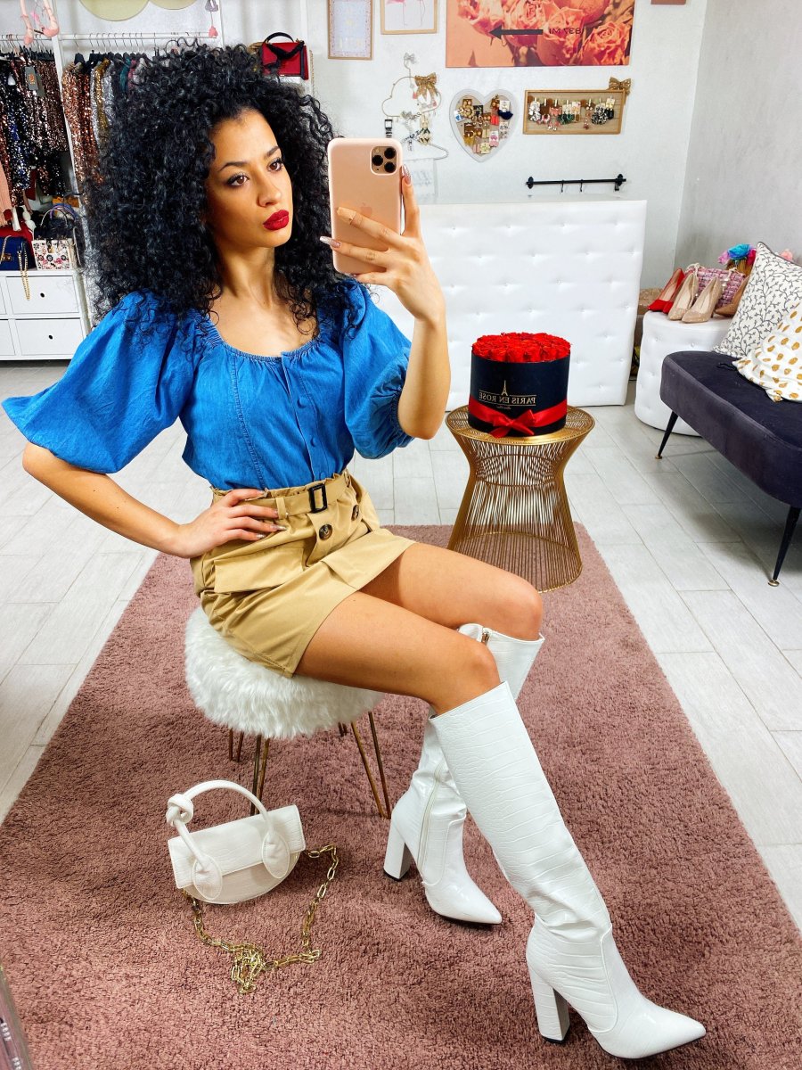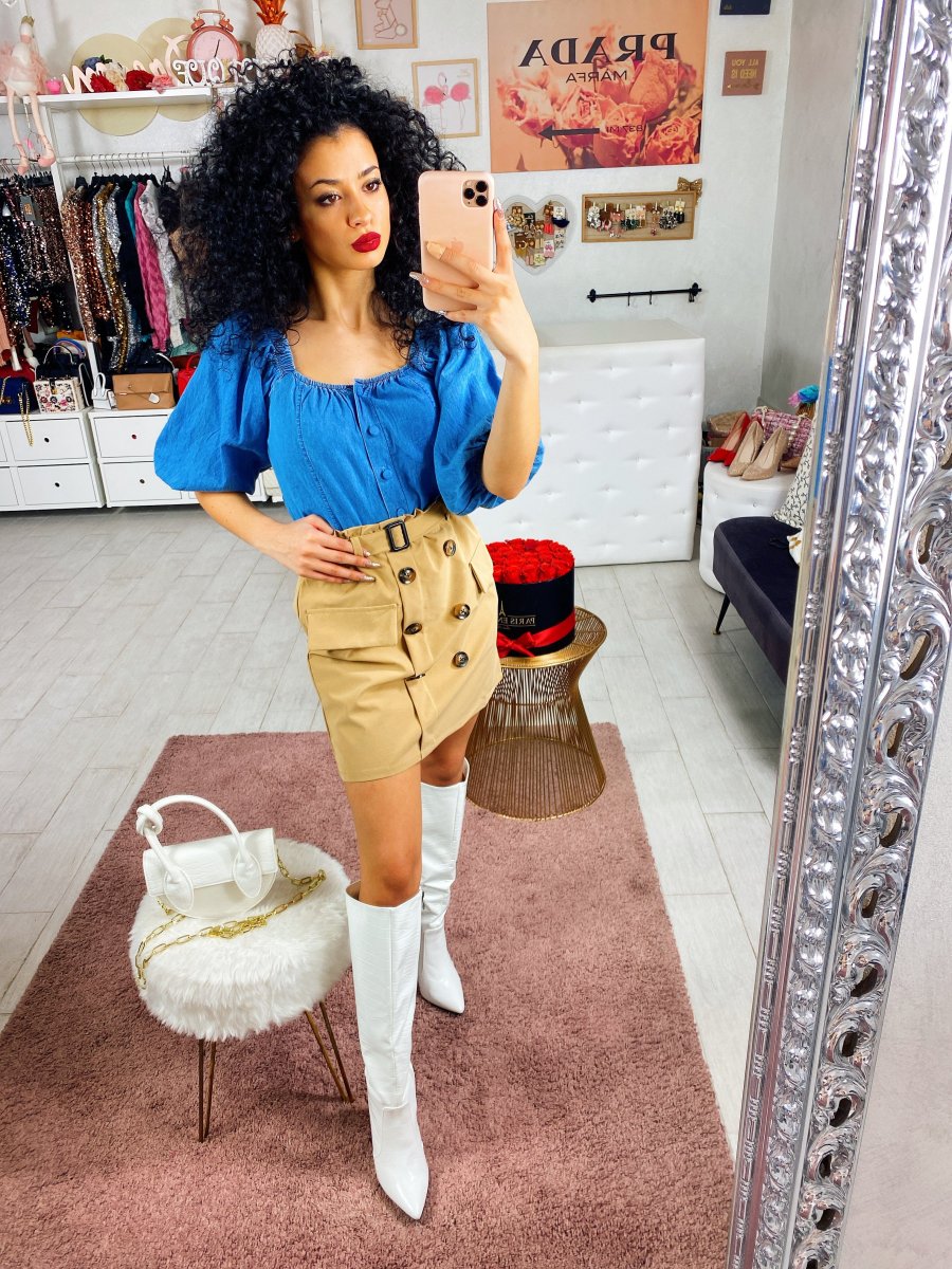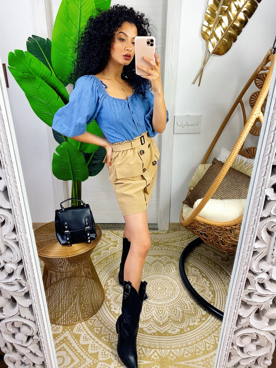Magliettina in jeans con bottoncini. Tessuto elasticizzato