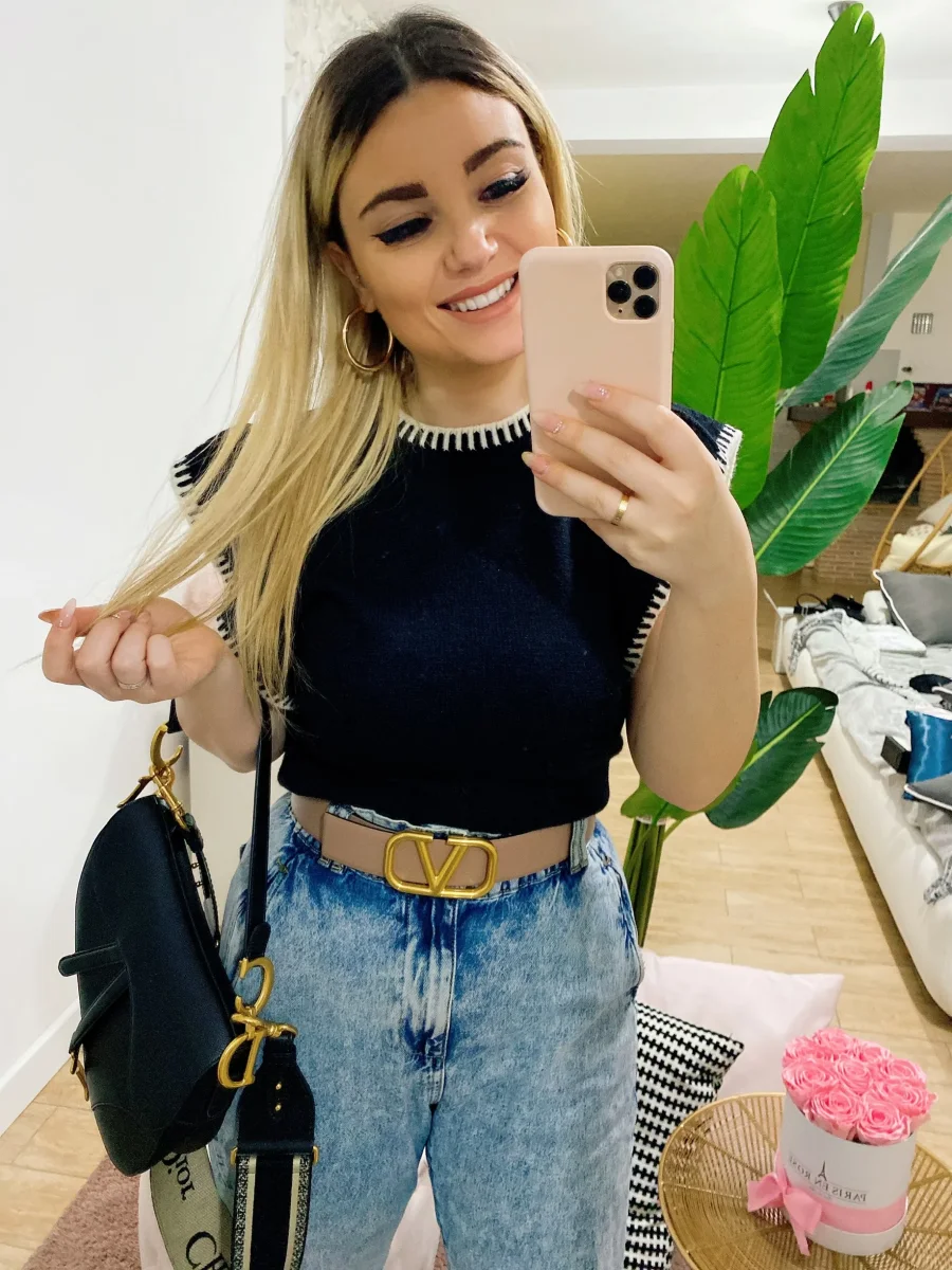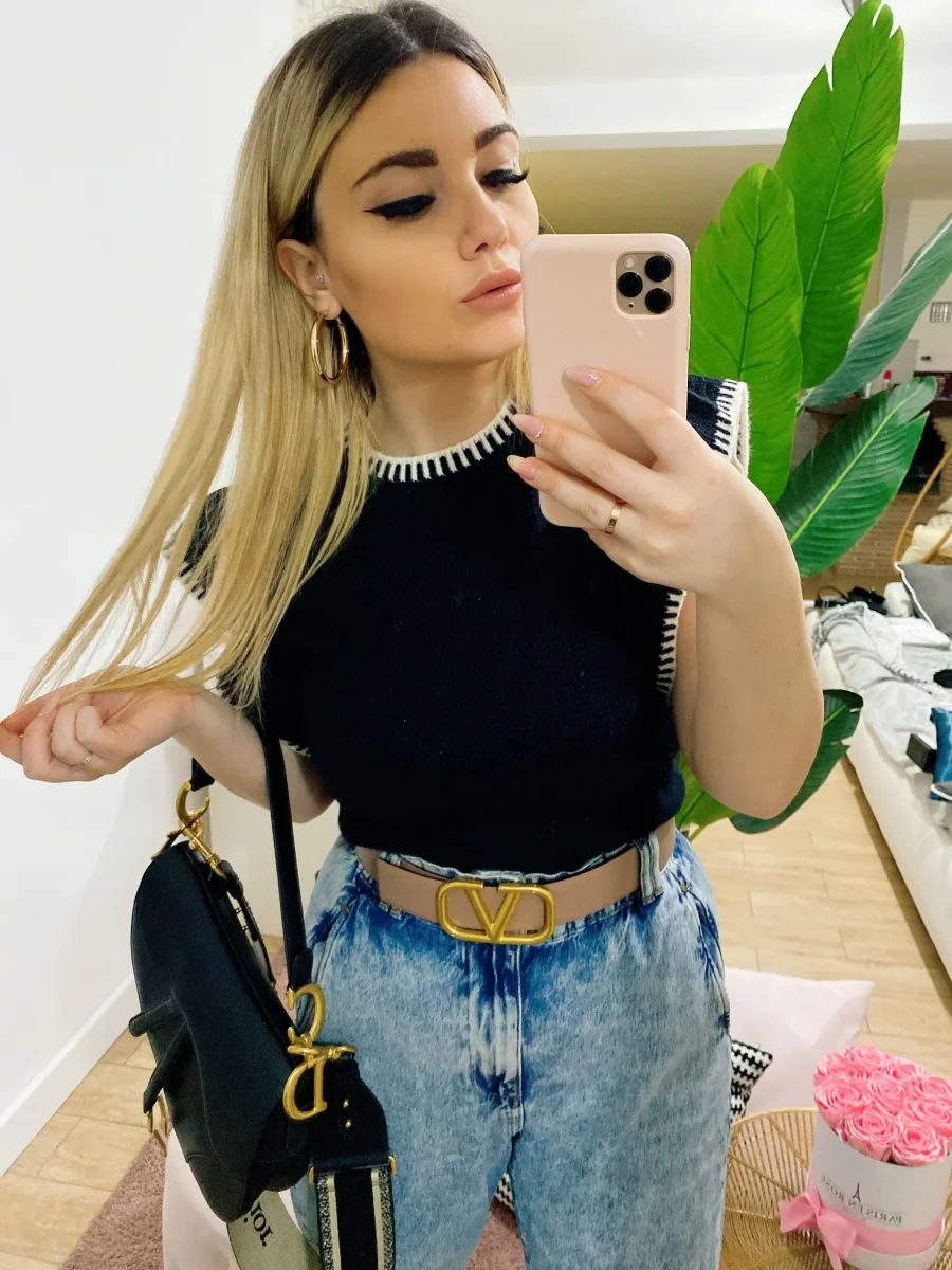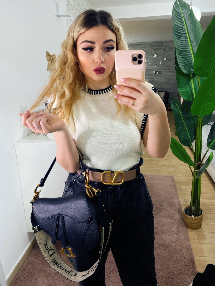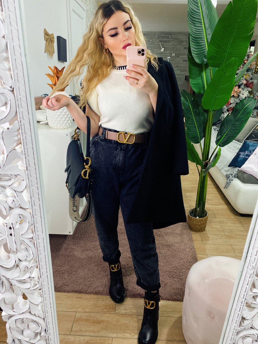 Maglioncino particolarissimo bicolore con manica molto ampia, in un morbidissimo tessuto caldo e pesante.