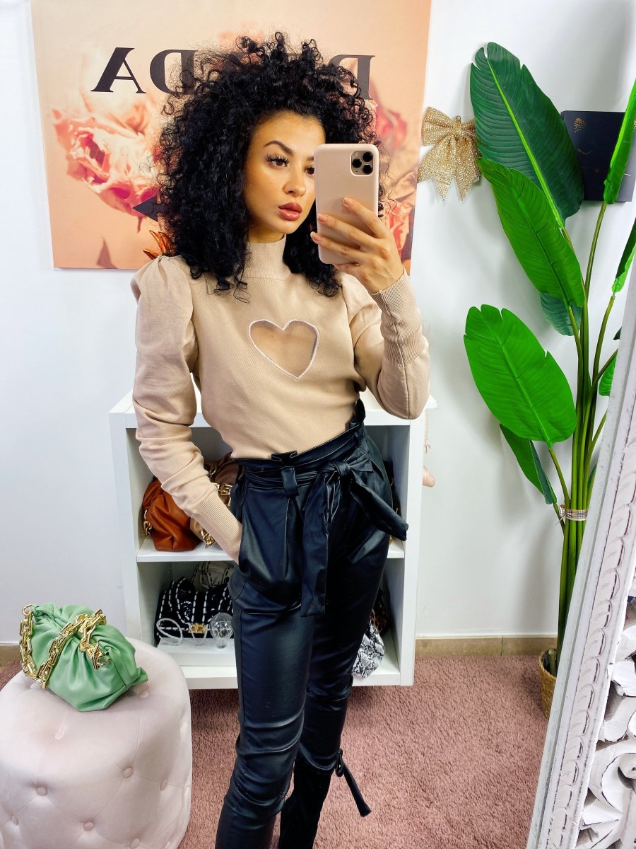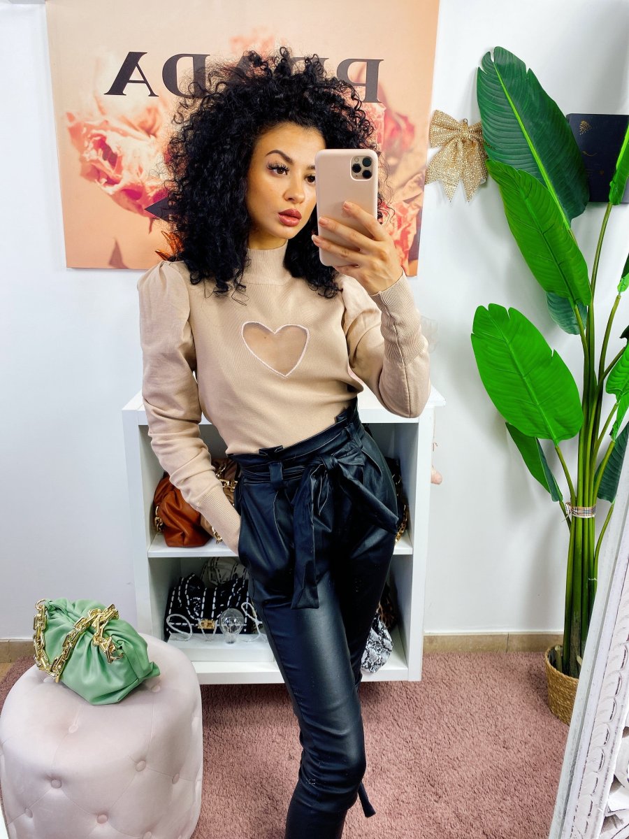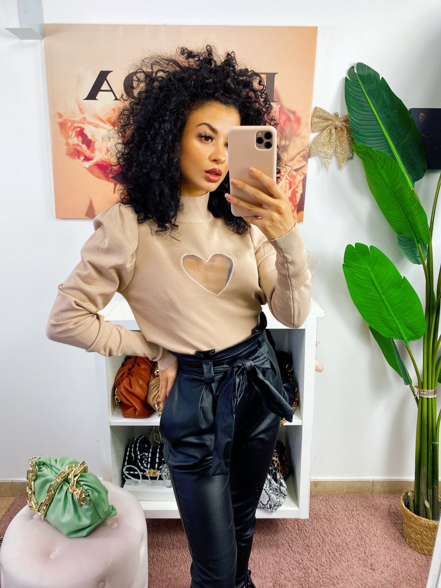 Maglioncino in cotone pesante con cuore sul petto velato effetto trasparente. Alta qualità francese. Manica leggermente bombata.