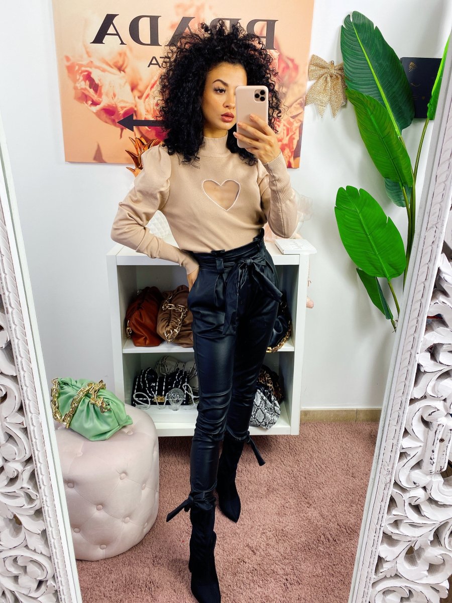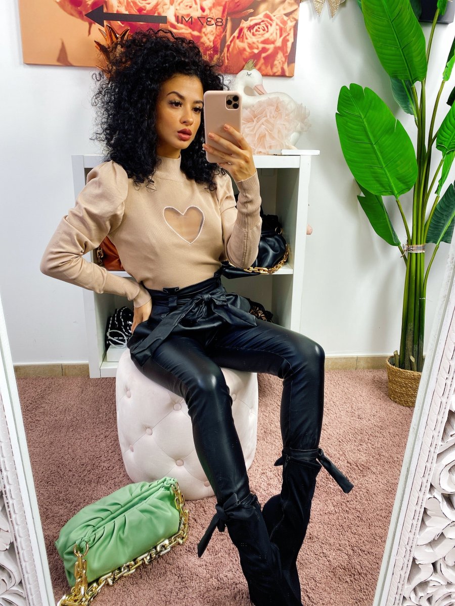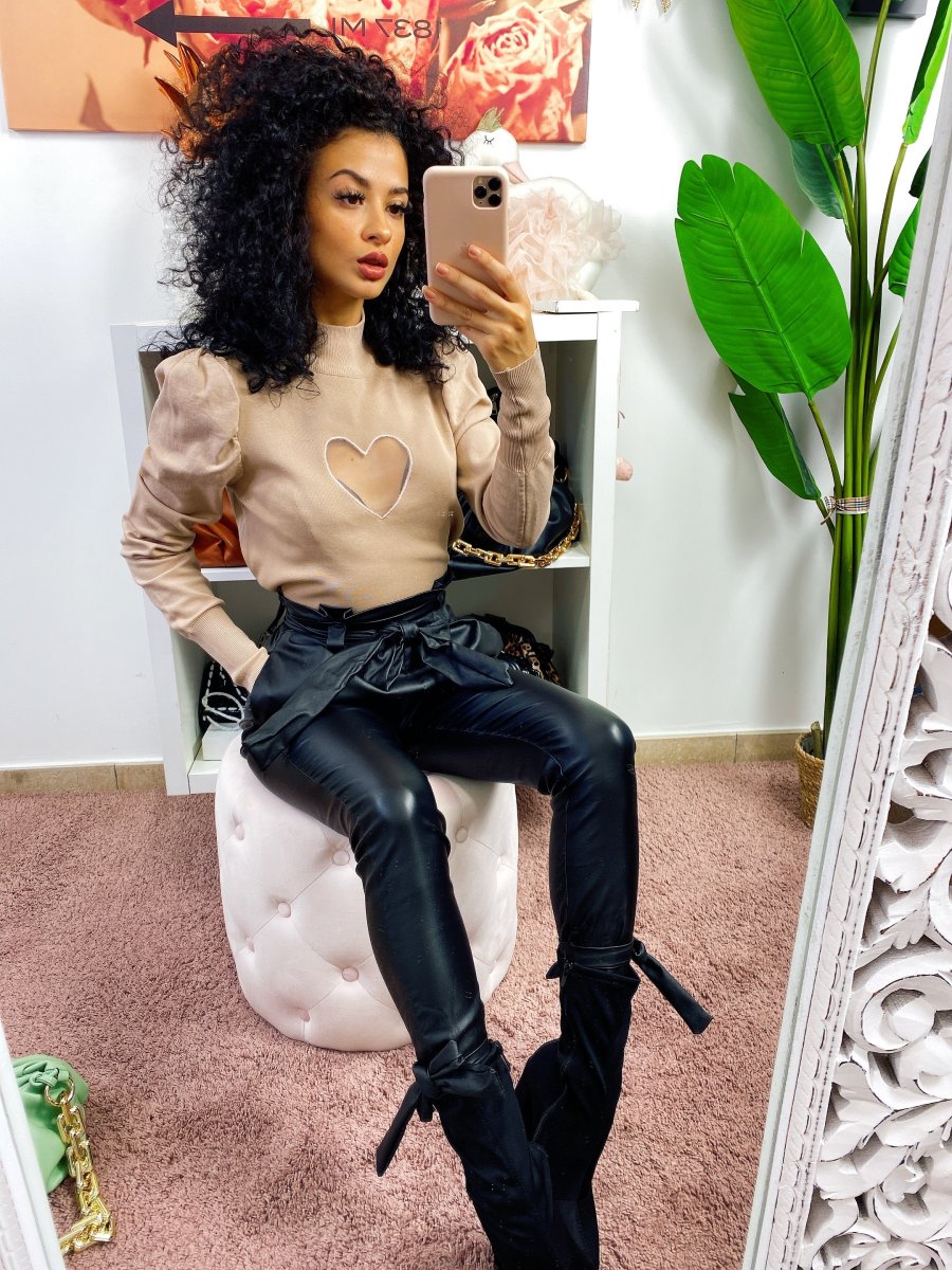 Maglioncino in cotone pesante con cuore sul petto velato effetto trasparente. Alta qualità francese. Manica leggermente bombata.