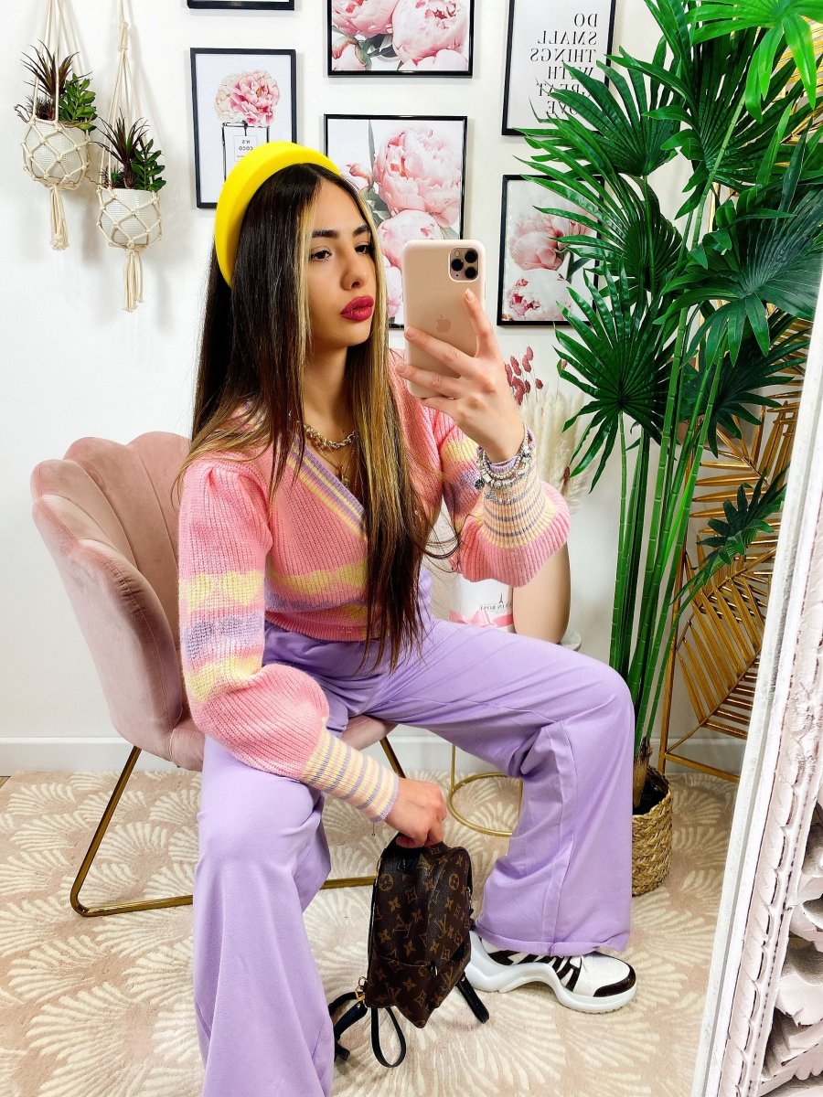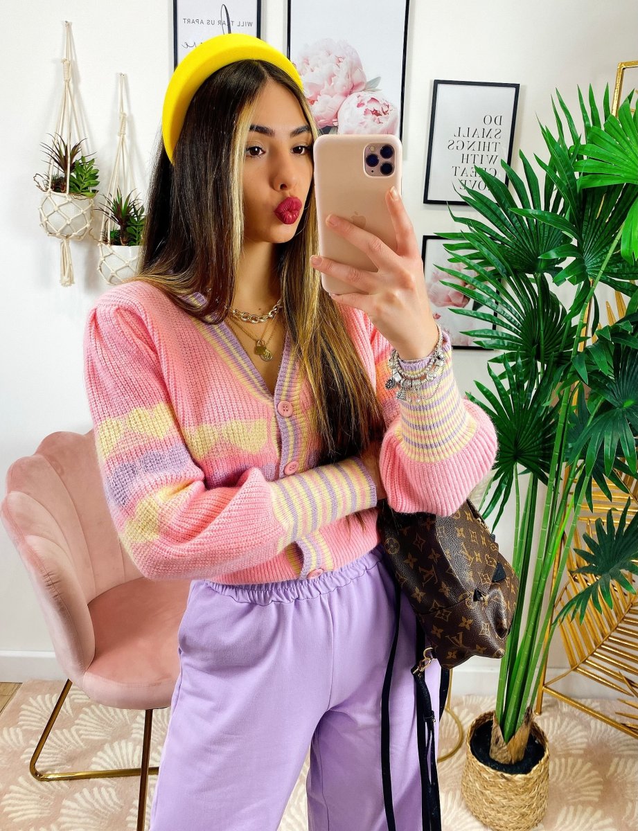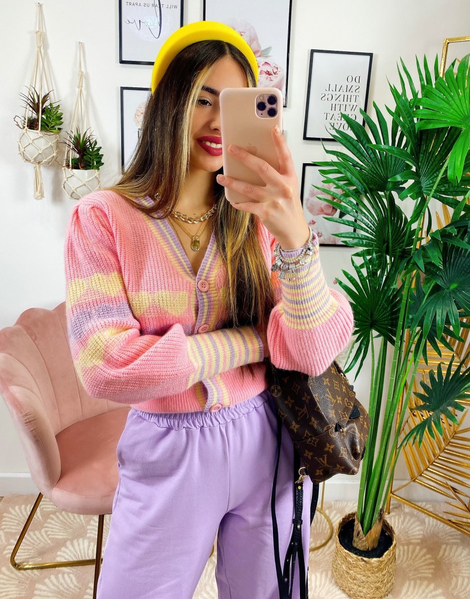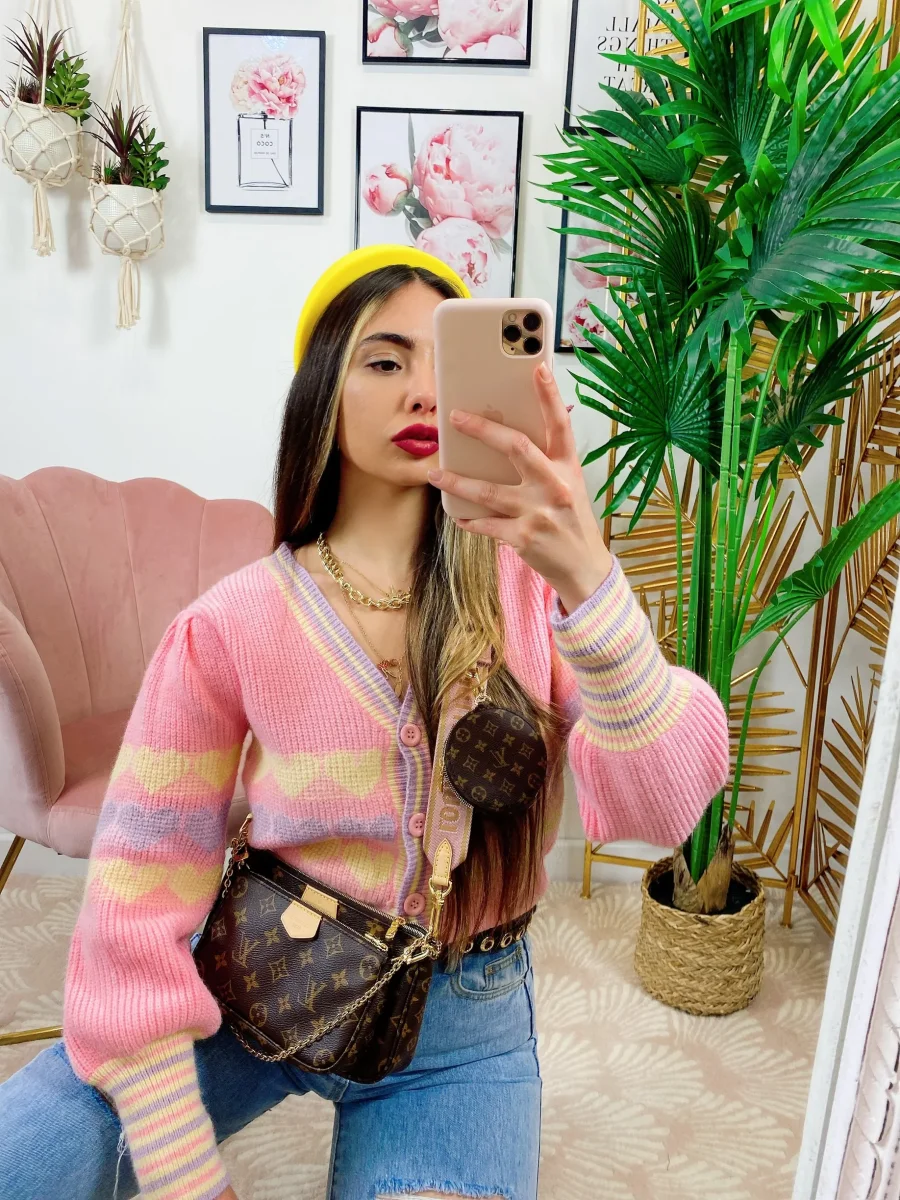 Maglioncino primaverile con bottoni e stampa a cuori con sfondo sul Rosa, ottima qualità