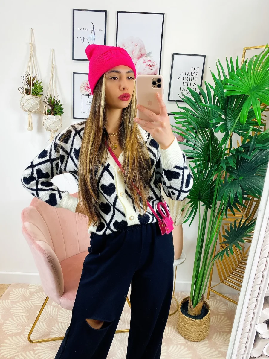 Maglioncino primaverile con bottoni e stampa a cuori, ottima qualità