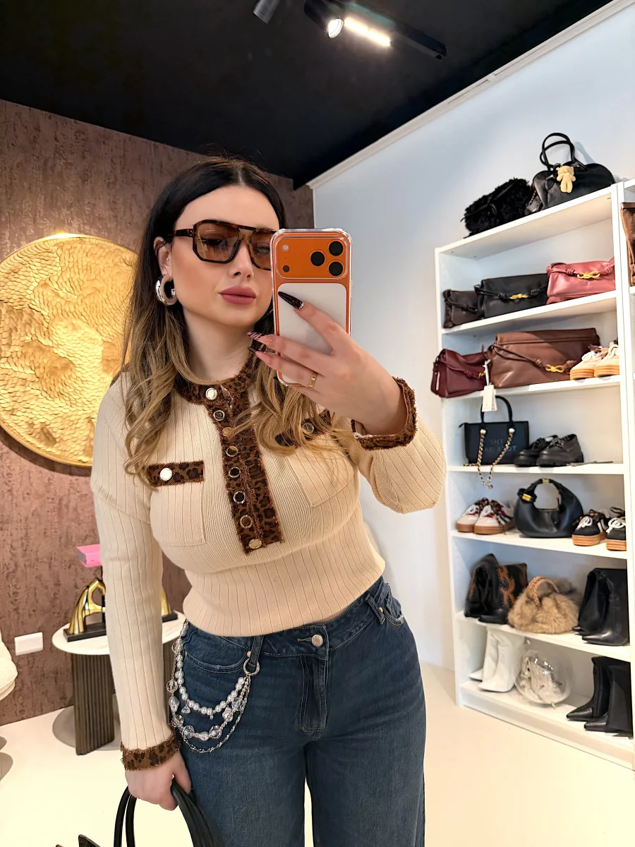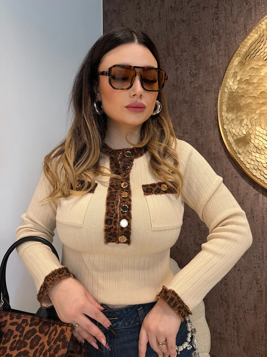 Maglioncino in tessuto elasticizzato con dettaglio animalier