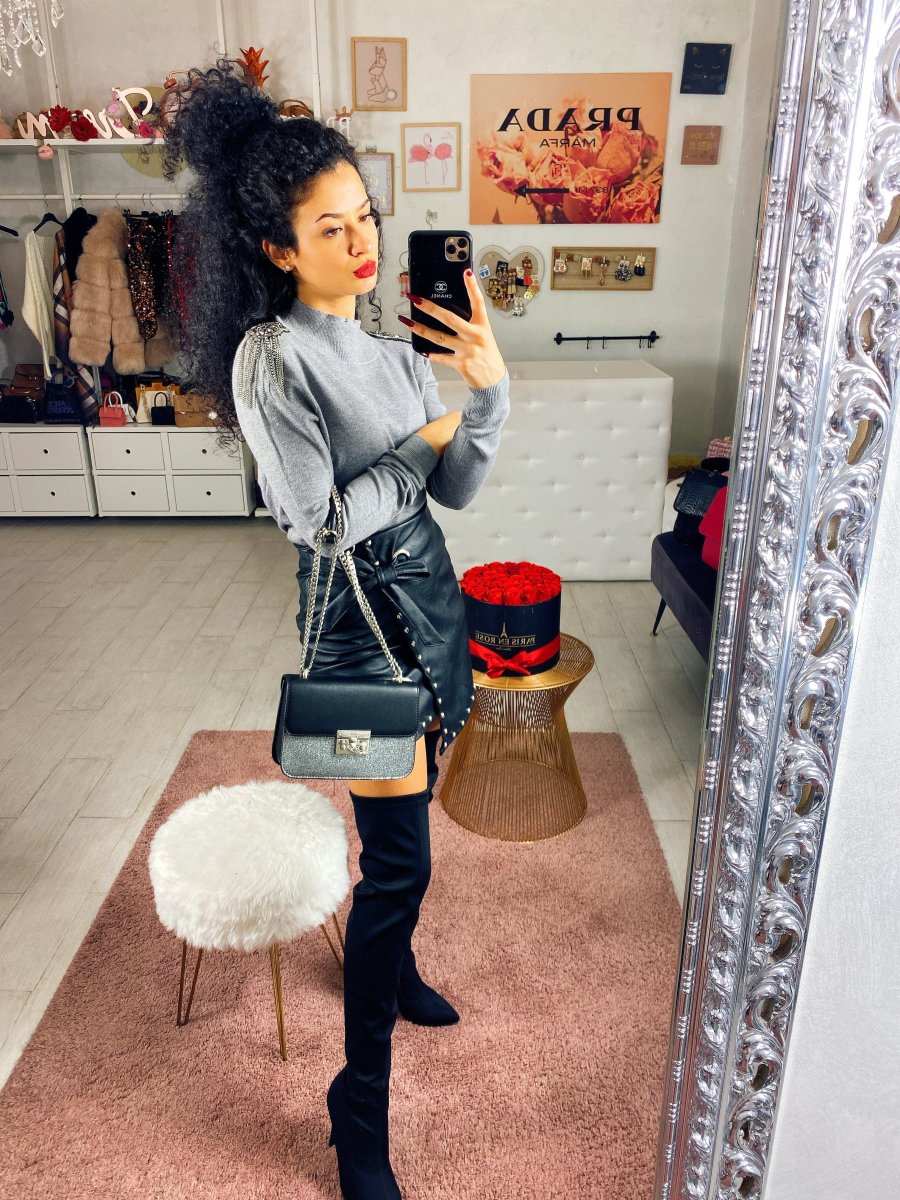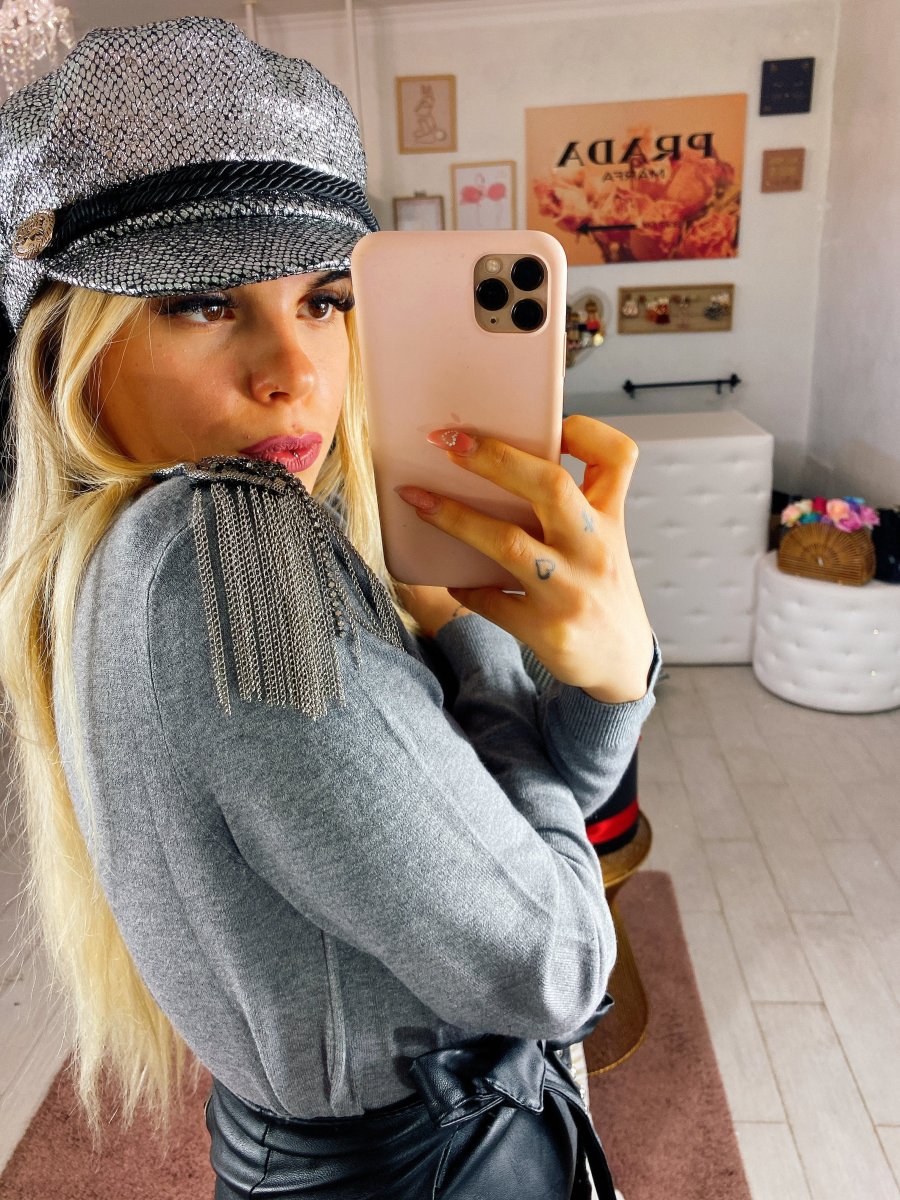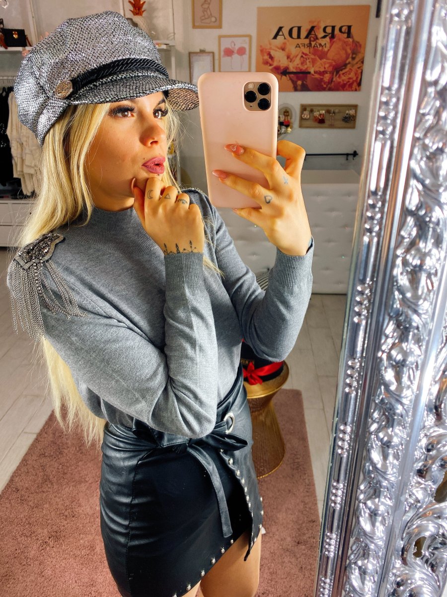 Maglione in tessuto medio pesante con dettaglio sulle spalle