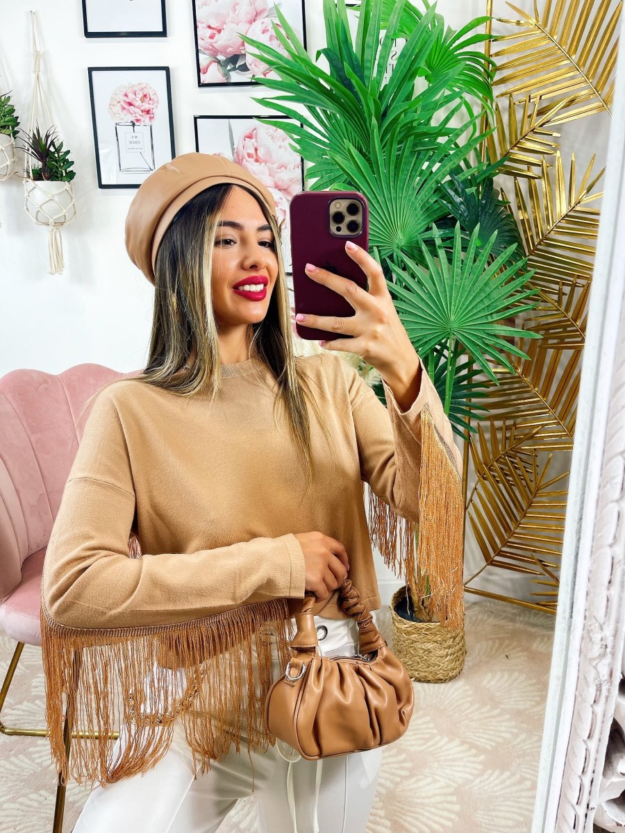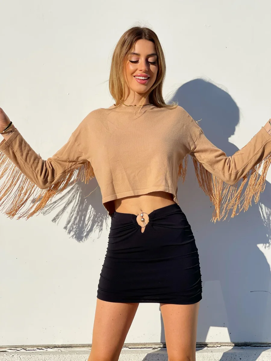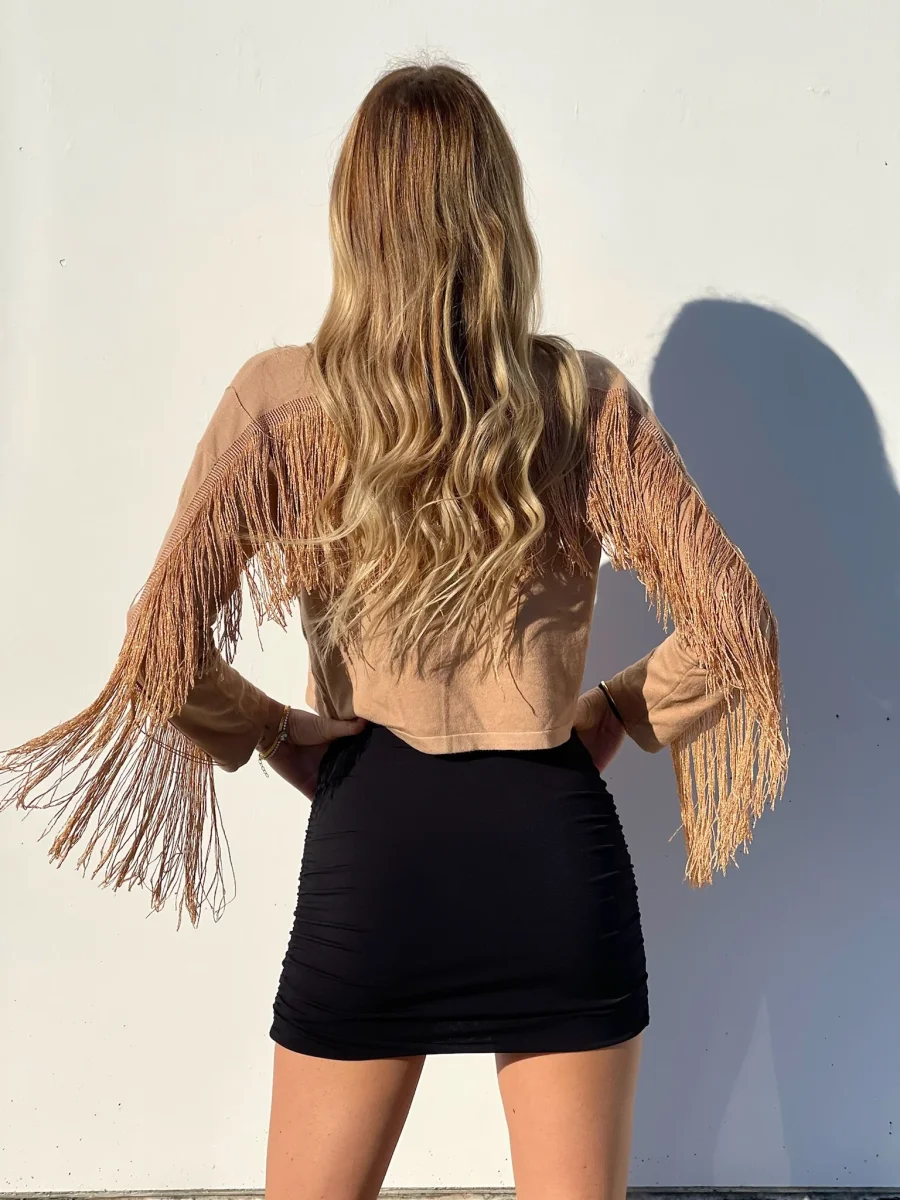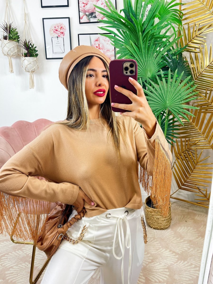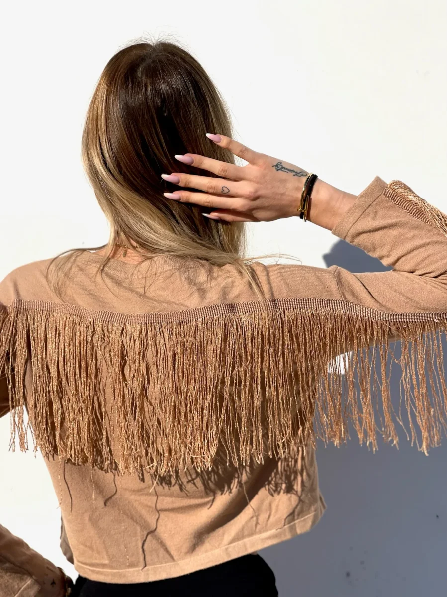 Maglione con frange Nella parte posteriore, morbido come tessuto non pesantissimo.