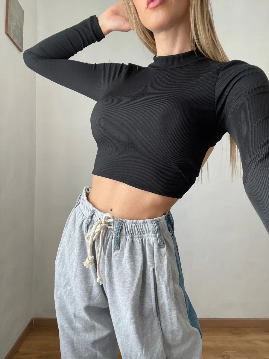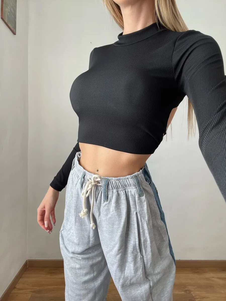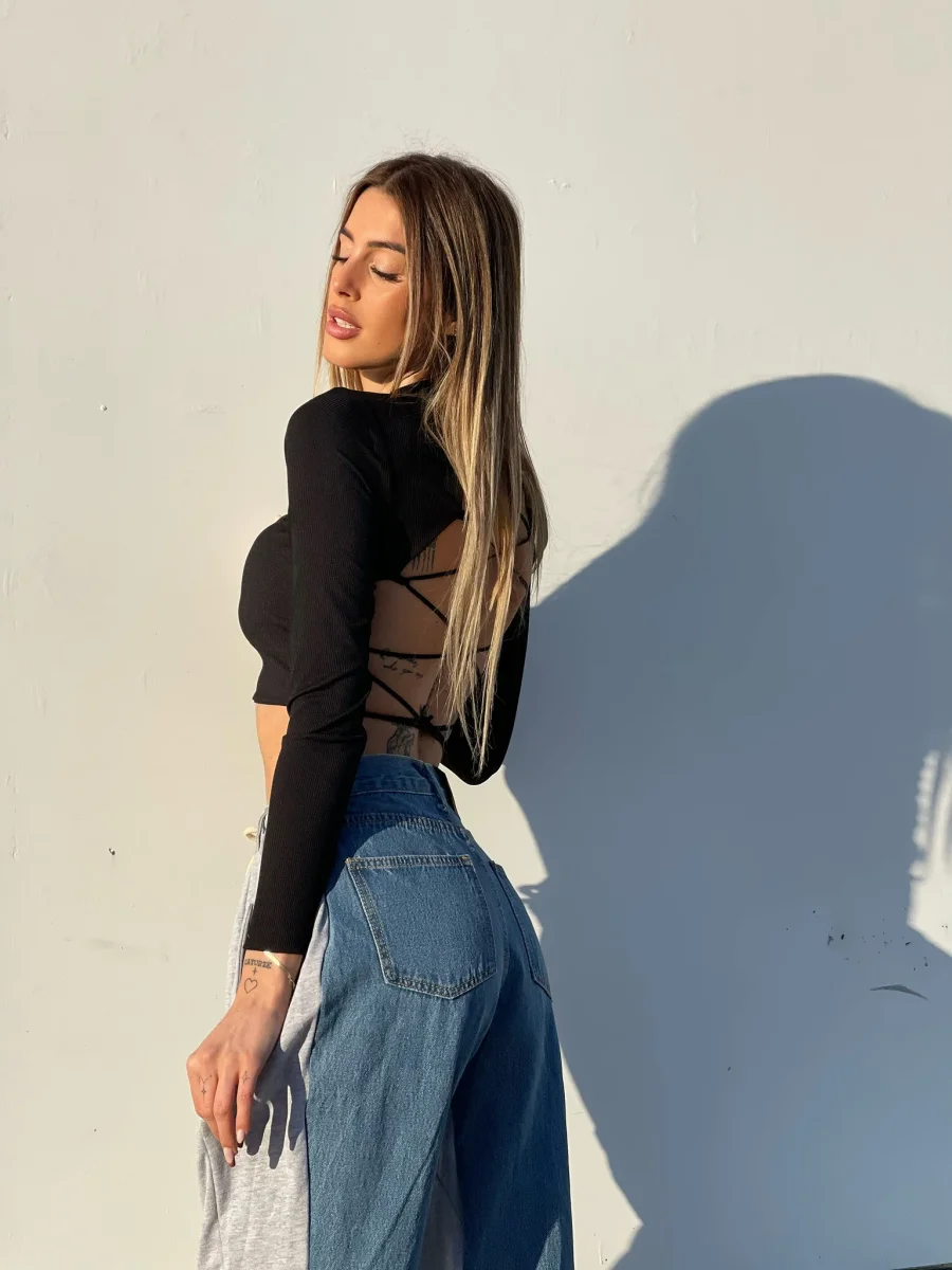 Maglioncino con incrocio semplice sulla schiena. Tessuto molto elasticizzato