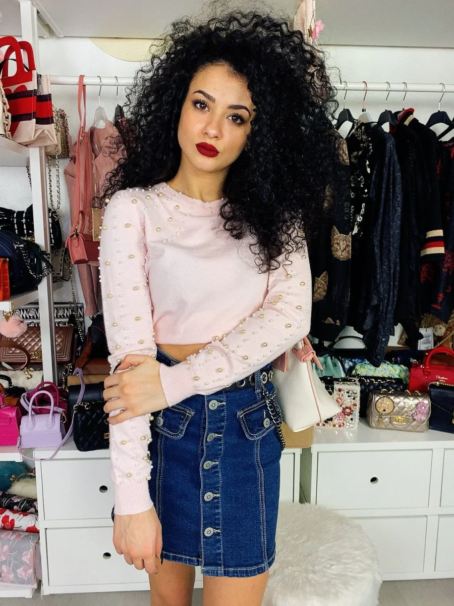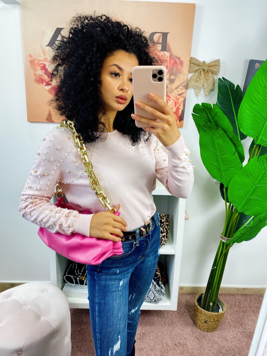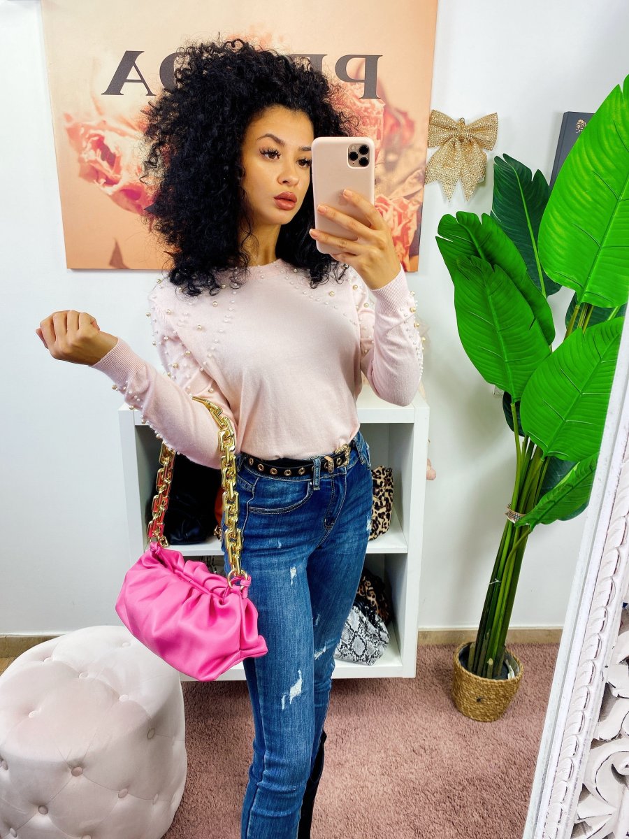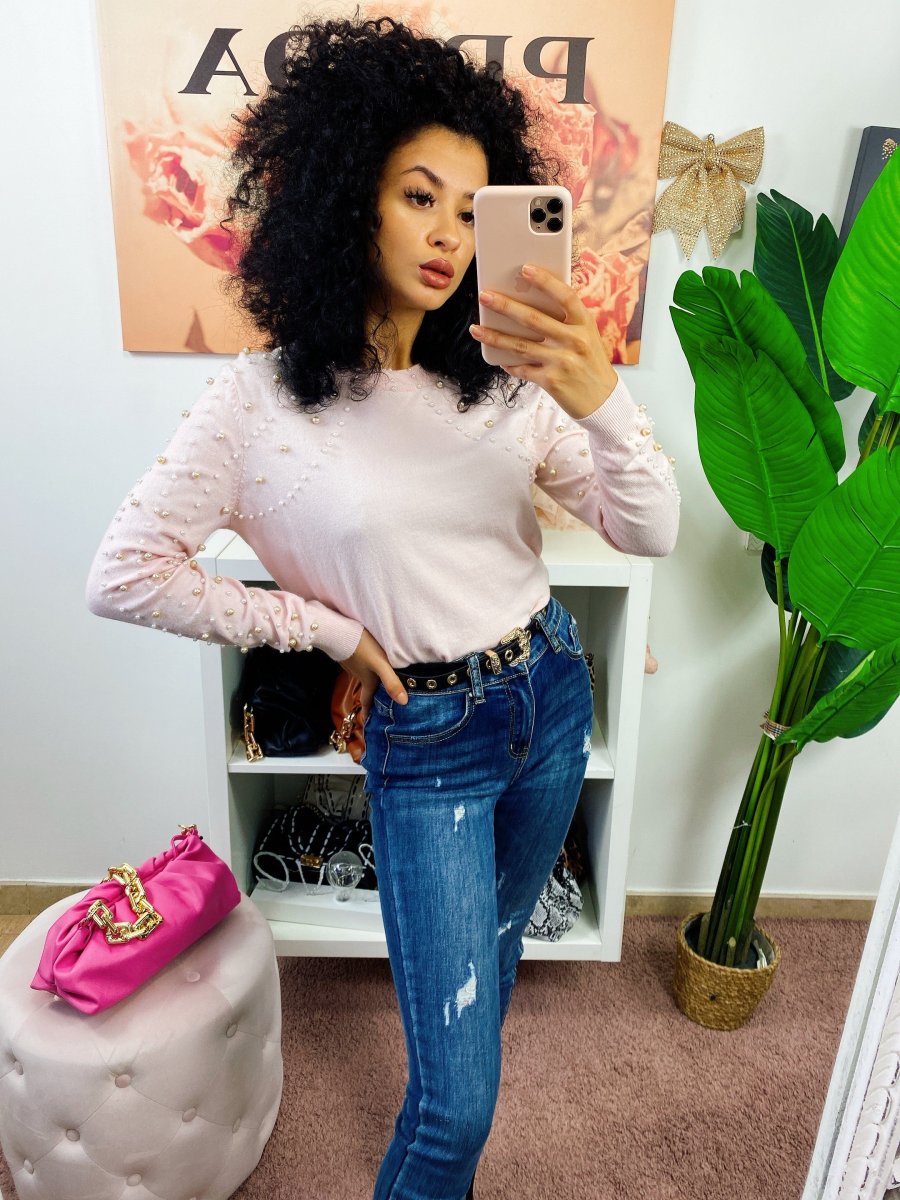 Maglioncino medio pesante con perle. Tessuto molto morbido e confortevole