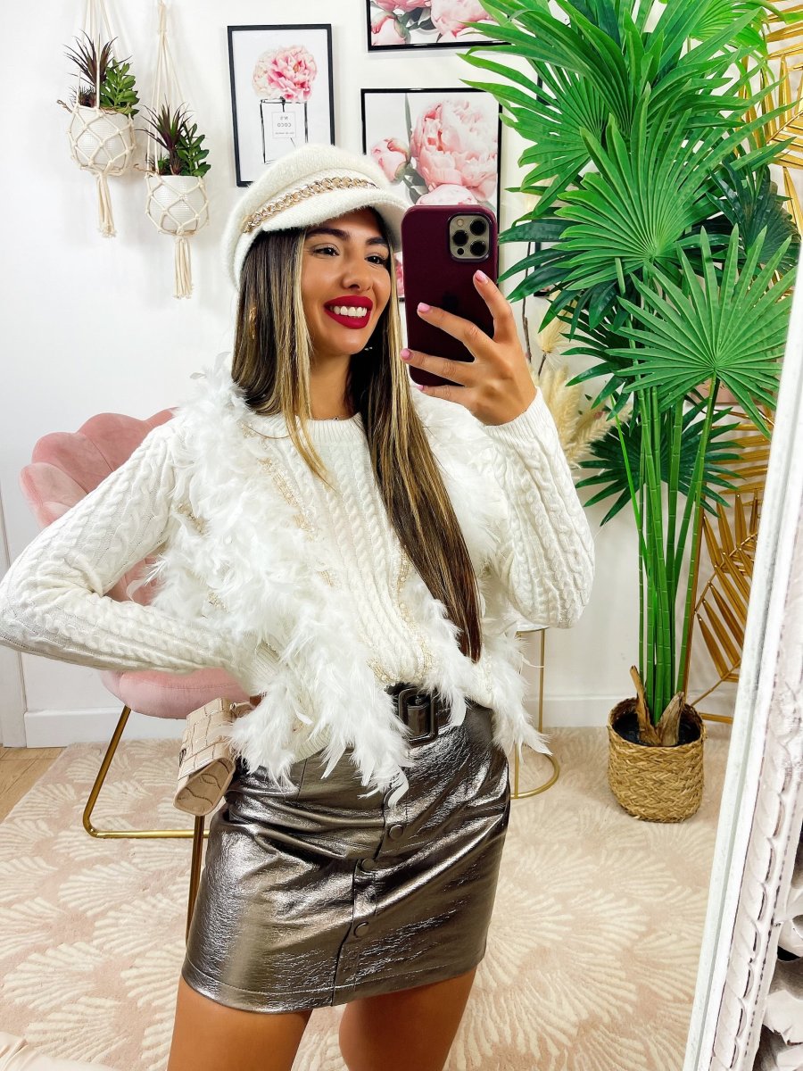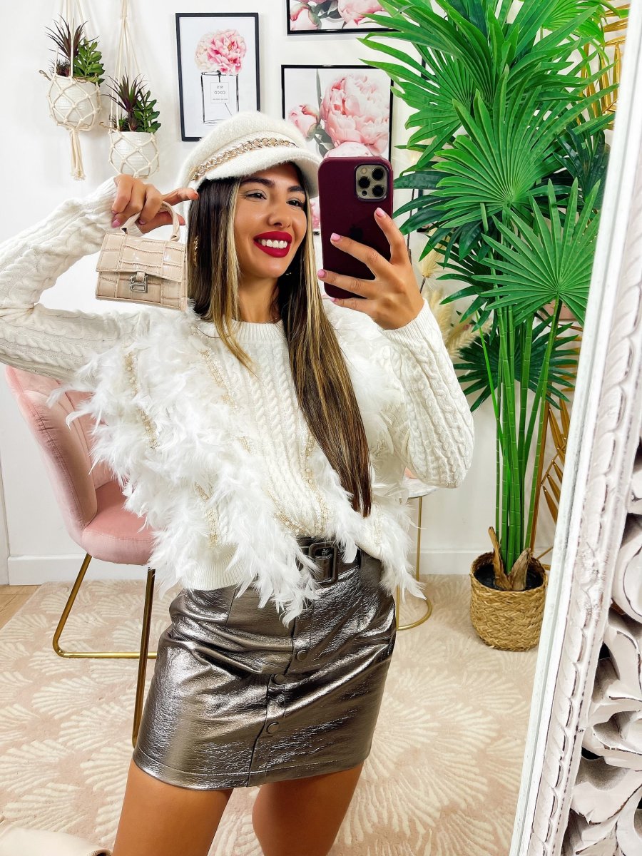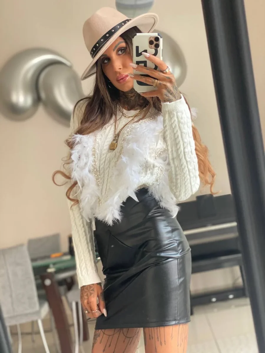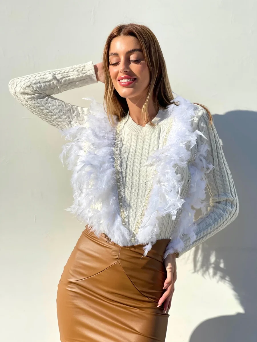 Maglioncino con piume e perle, veramente ottima qualità, morbidissimo.