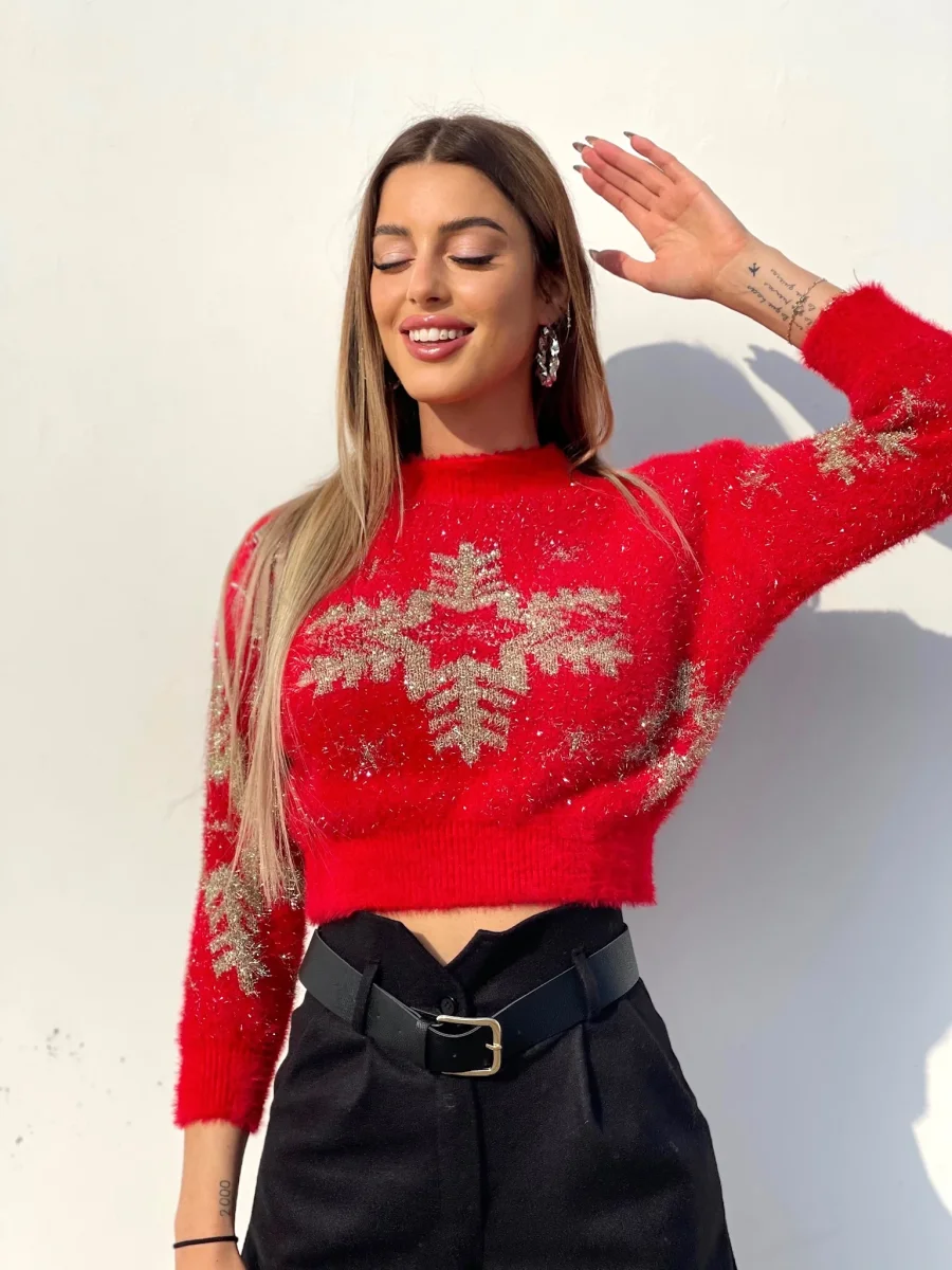 Maglioncino fiocco di neve Rosso
