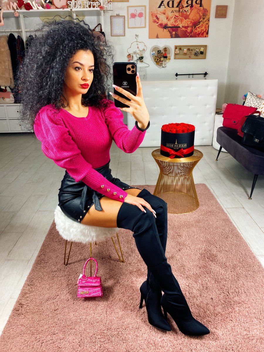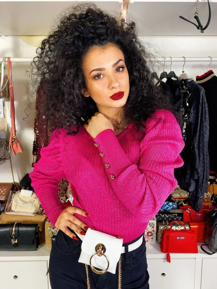 Maglioncino leggero glitterato con bottoncini sulla manica. Tessuto comodo elasticizzato