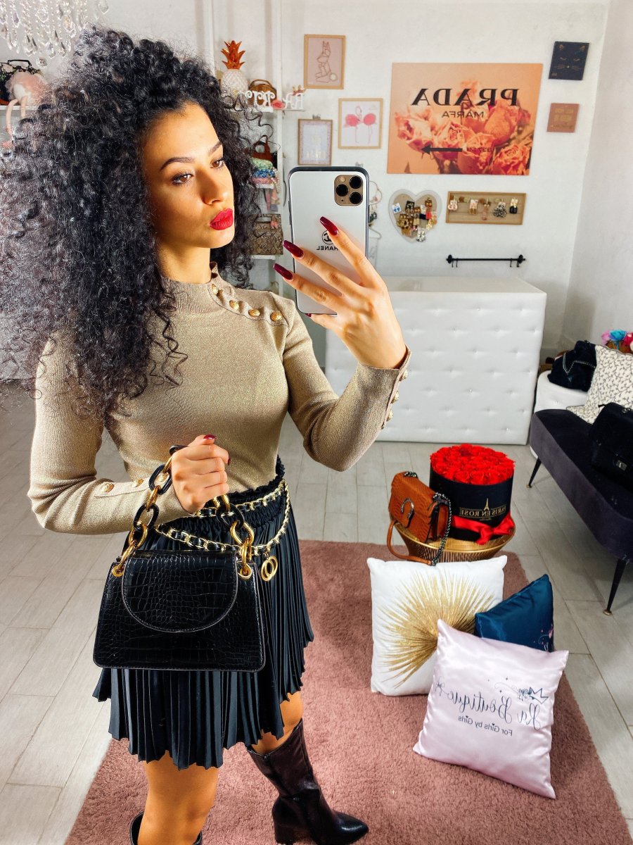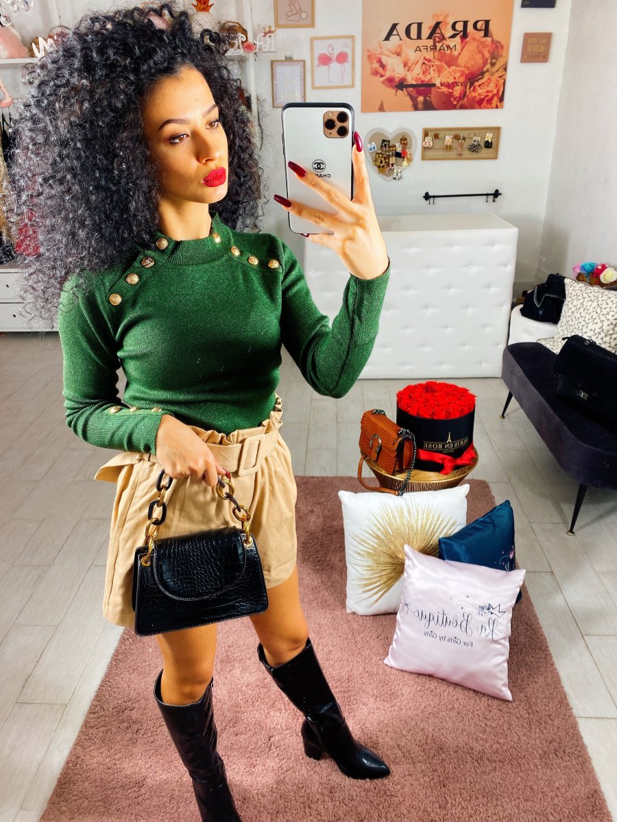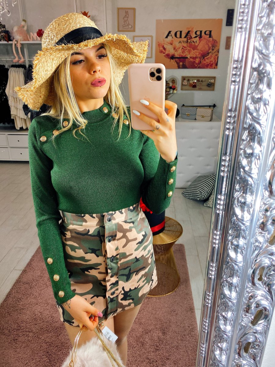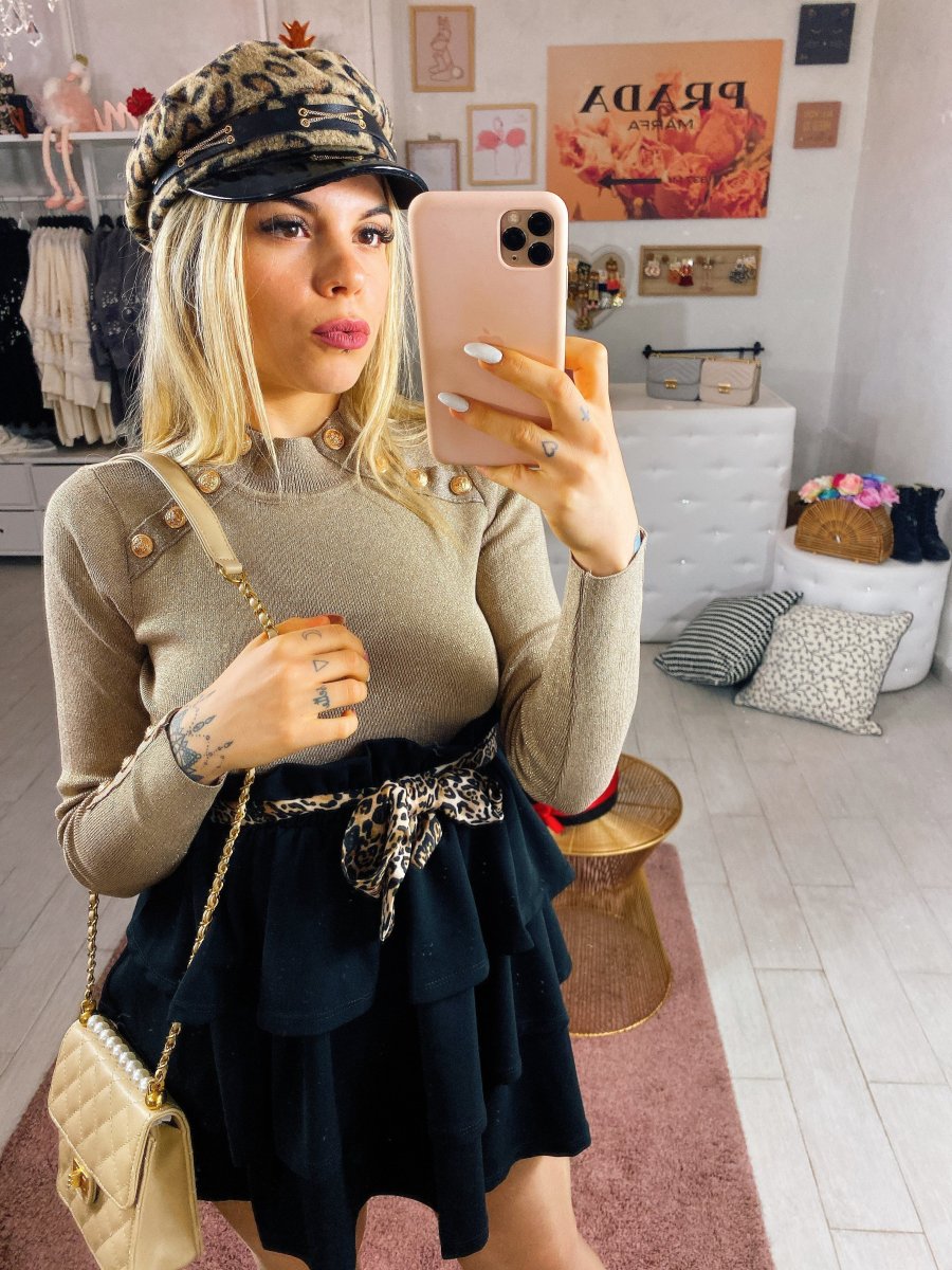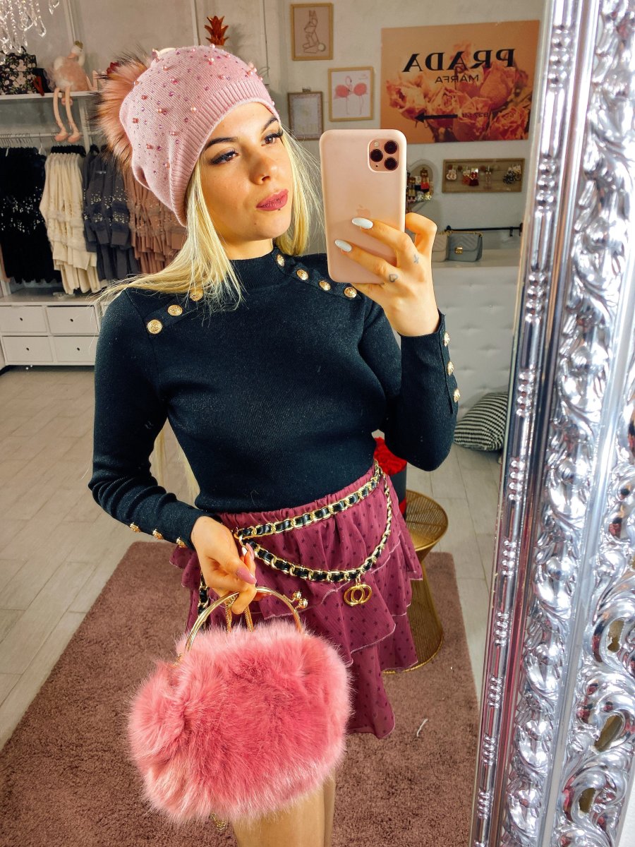 Maglioncino glitterato con deliziosi bottoni oro. Elegante e chic con qualsiasi tipo di abbinamento