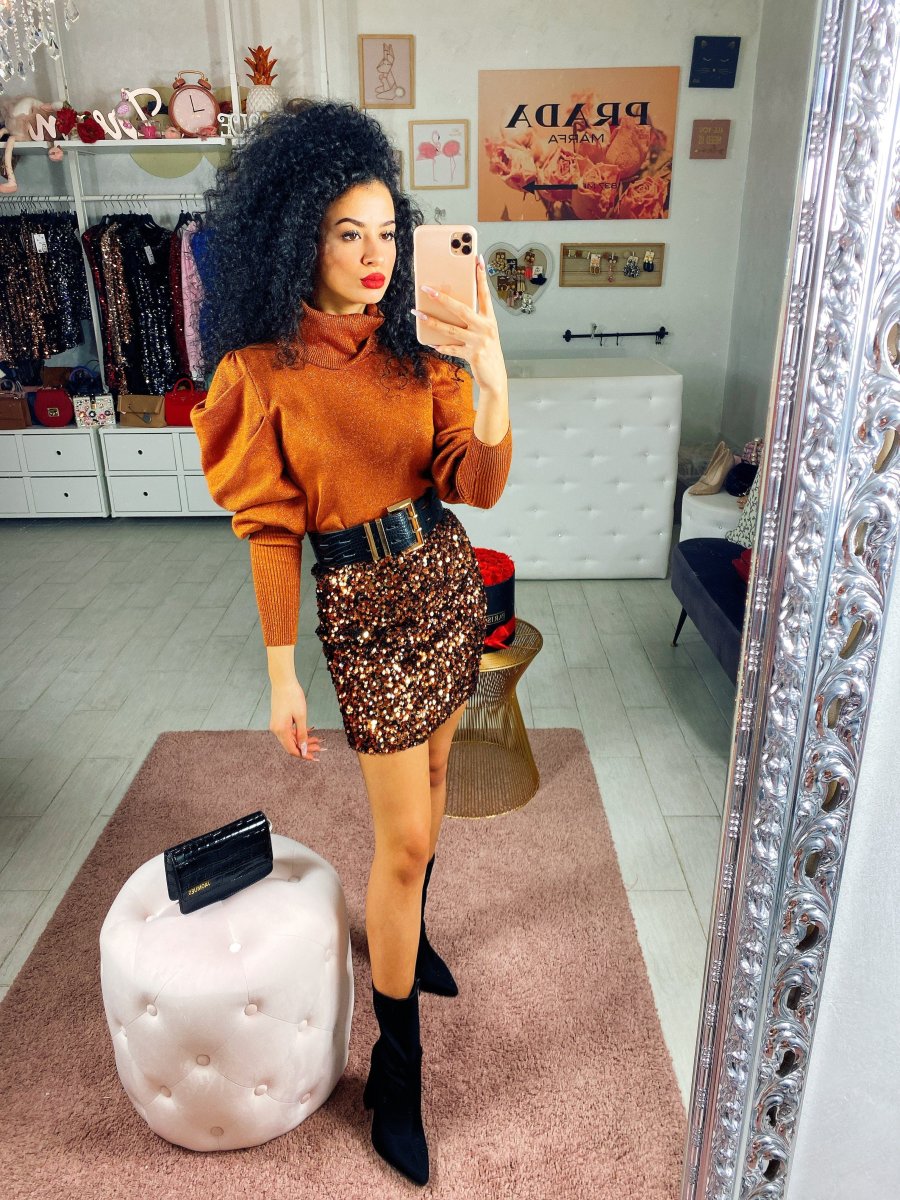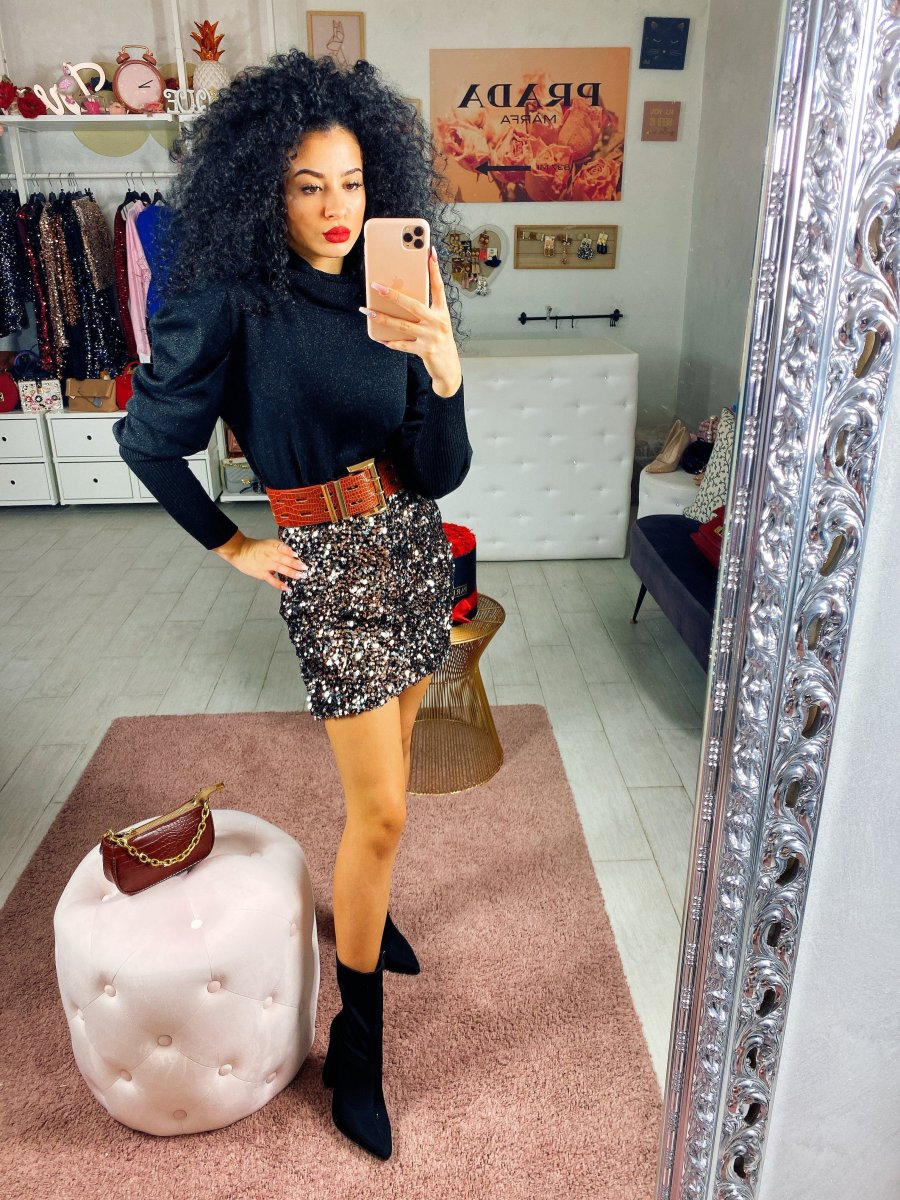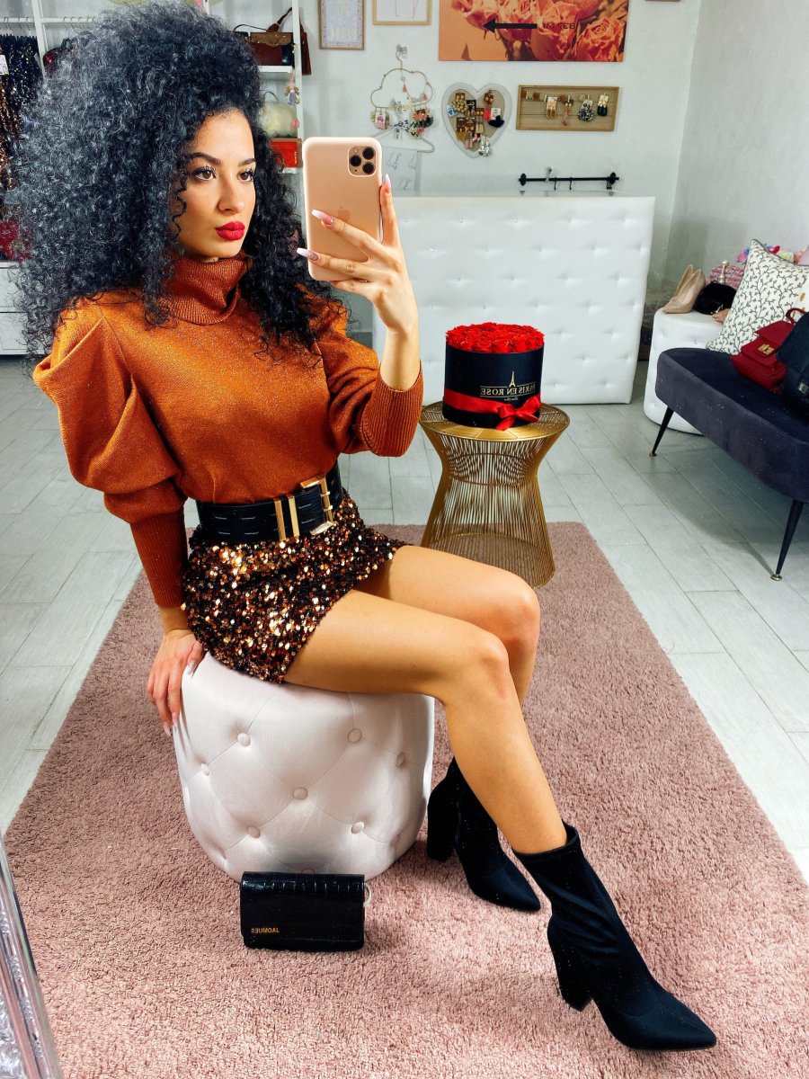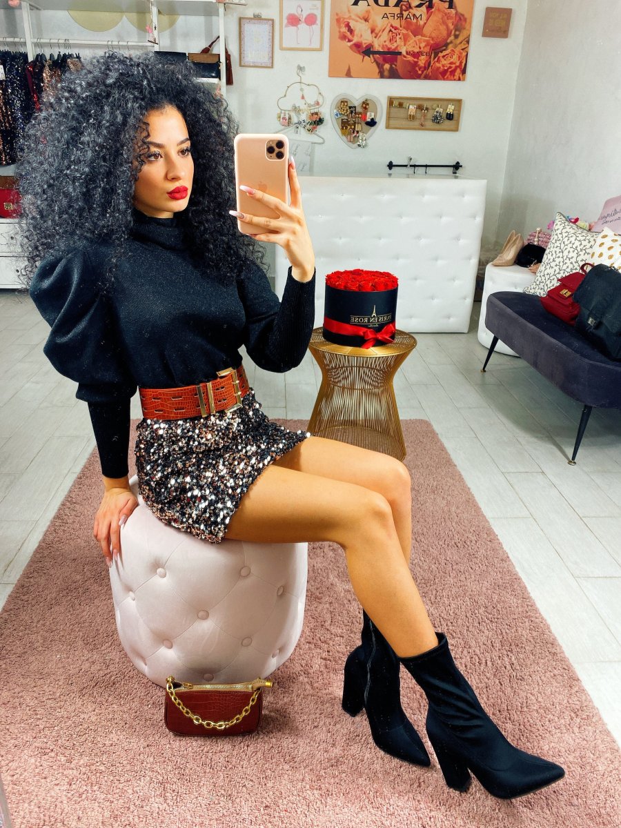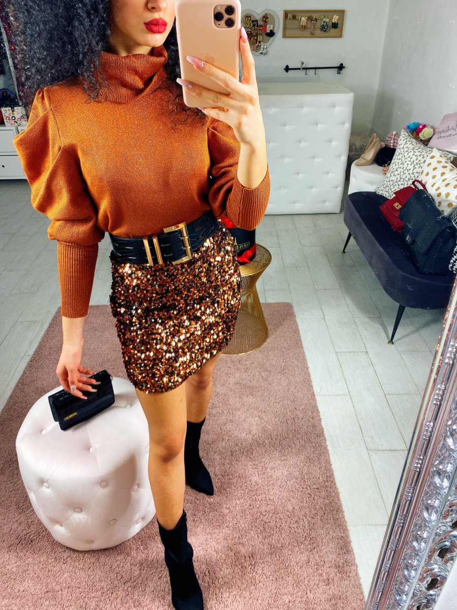 Maglioncino in tessuto con manica bombata e polsino sul polso. Tessuto comodo e elasticizzato