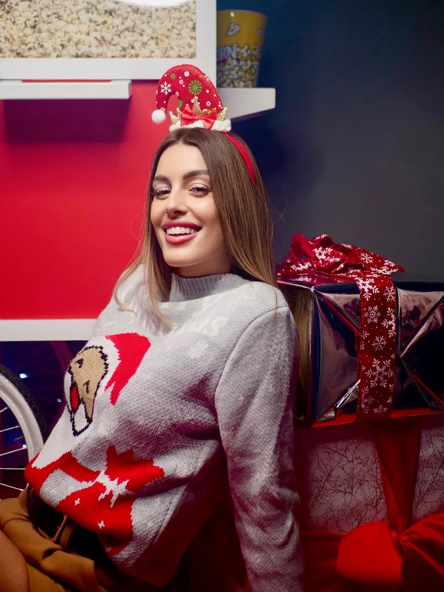 Maglioncino in filo rosso con disegno babbo natale indossalo come vuoi.