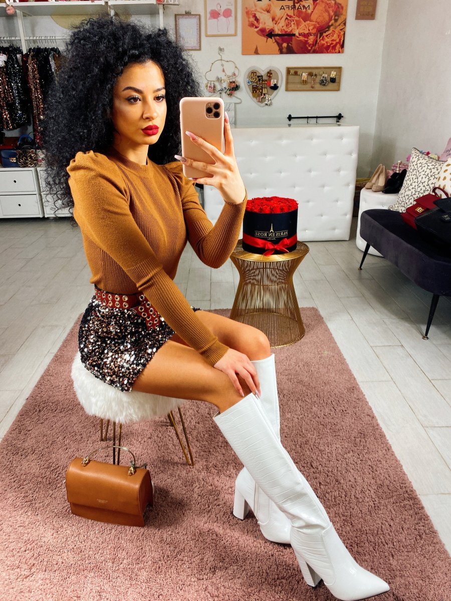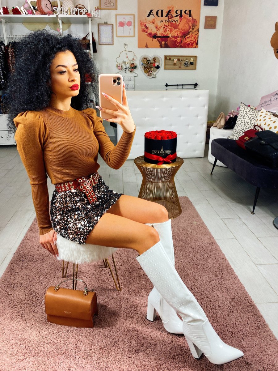 Maglioncino in morbidissima lana con manica bombata. Tessuto elasticizzato comodo