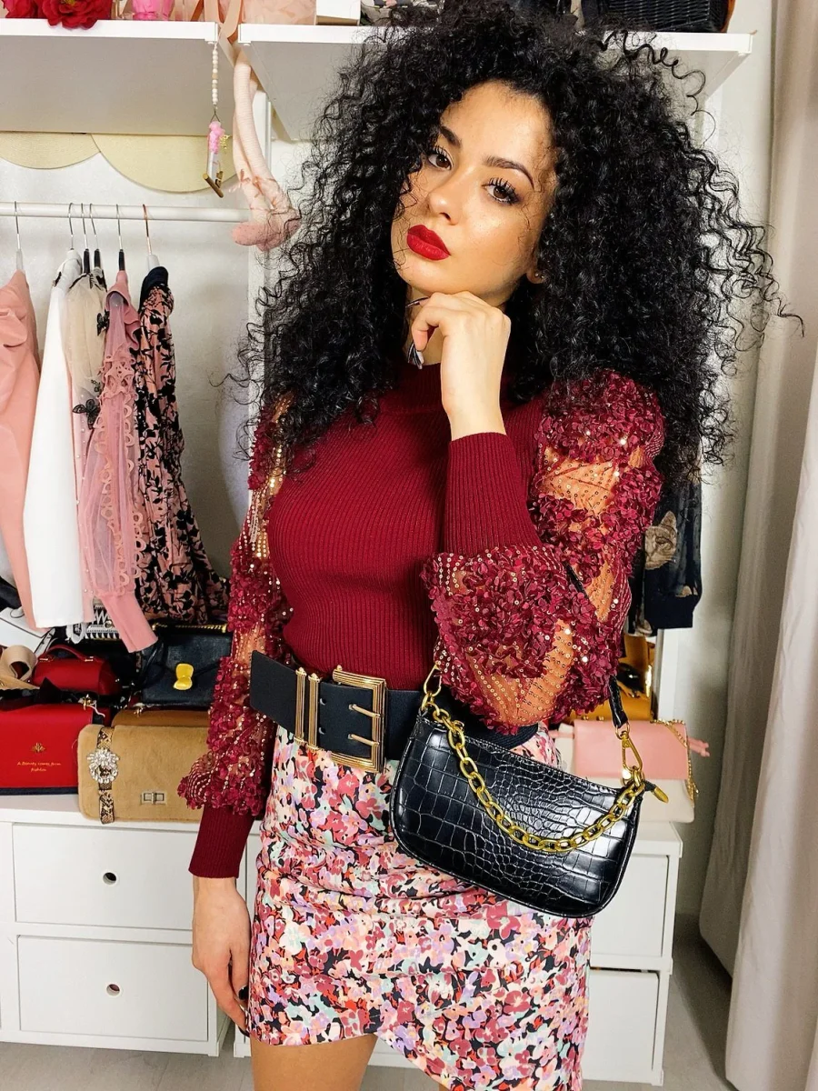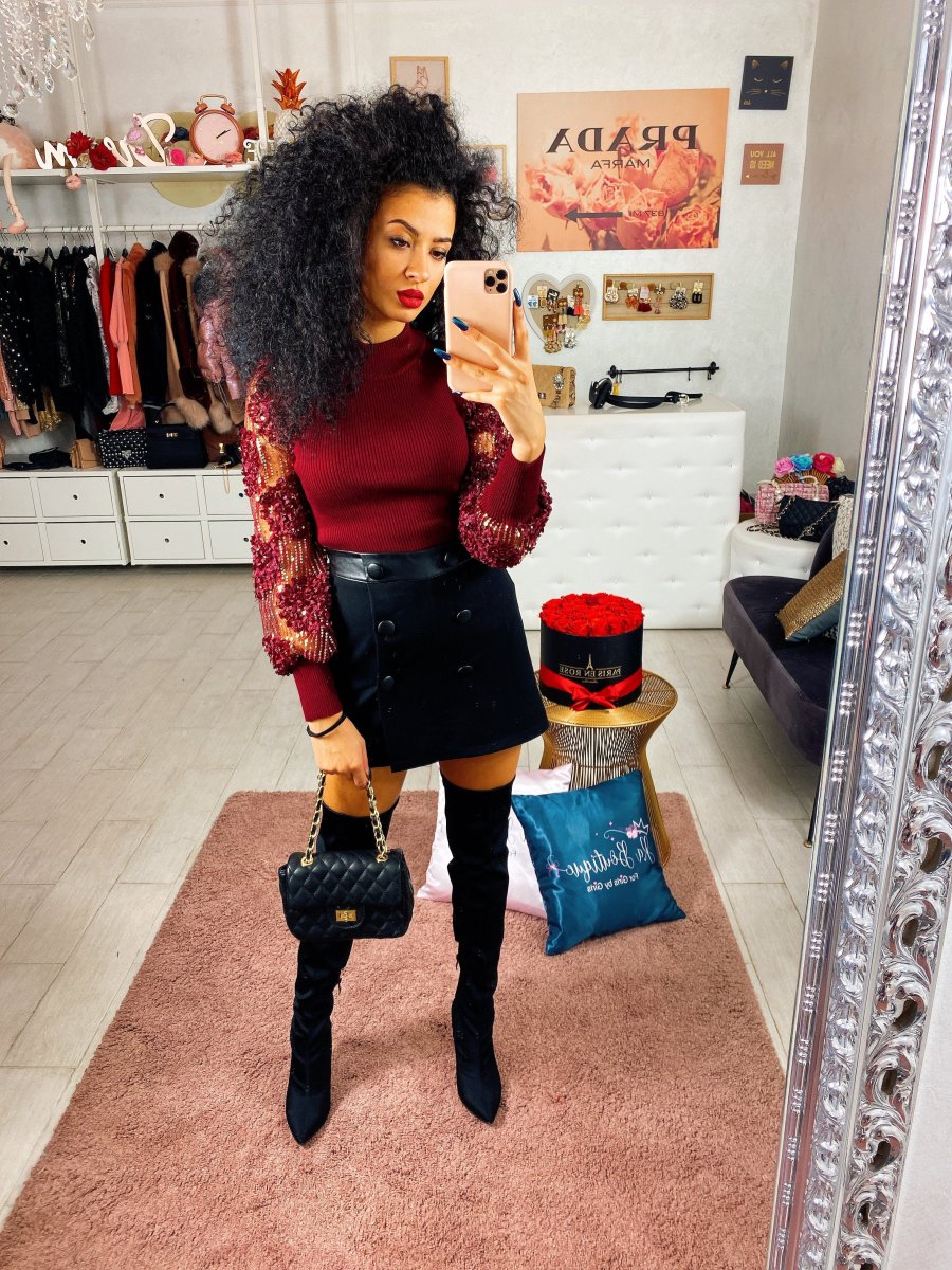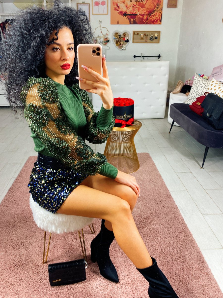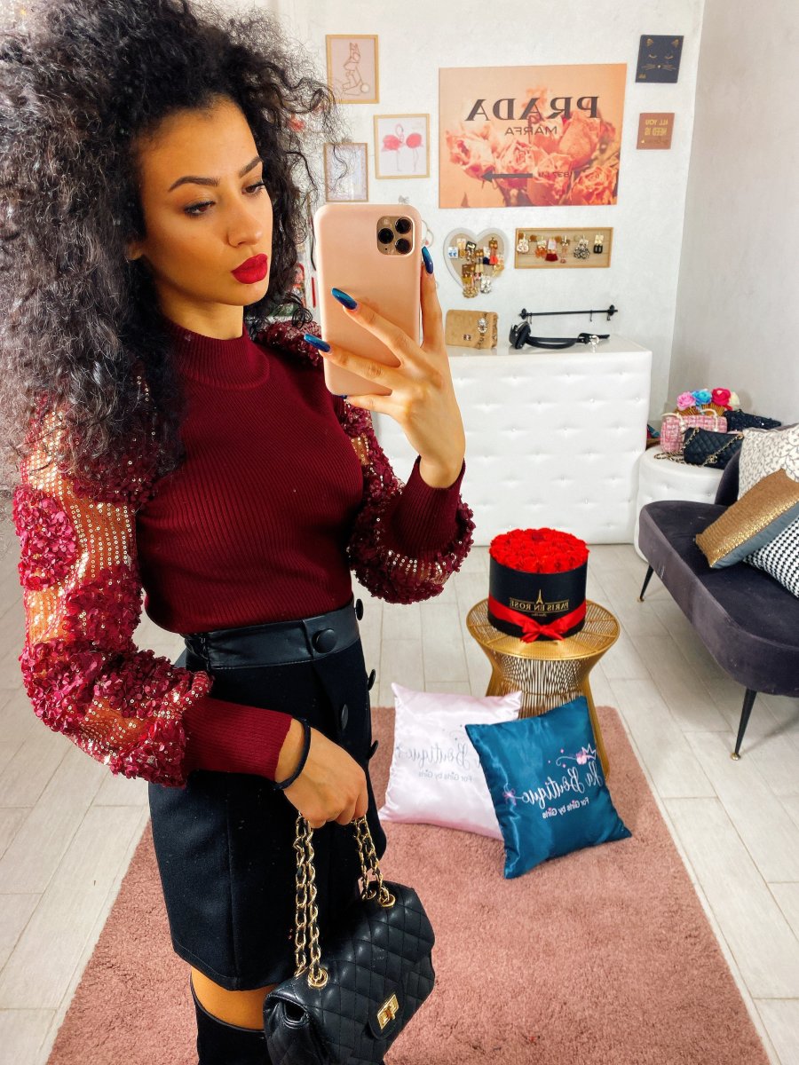 Morbidissimo maglione a costine con maniche velate ricamate. Tessuto molto morbido e elasticizzato