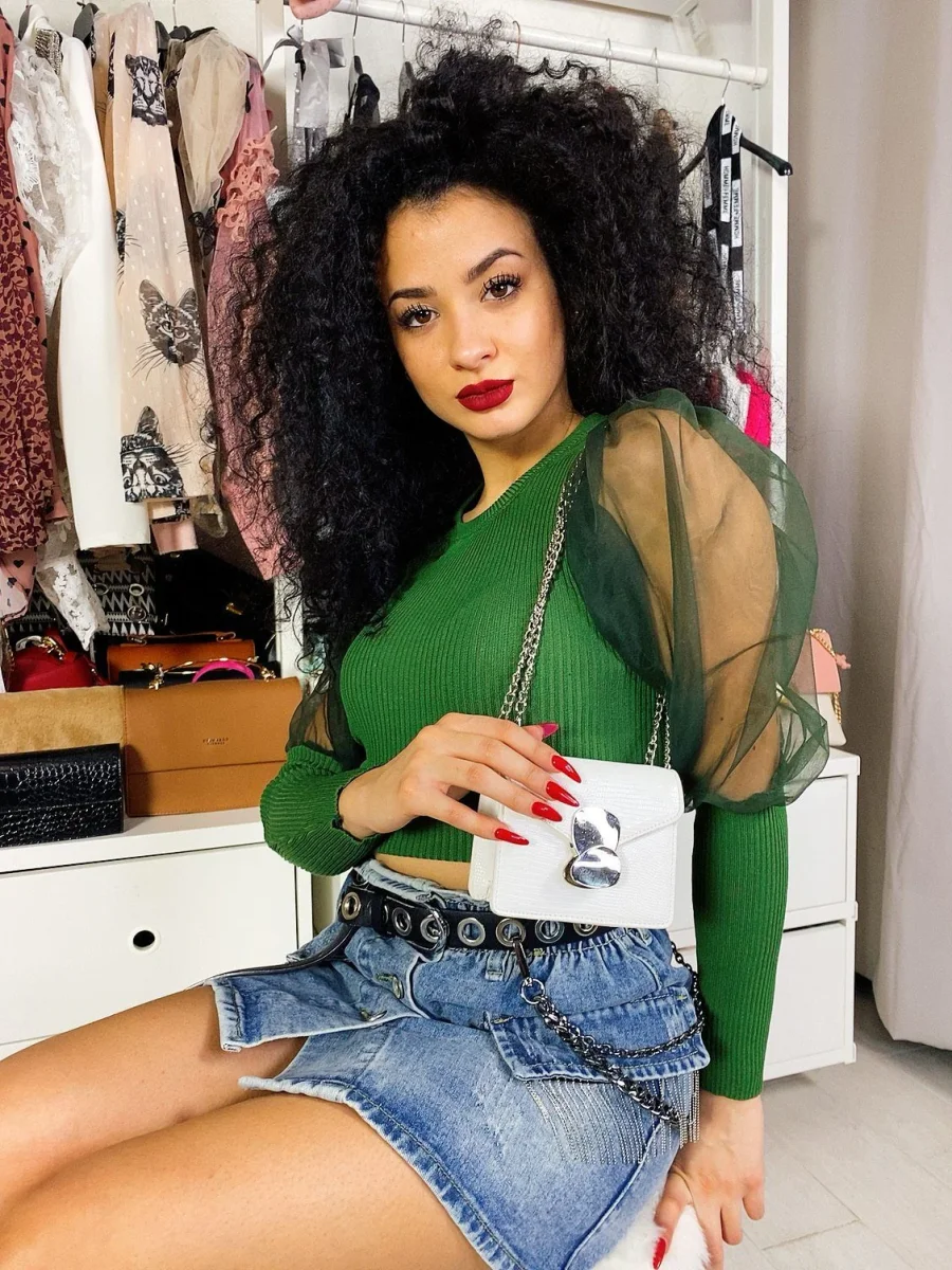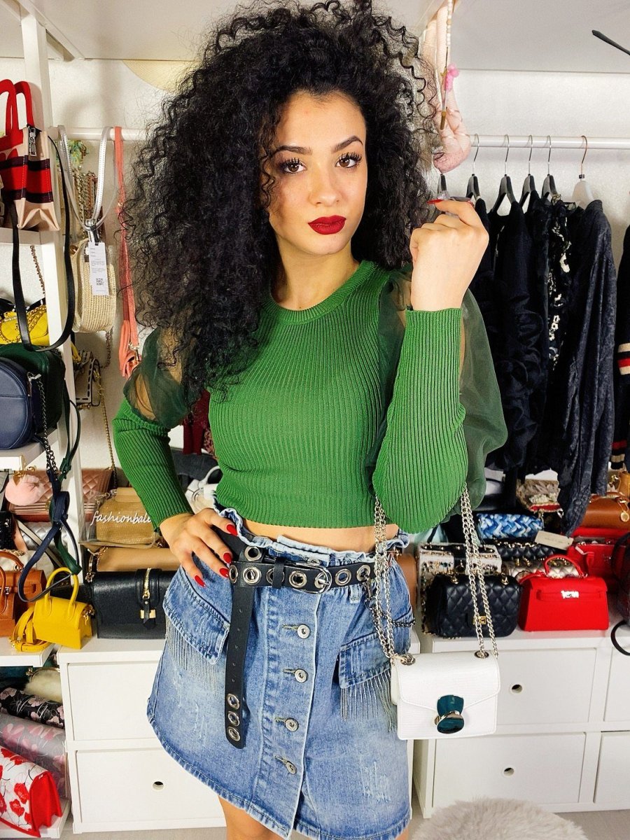Maglioncino in cotone pesante. Particolare nelle maniche velate e questo tessuto a costine