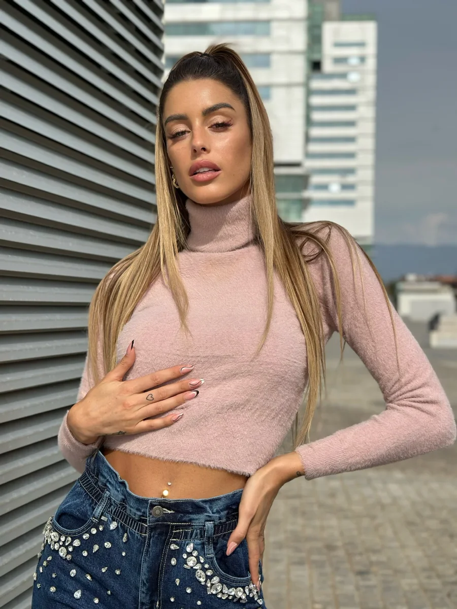 Maglioncino morbidissimo a collo alto, tessuto elasticizzato caldissimo.