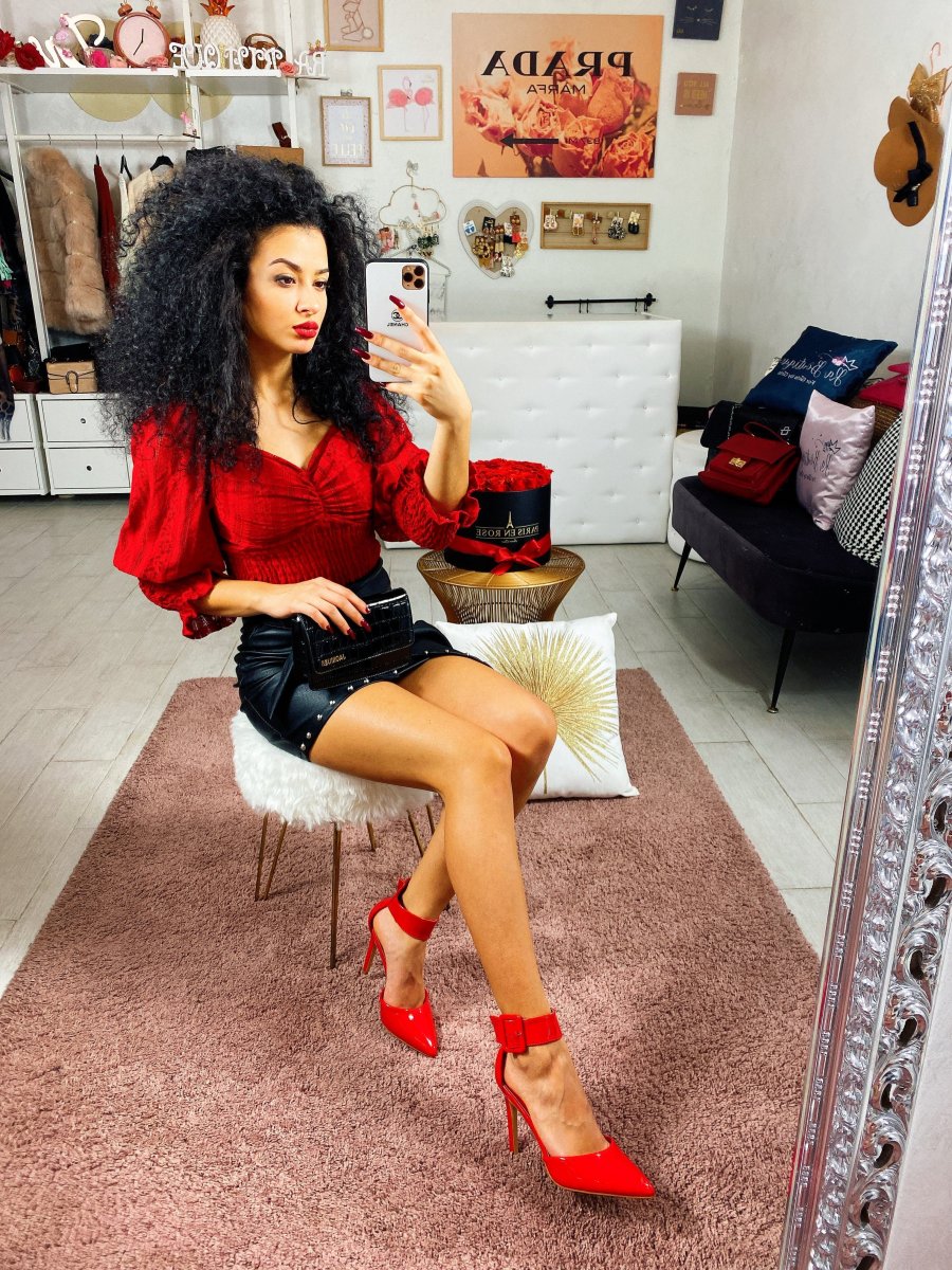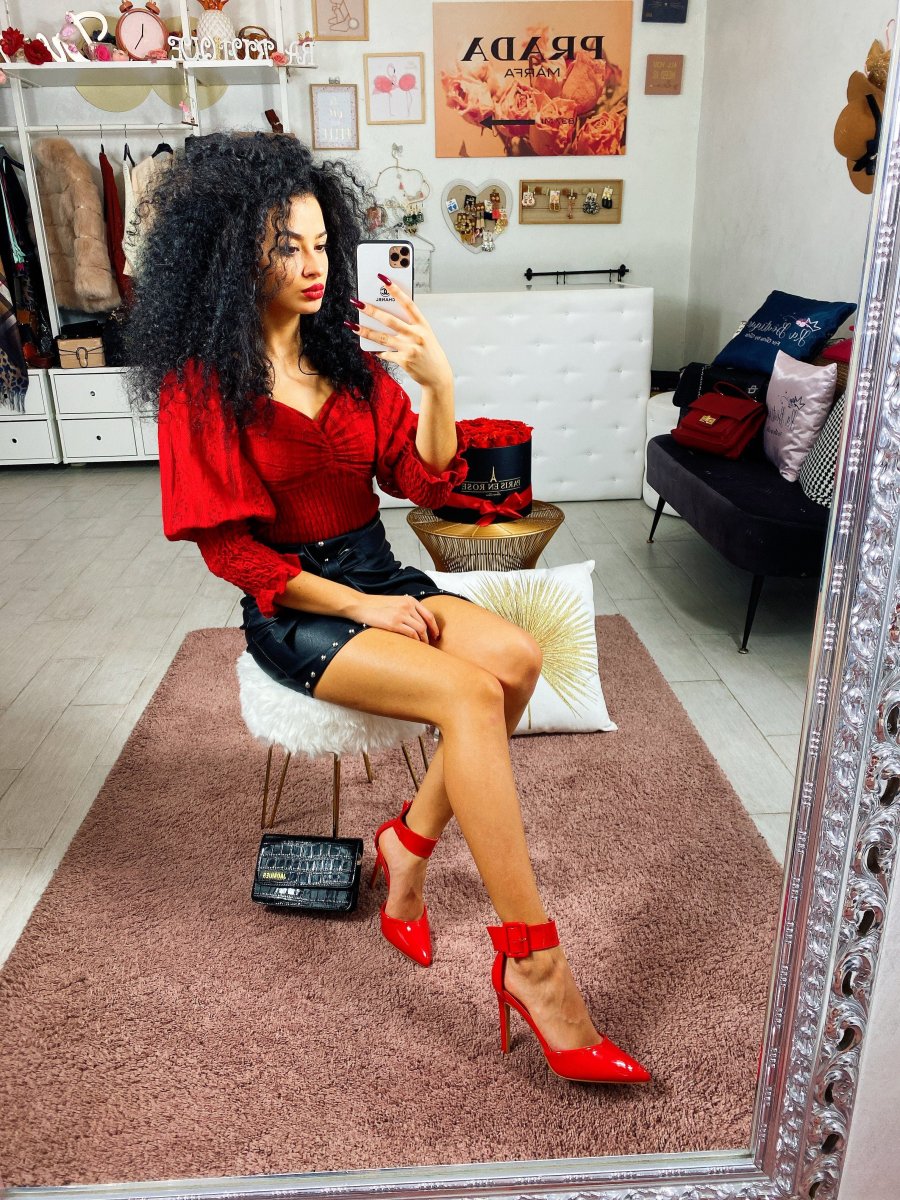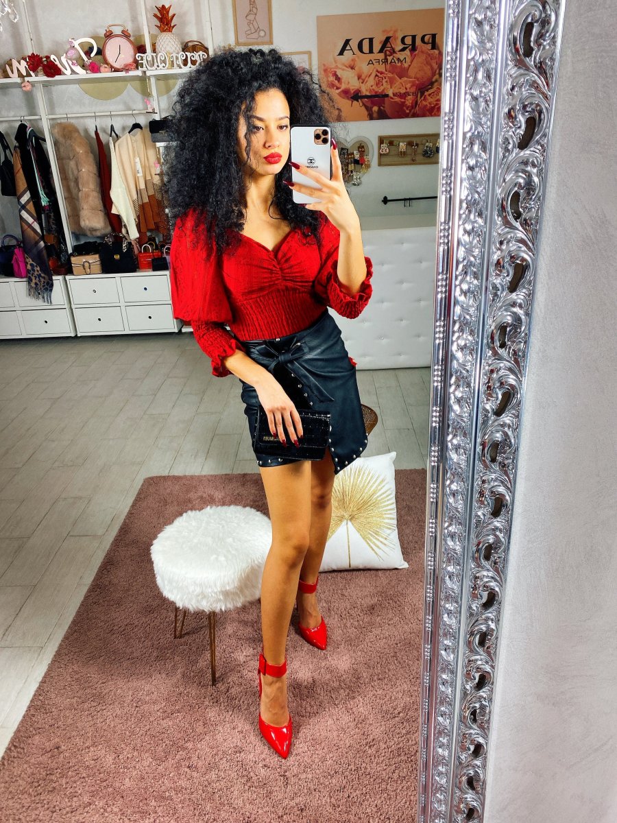 Maglioncino in cotone leggero con scollo a cuore e manica bombata. Taglia unica tessuto elasticizzato