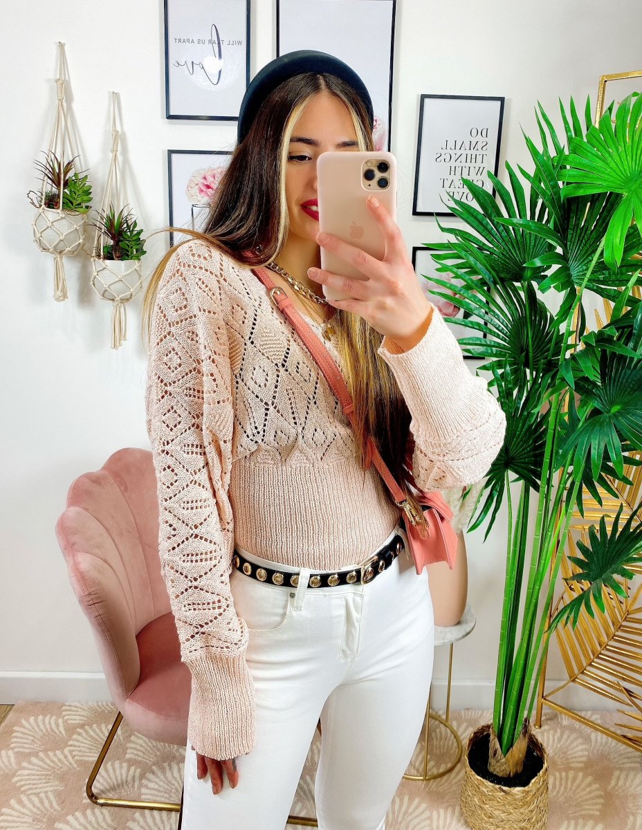 Maglioncino Scollo a V con ricami primaverile, il giusto compromesso per tutti i tuoi look.