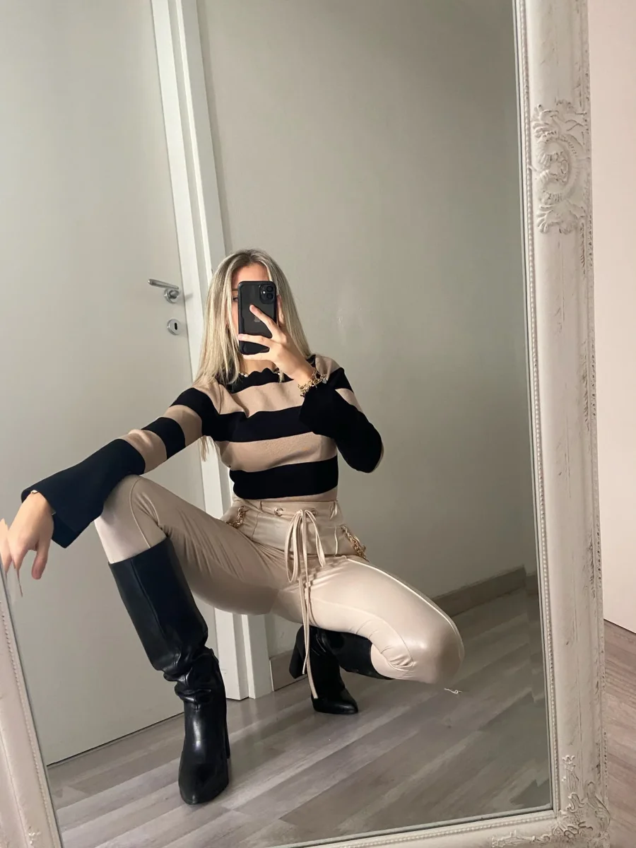 Recensisci per primo “Maglione a righe con spacco nude Nero”