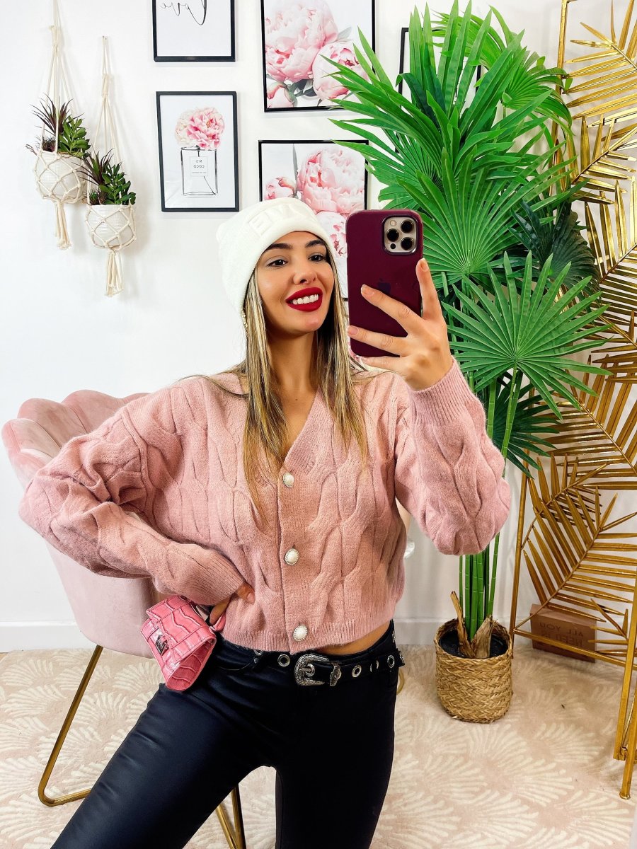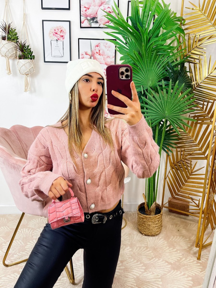 Recensisci per primo “Maglione a trecce rosa, bottoni gioiello”