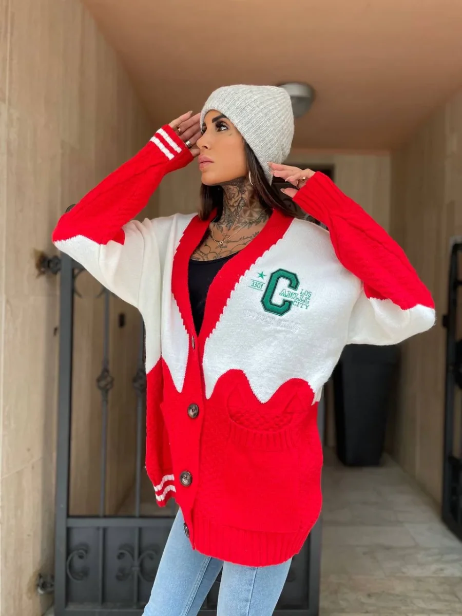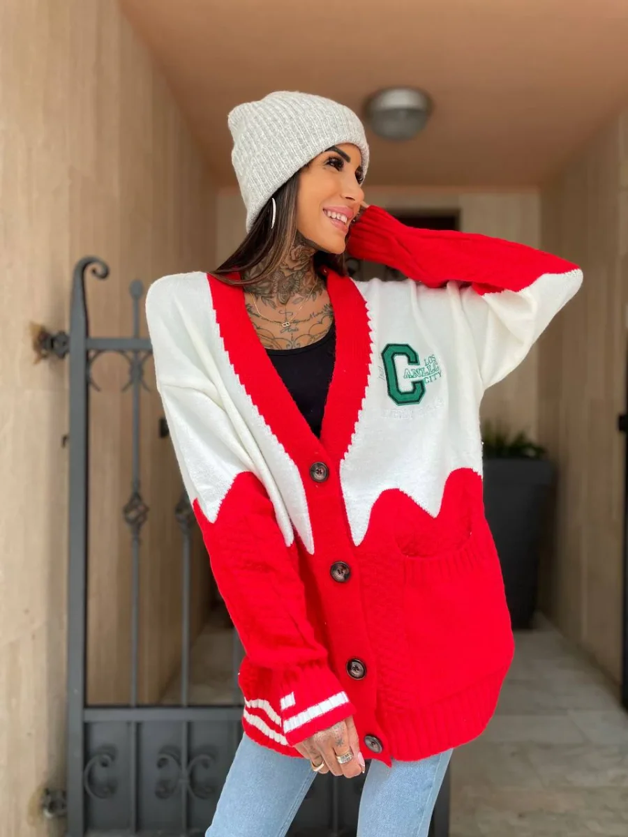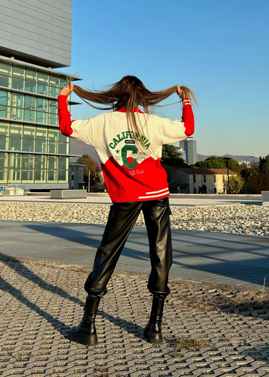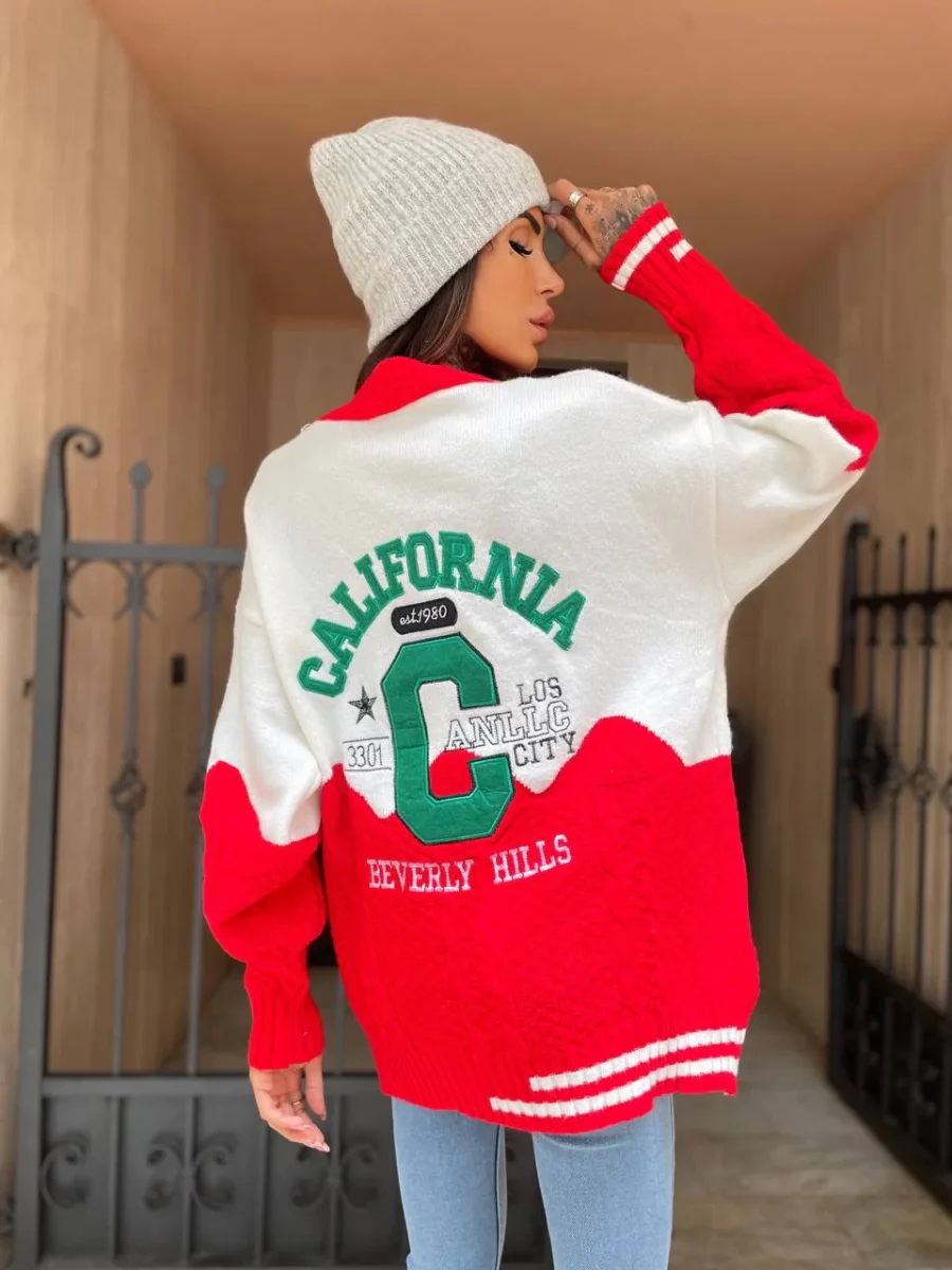 Maxi maglione in tessuto pesante e caldo con bottoncini. Stampa California
