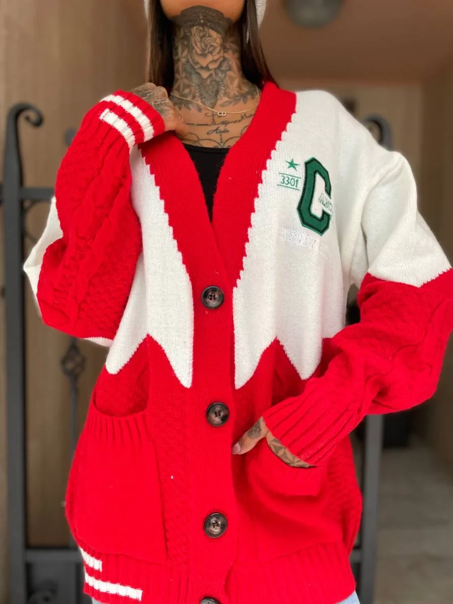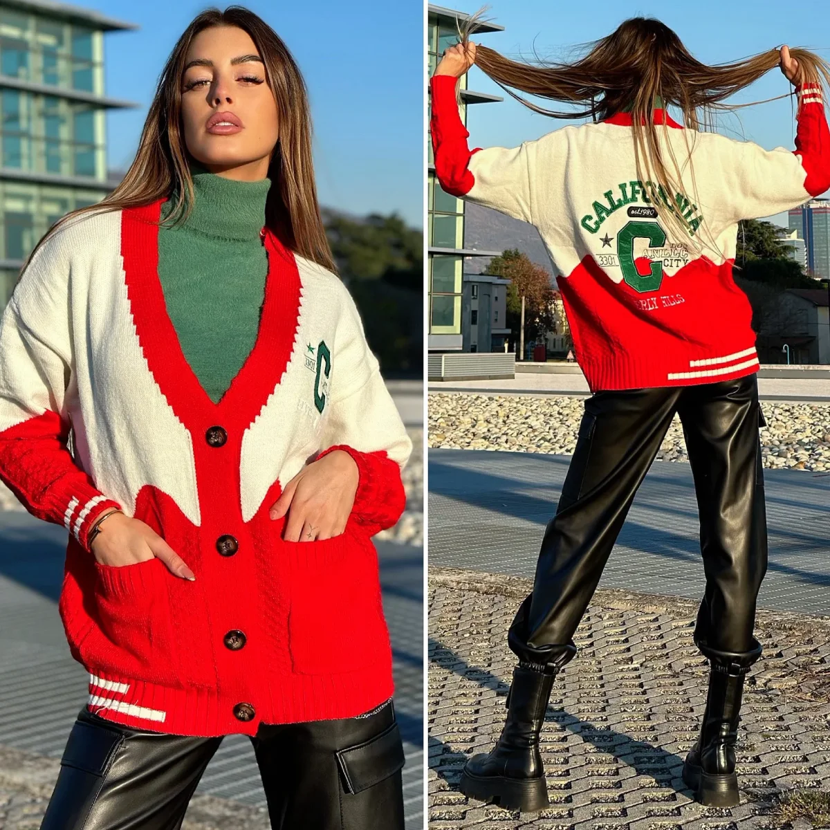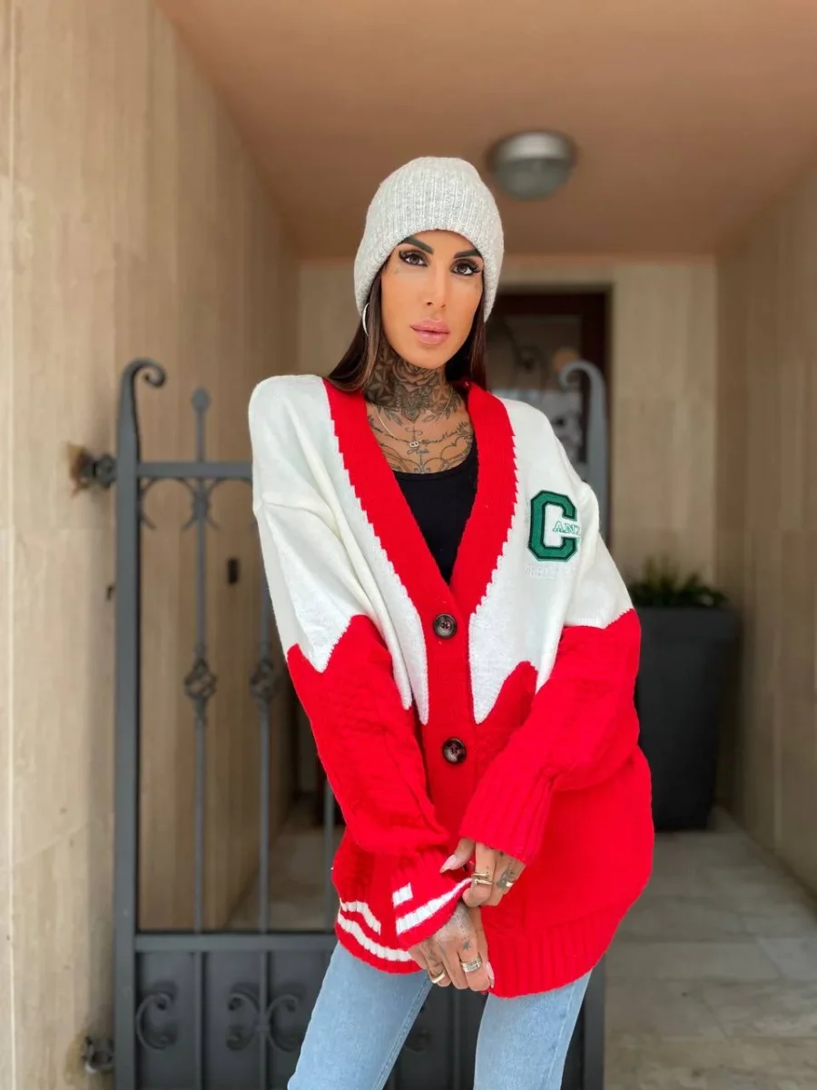Maxi maglione in tessuto pesante e caldo con bottoncini. Stampa California