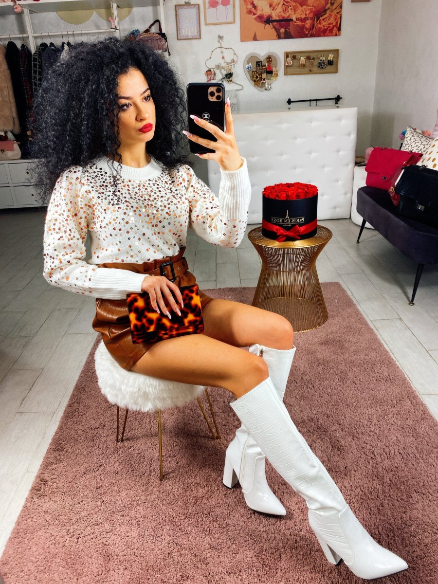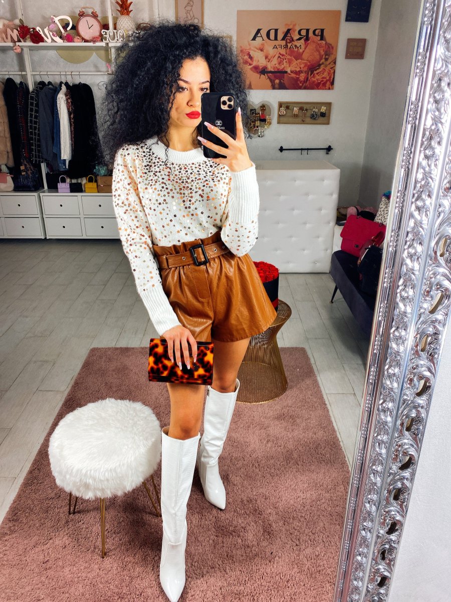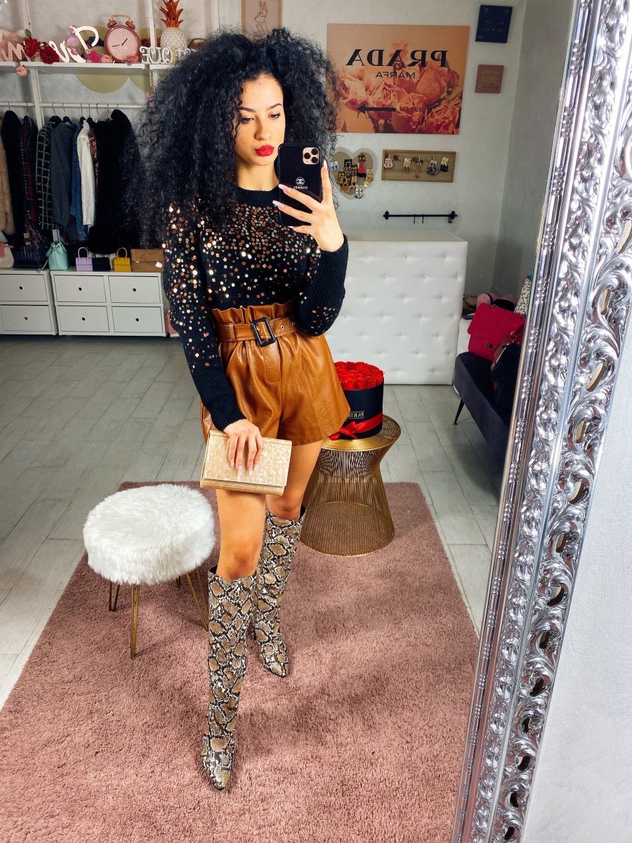 Morbido maglione qualità francese con paillettes bronzo su tutto il maglioncino