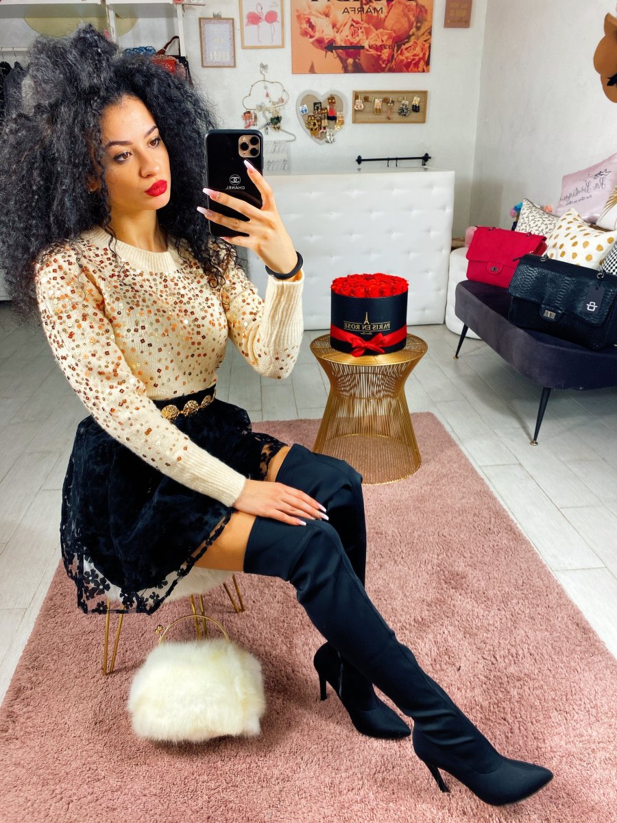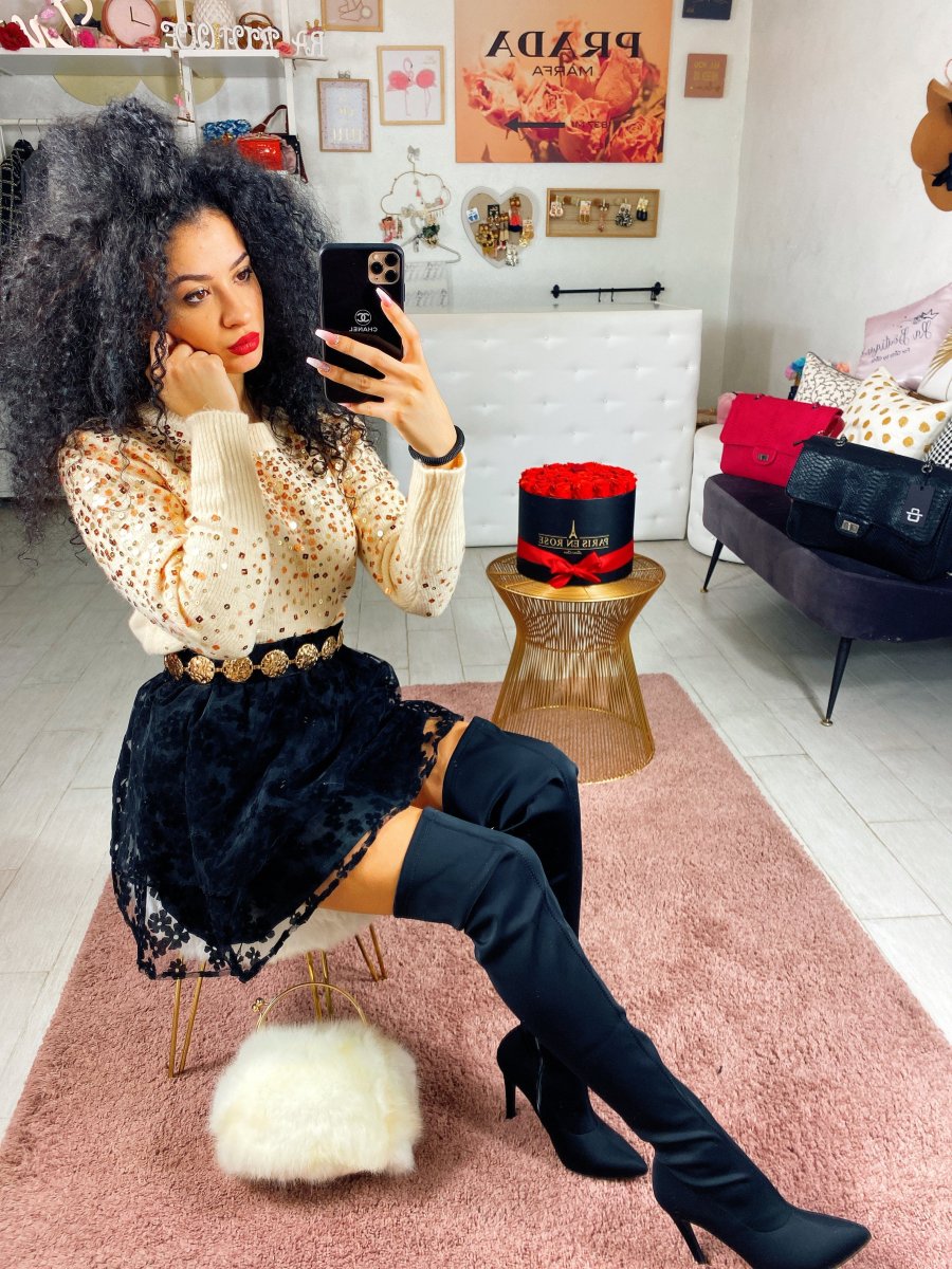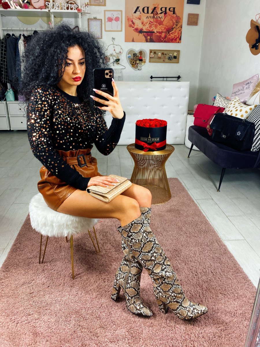 Morbido maglione qualità francese con paillettes bronzo su tutto il maglioncino