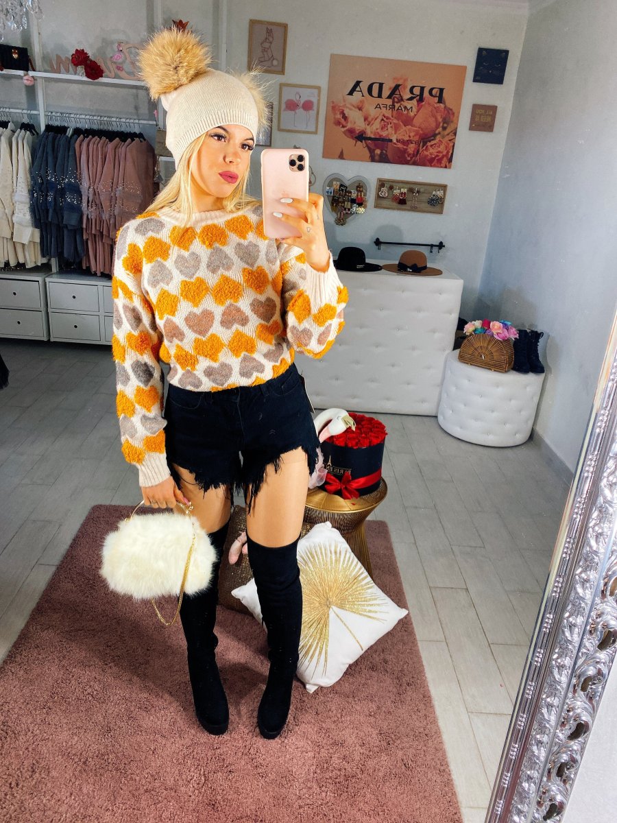 Maglione in lana elasticizzata con deliziosi cuori. Taglia unica elasticizzato