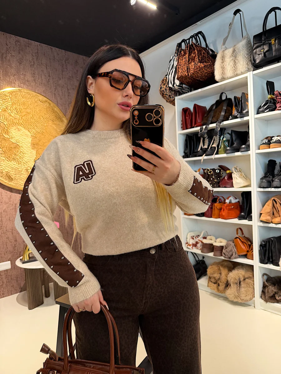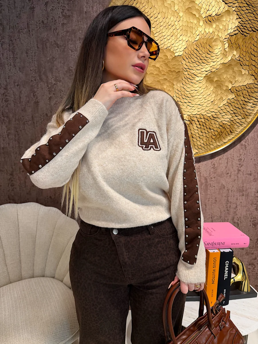 Maglione color panna con dettaglio ricamato “L.A.” sul petto, ispirato allo stile casual-chic californiano. Morbidissimo, caldo e dal taglio leggermente oversize, è perfetto per look rilassati ma curati. Da abbinare a jeans o leggings per un outfit comfy firmato RA Boutique