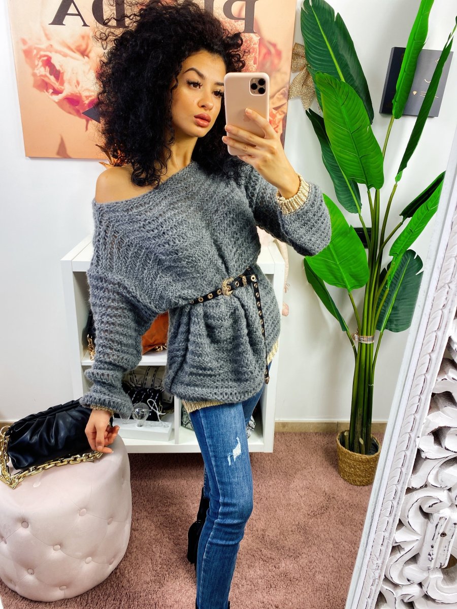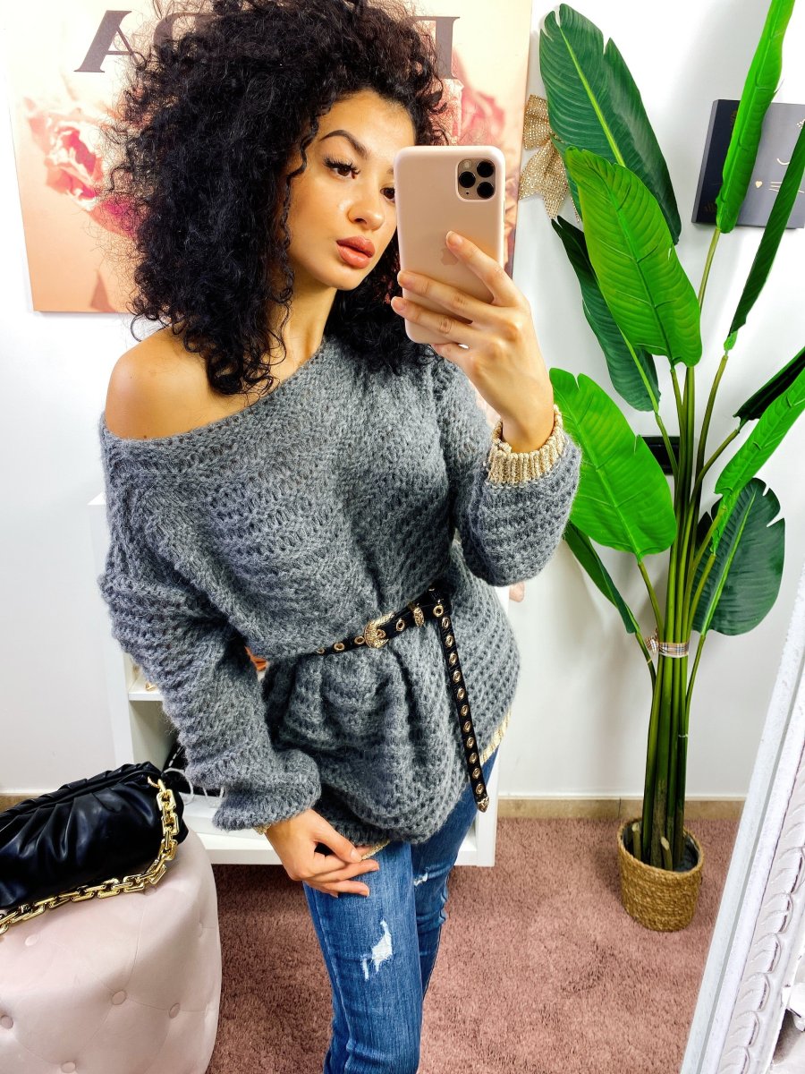 Morbidissimo maglione monocolore con particolare gold sulle maniche